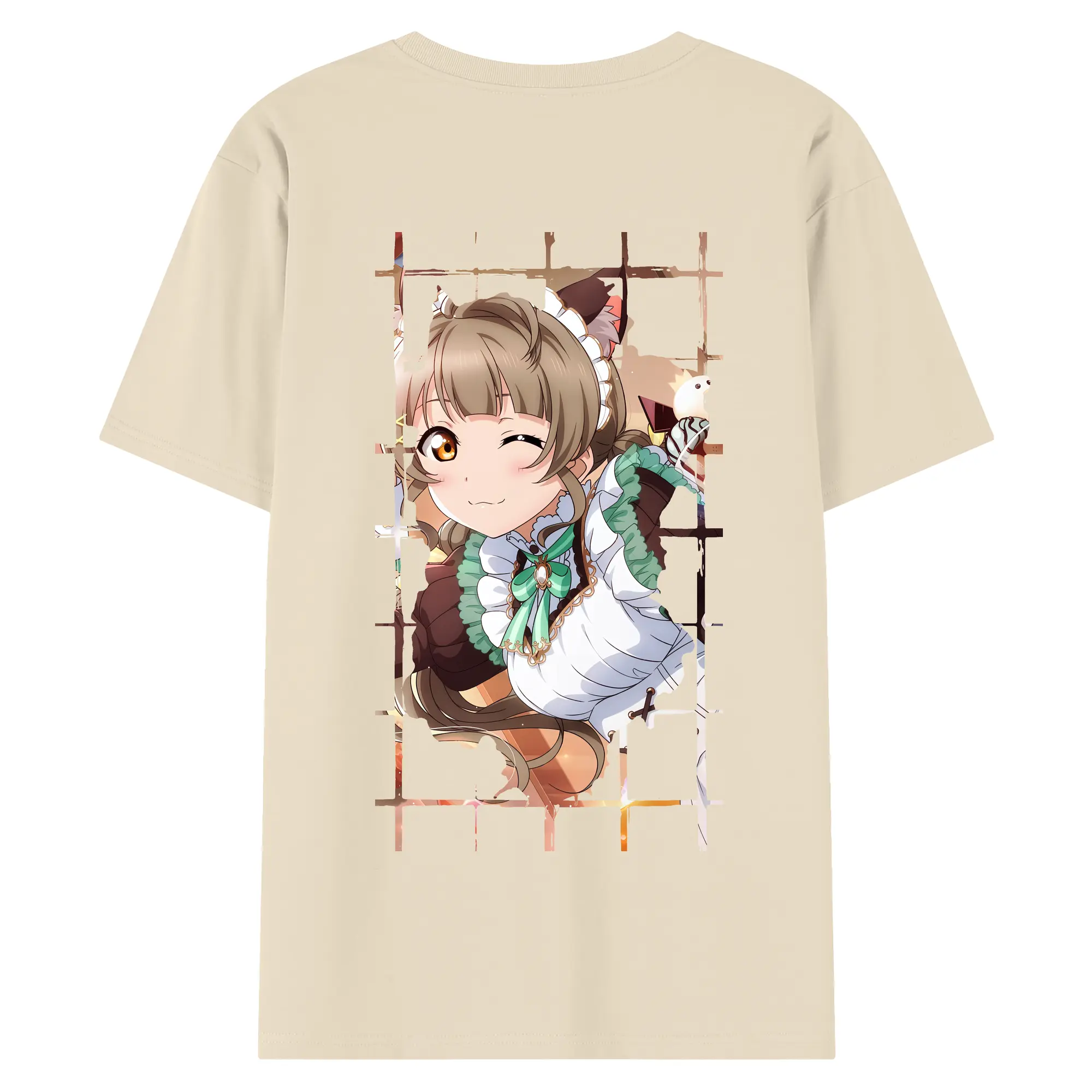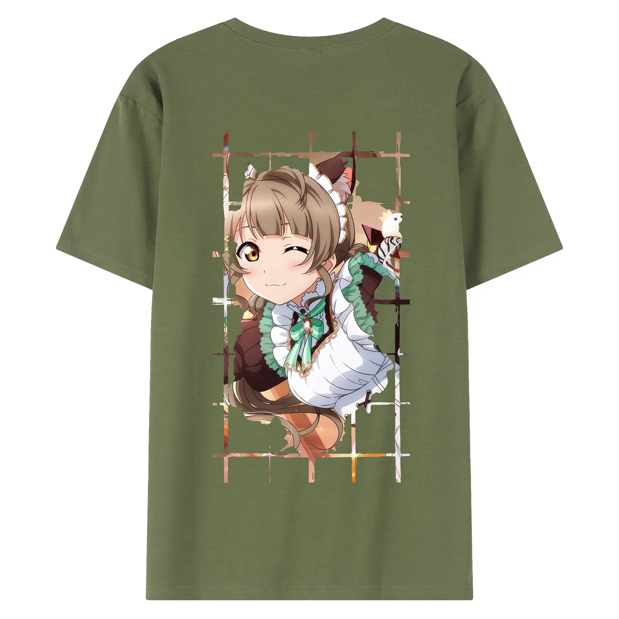 Love Live! グッズ,南ことり - 綿100% ヴィンテージ風 半袖Tシャツ ・ 背面プリント ・ 柔らか肌触り ・ 通気性 快適 ・ スポーツ カジュアル 外出用