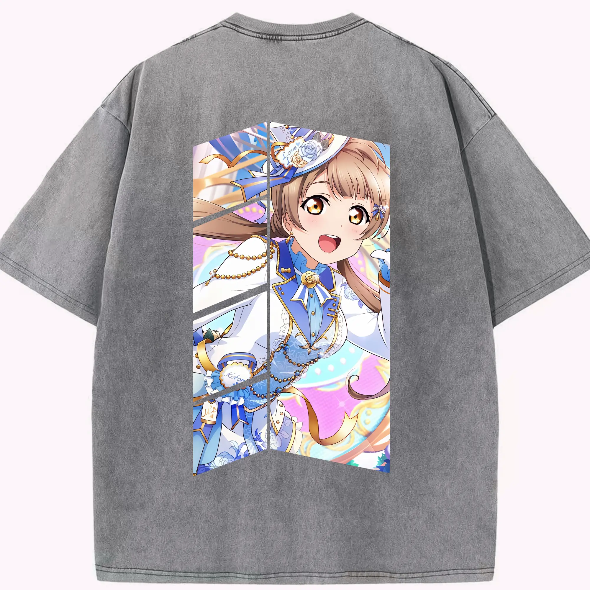 Love Live! グッズ,南ことり - 綿100% ヴィンテージ風 半袖Tシャツ ・ フロントプリント ・ 柔らか肌触り ・ 通気性 快適 ・ スポーツ カジュアル 外出用
