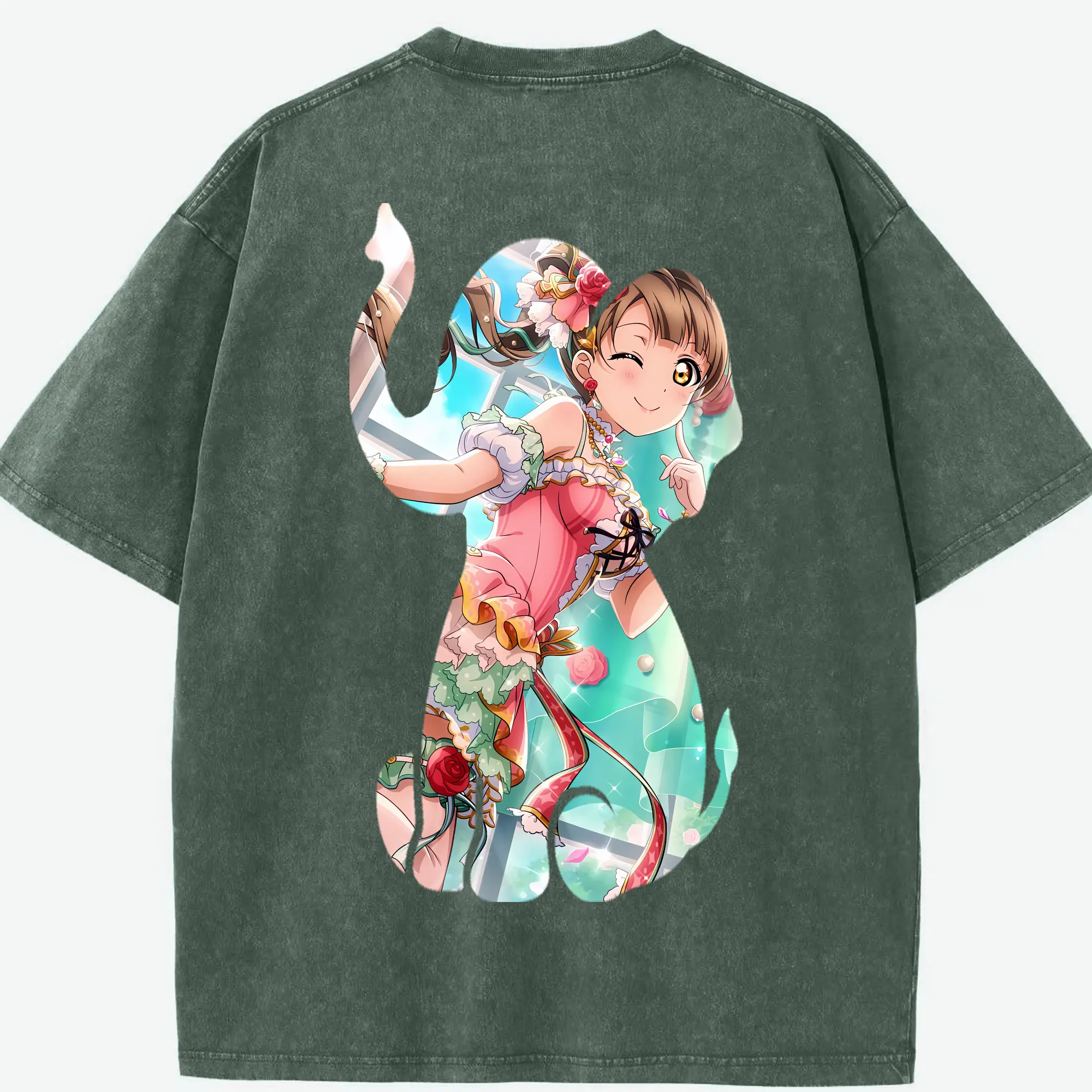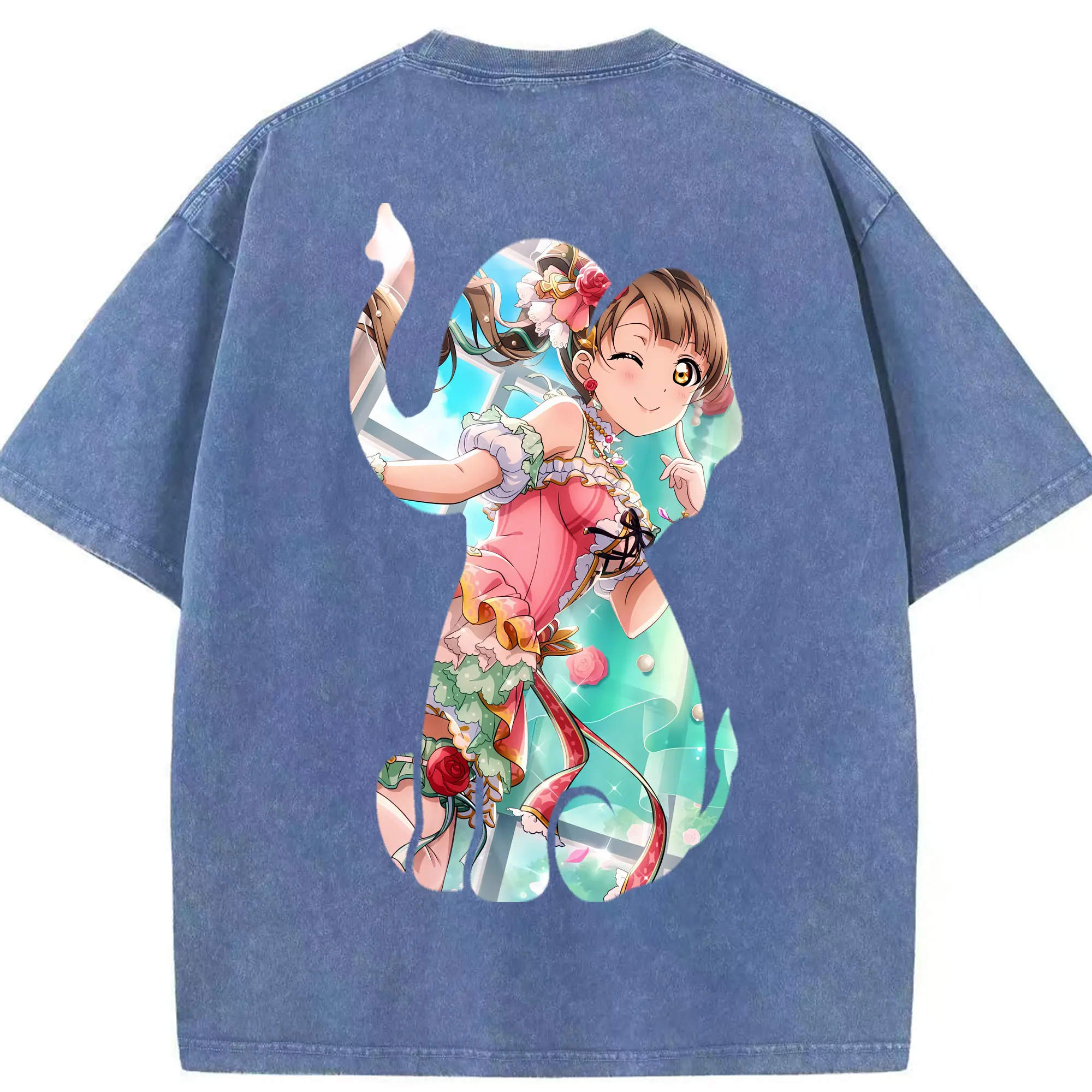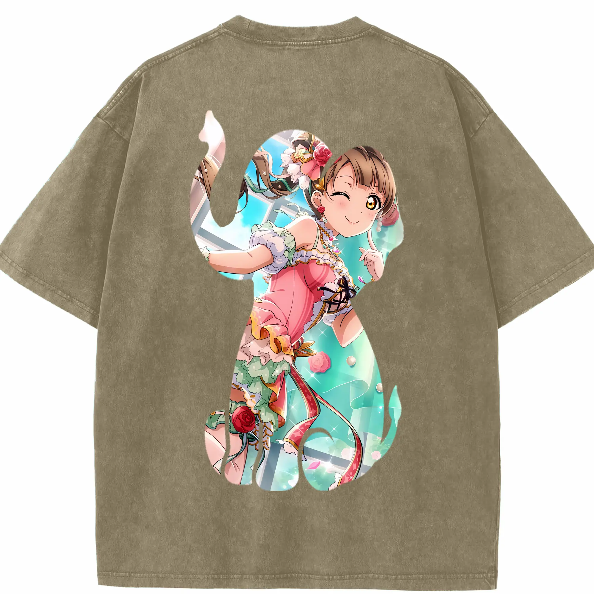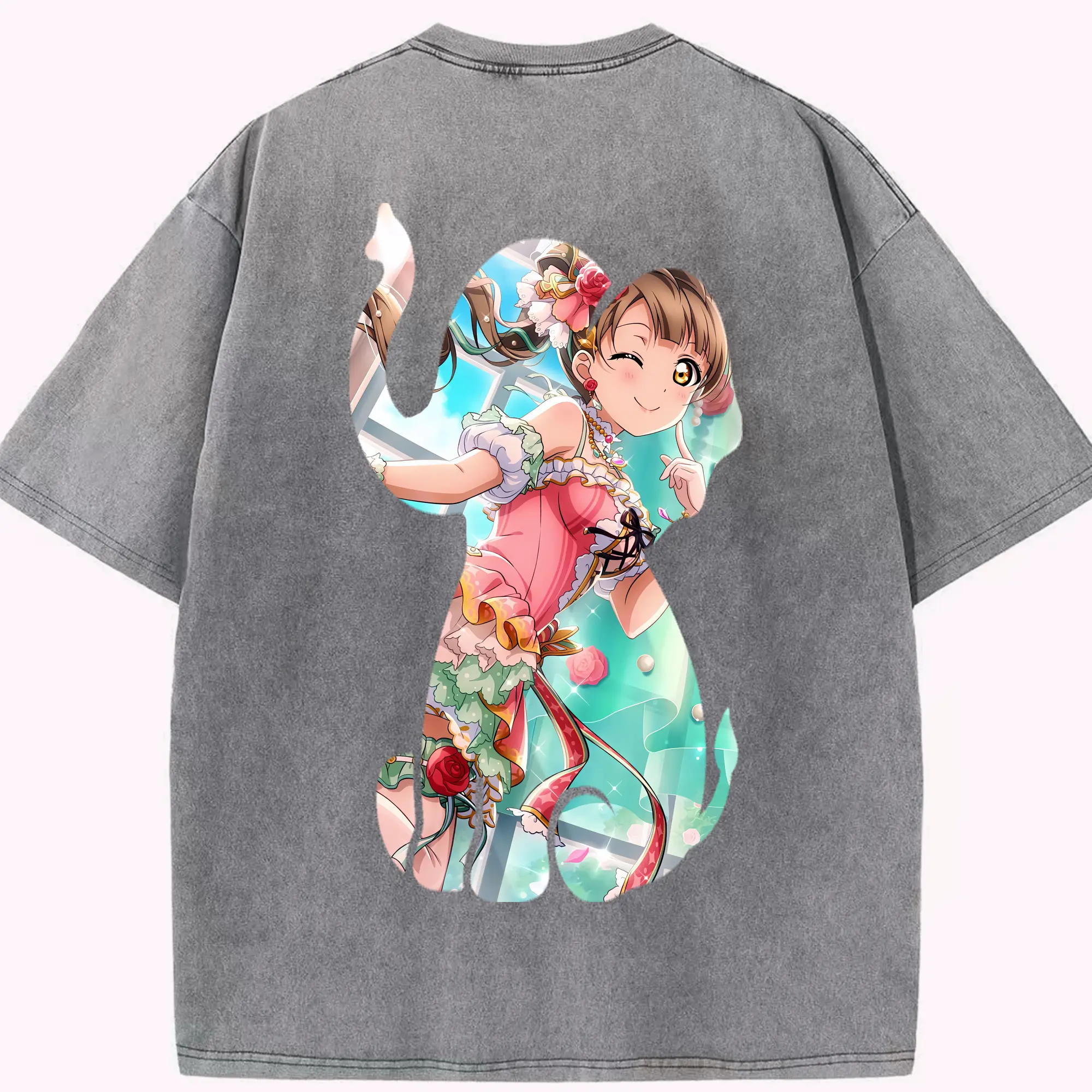 Love Live! グッズ,南ことり - 綿100% ヴィンテージ風 半袖Tシャツ ・ フロントプリント ・ 柔らか肌触り ・ 通気性 快適 ・ スポーツ カジュアル 外出用