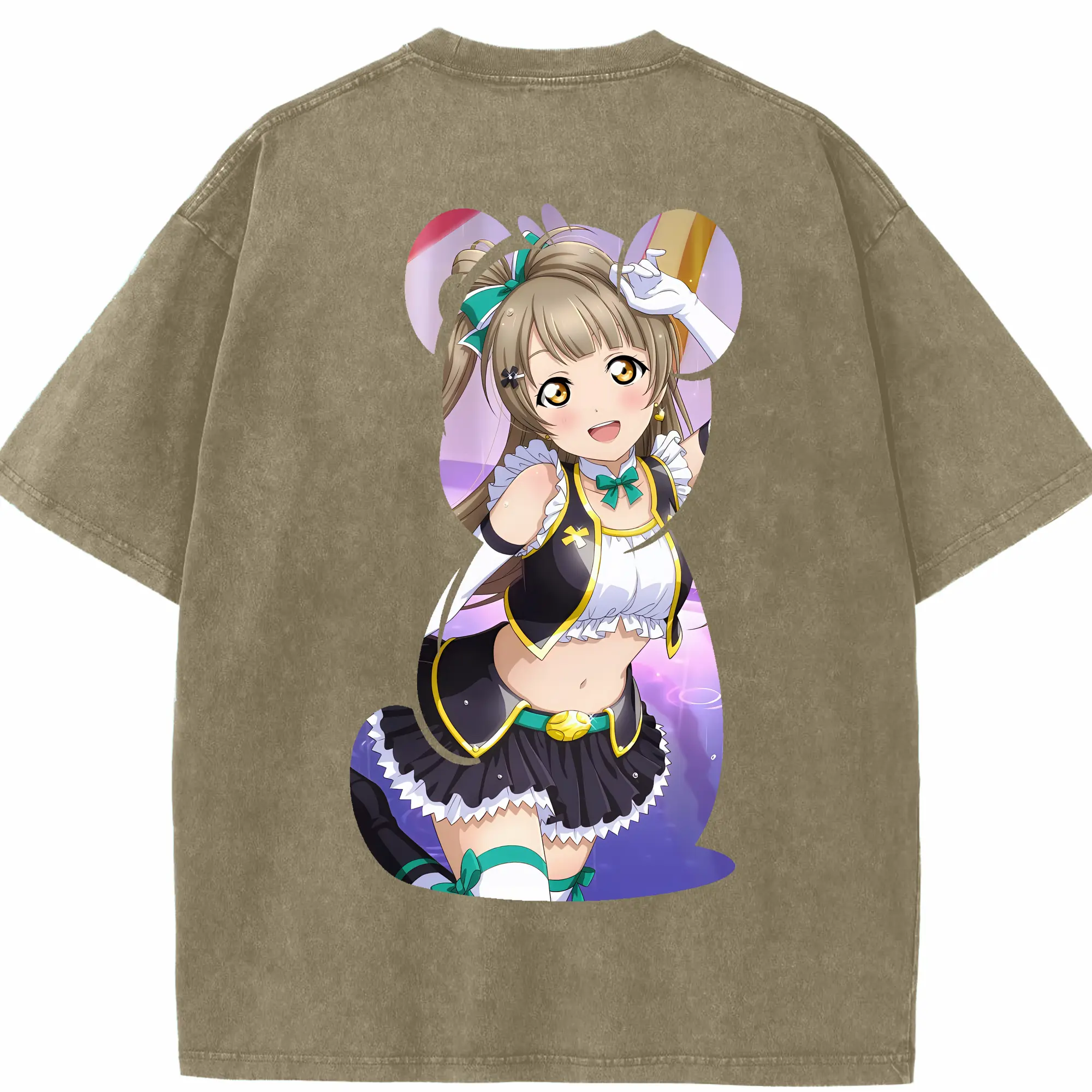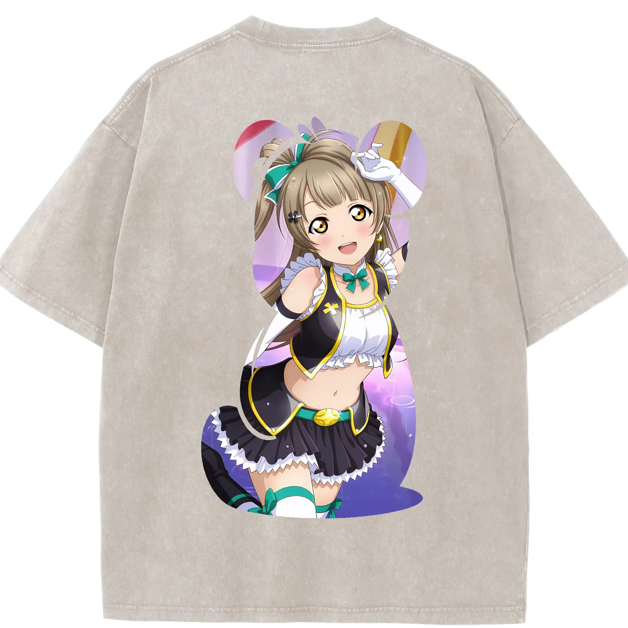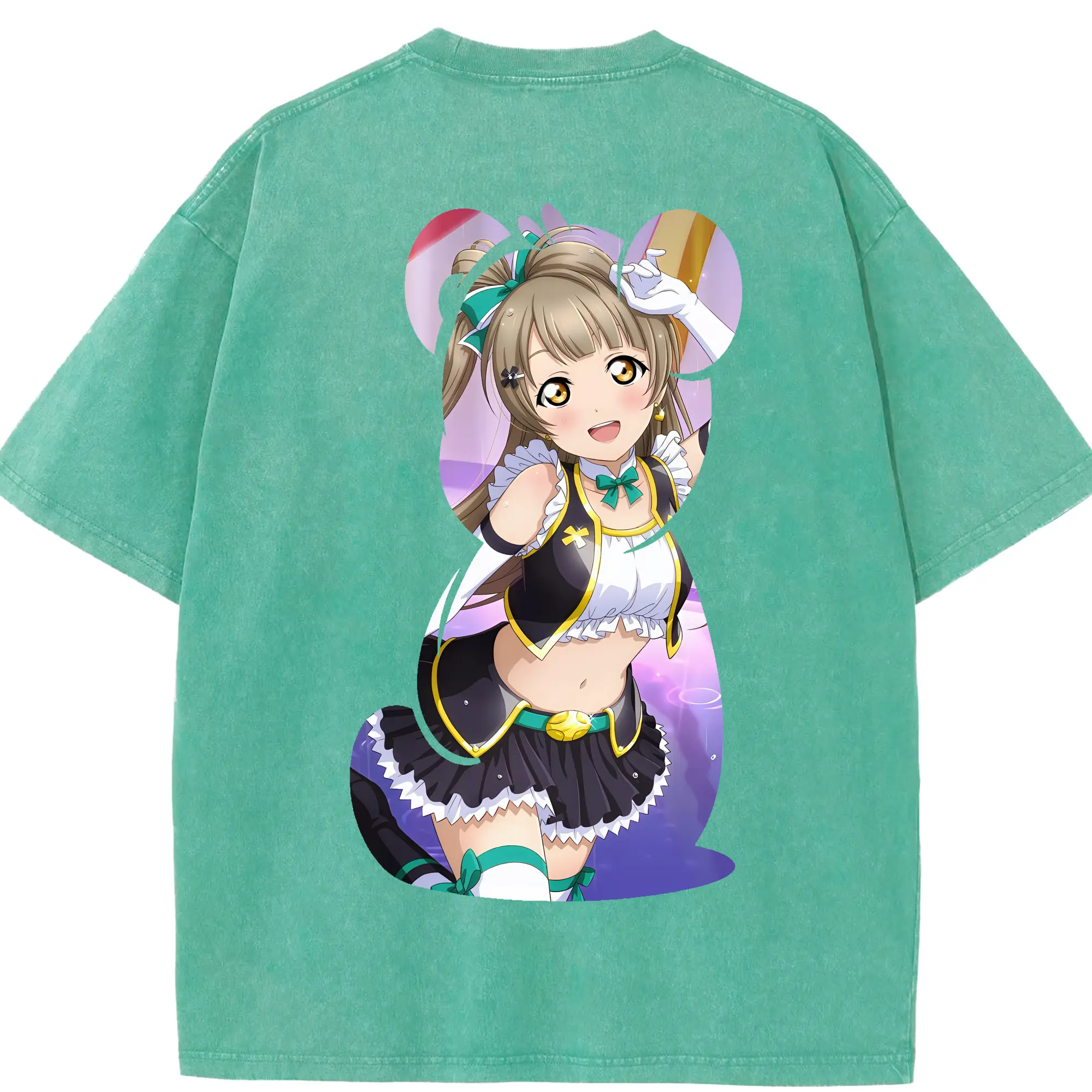 Love Live! グッズ,南ことり - 綿100% ヴィンテージ風 半袖Tシャツ ・ フロントプリント ・ 柔らか肌触り ・ 通気性 快適 ・ スポーツ カジュアル 外出用