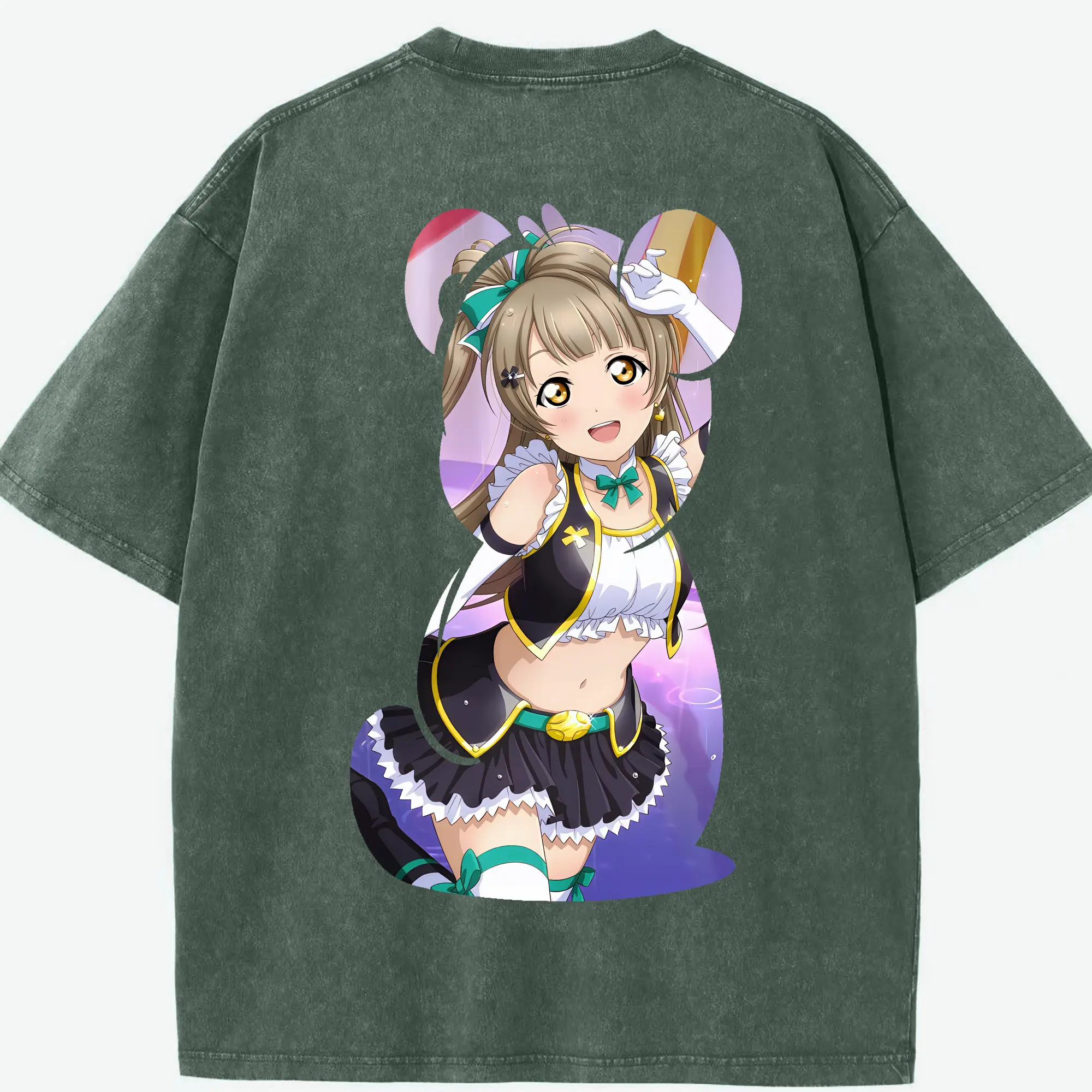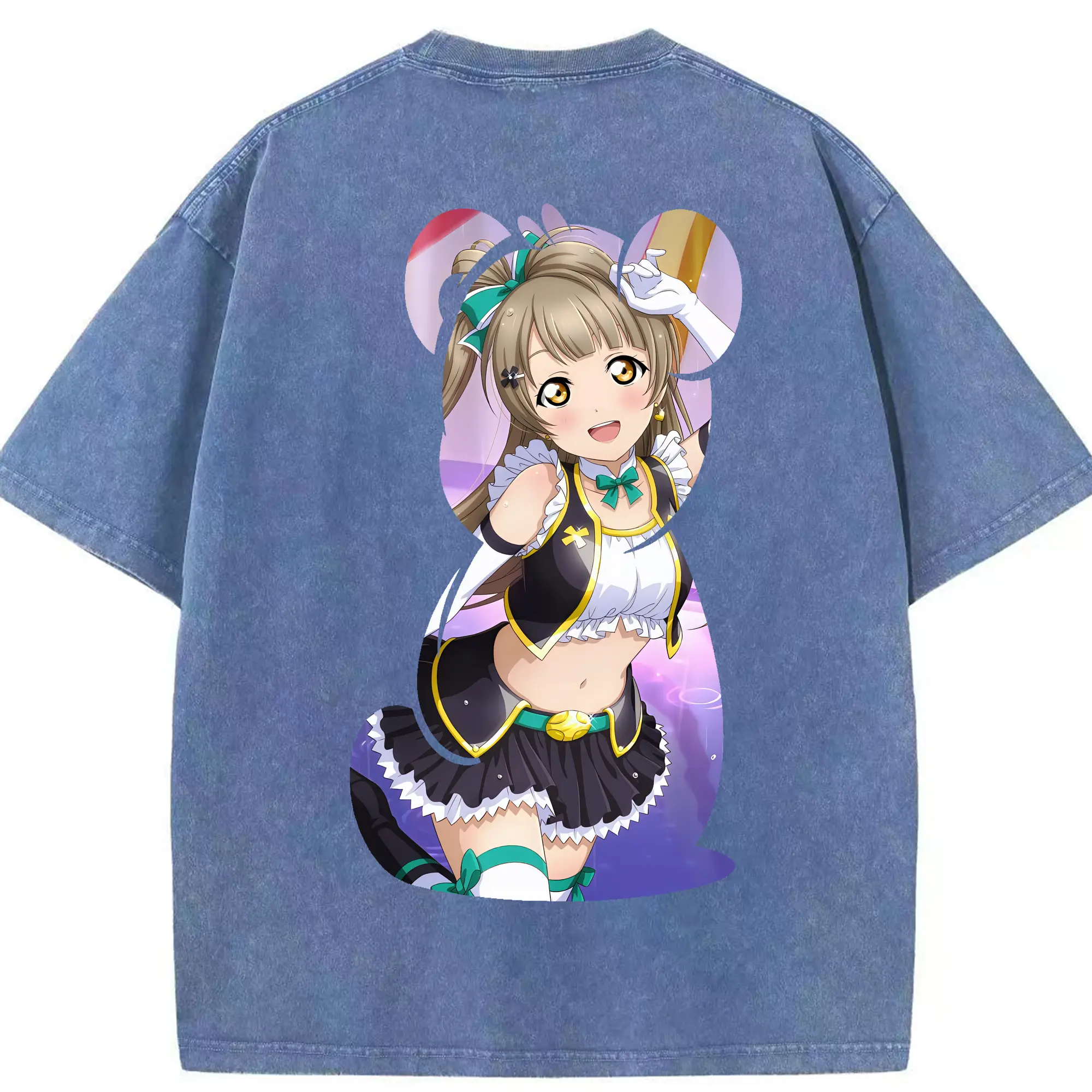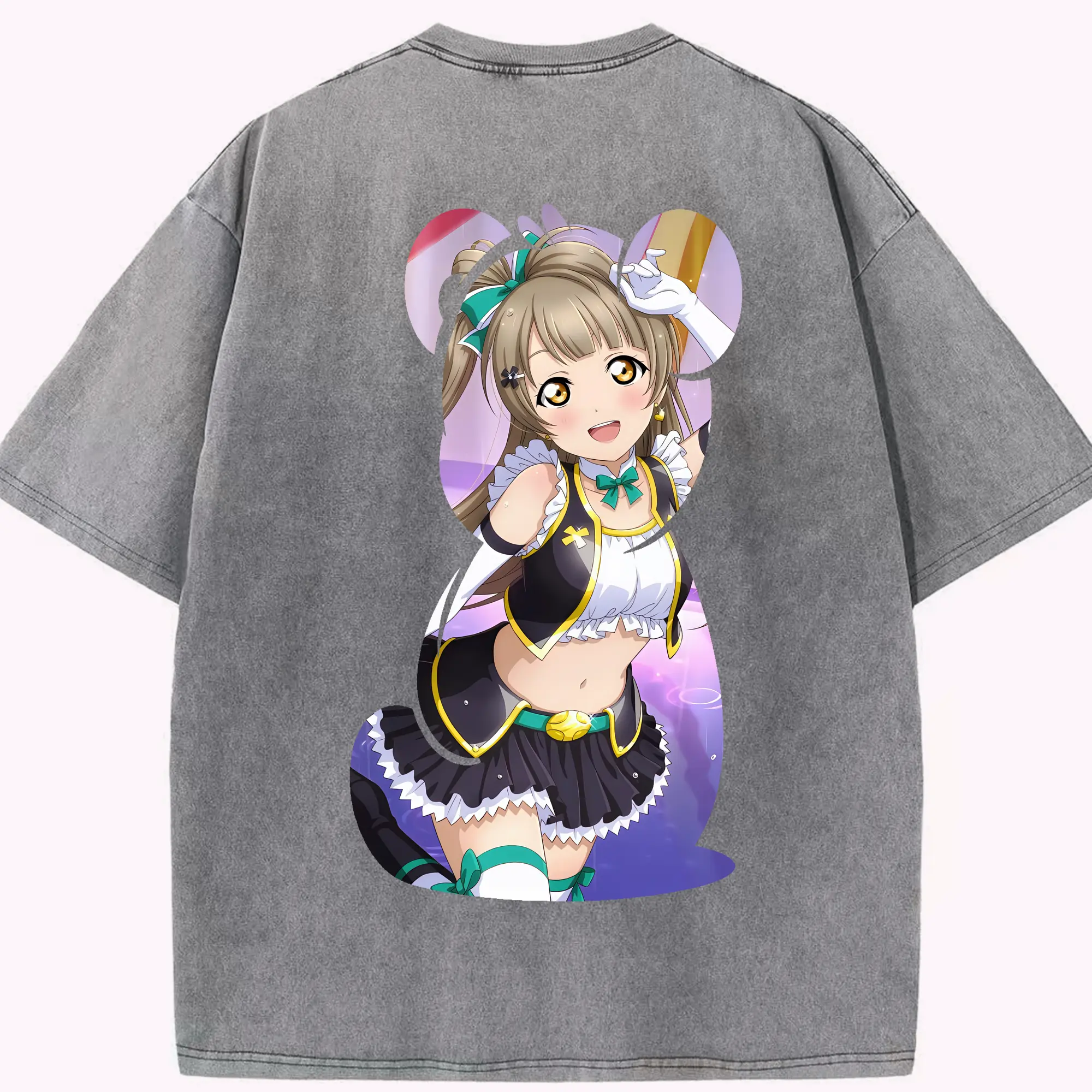 Love Live! グッズ,南ことり - 綿100% ヴィンテージ風 半袖Tシャツ ・ フロントプリント ・ 柔らか肌触り ・ 通気性 快適 ・ スポーツ カジュアル 外出用