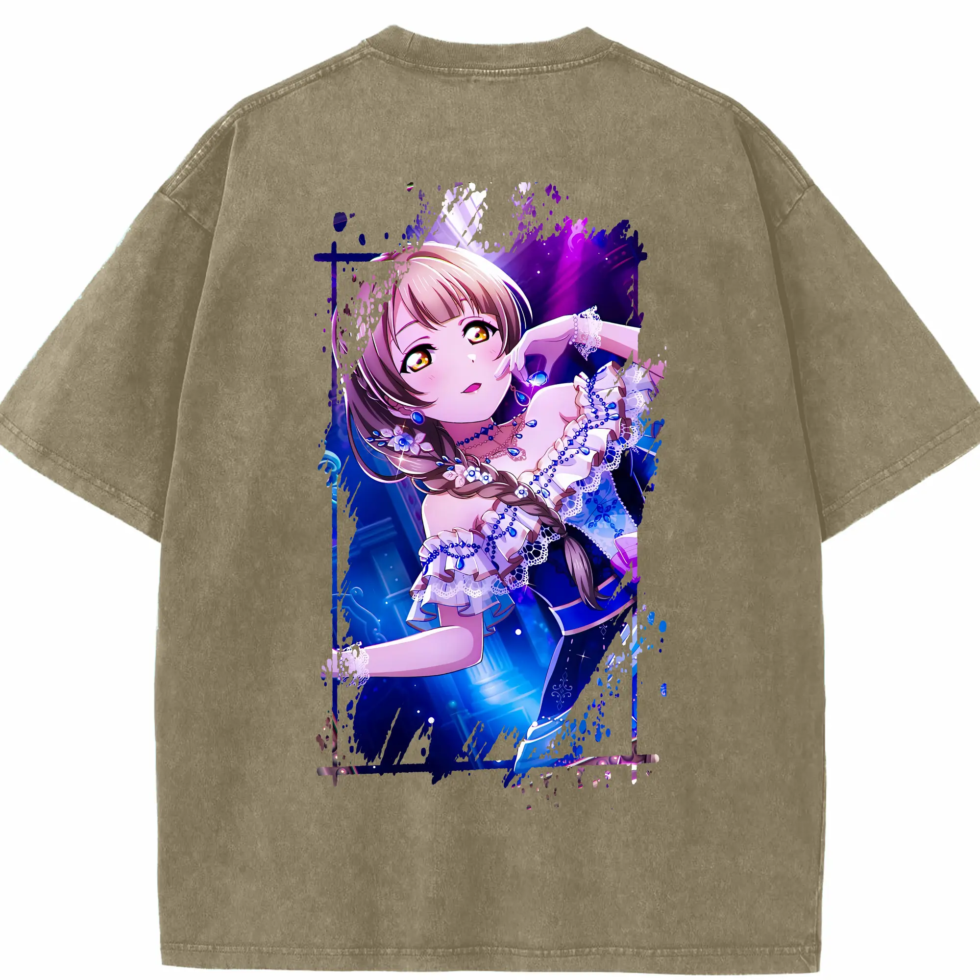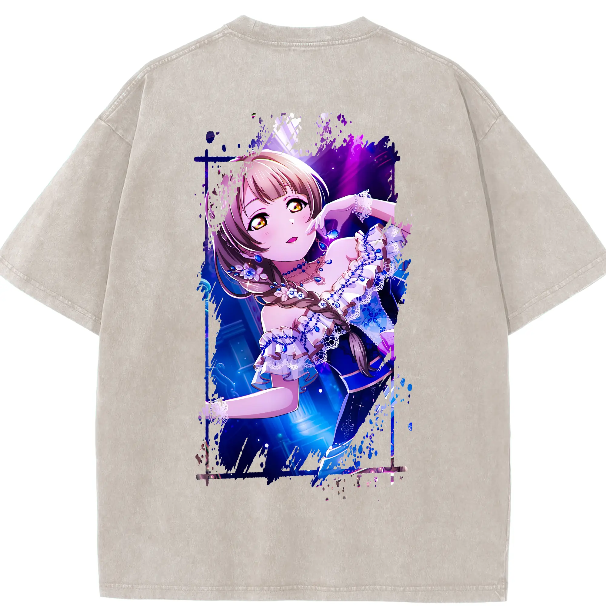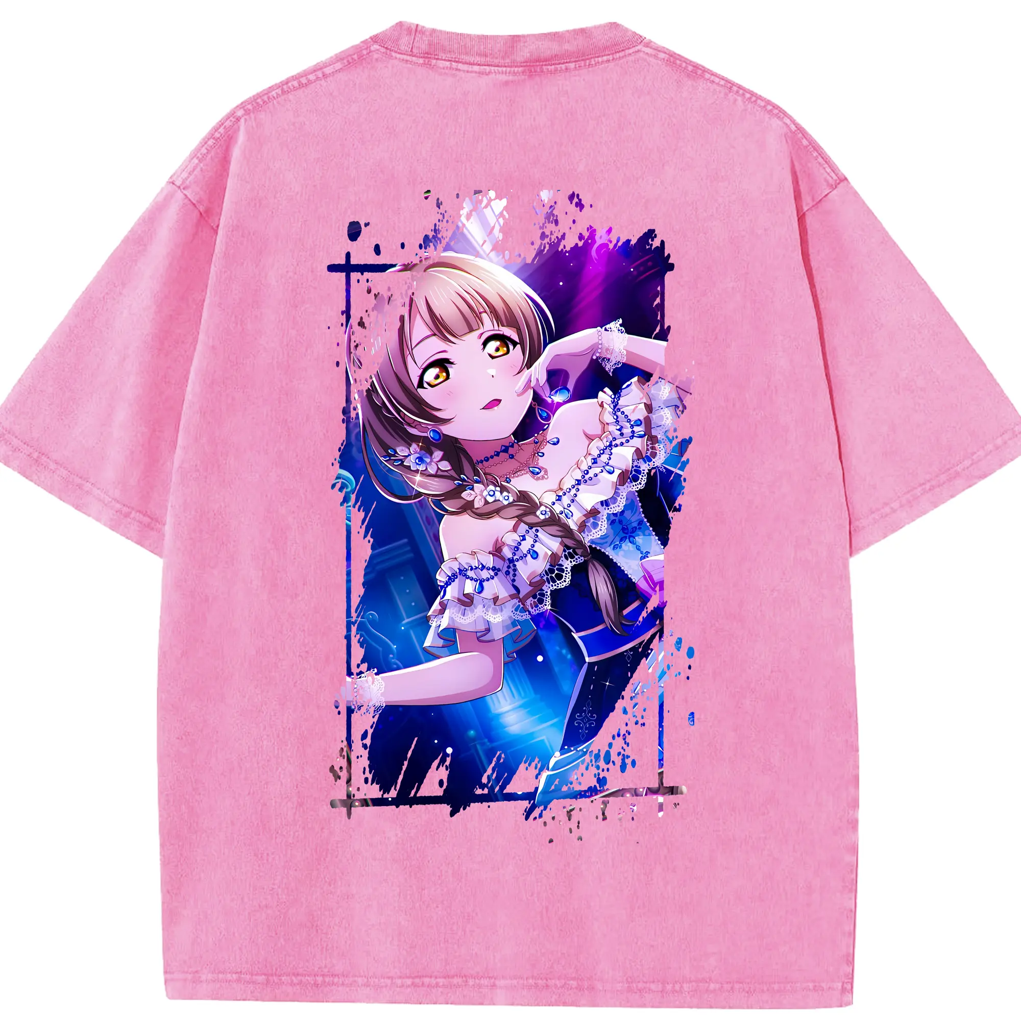 Love Live! グッズ,南ことり - 綿100% ヴィンテージ風 半袖Tシャツ ・ フロントプリント ・ 柔らか肌触り ・ 通気性 快適 ・ スポーツ カジュアル 外出用