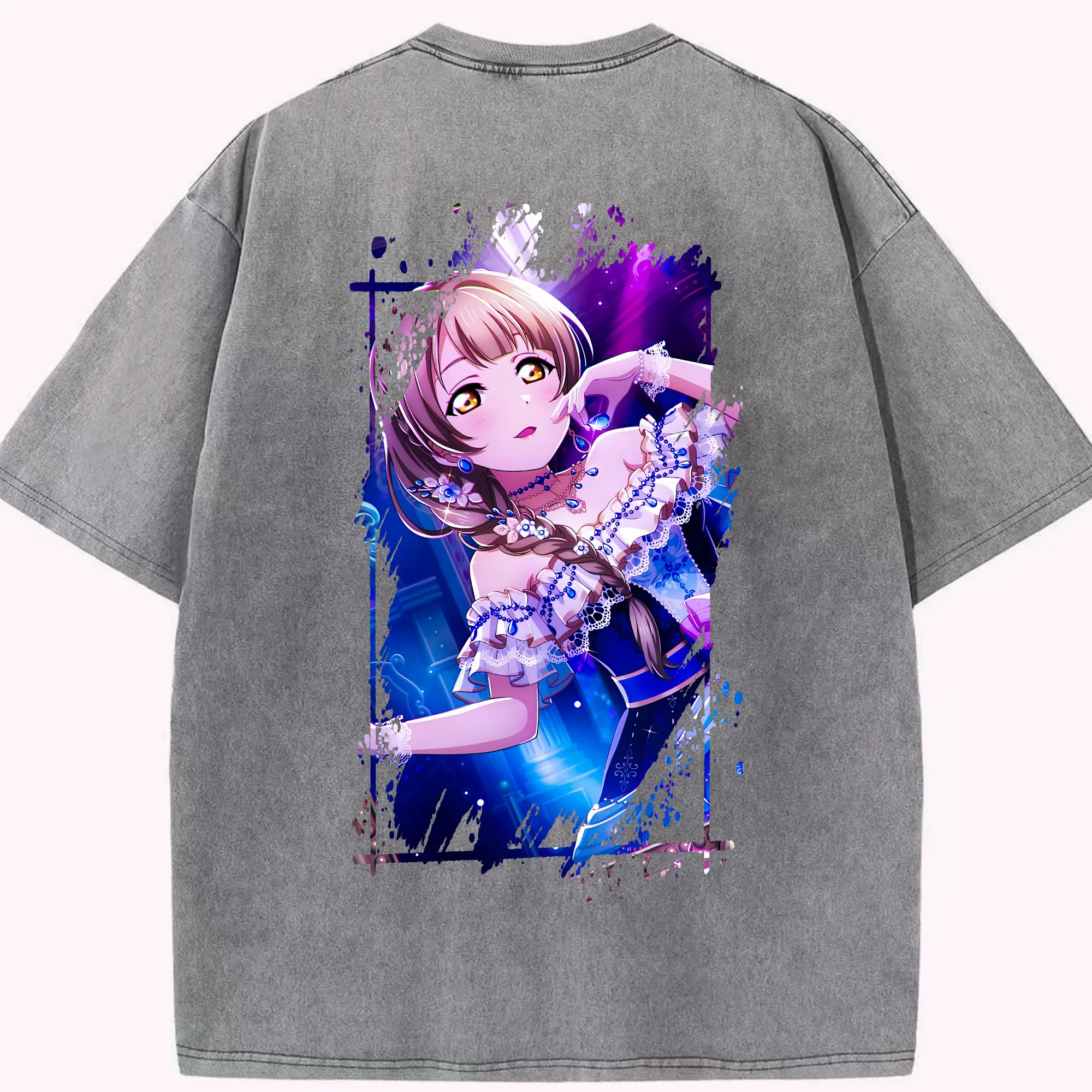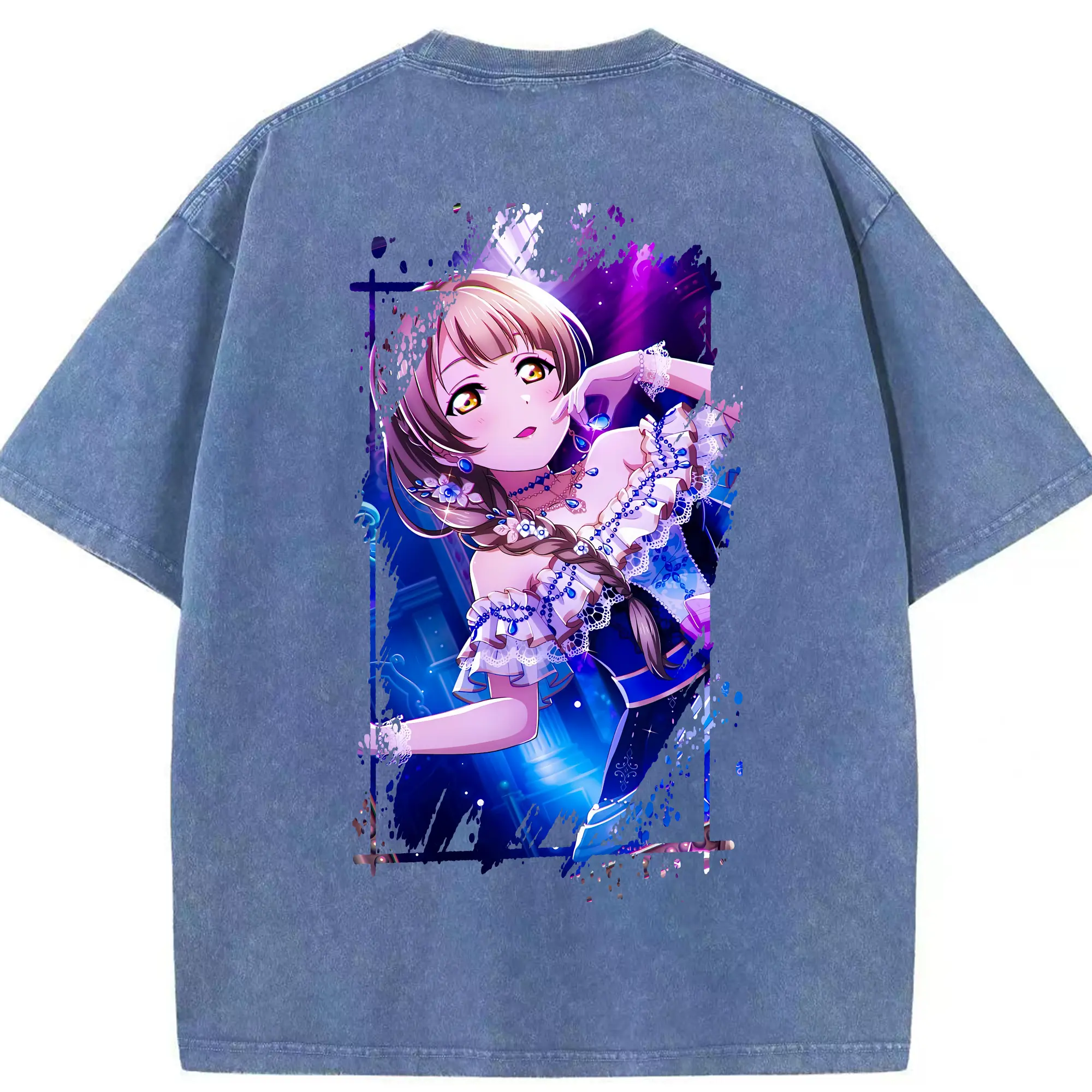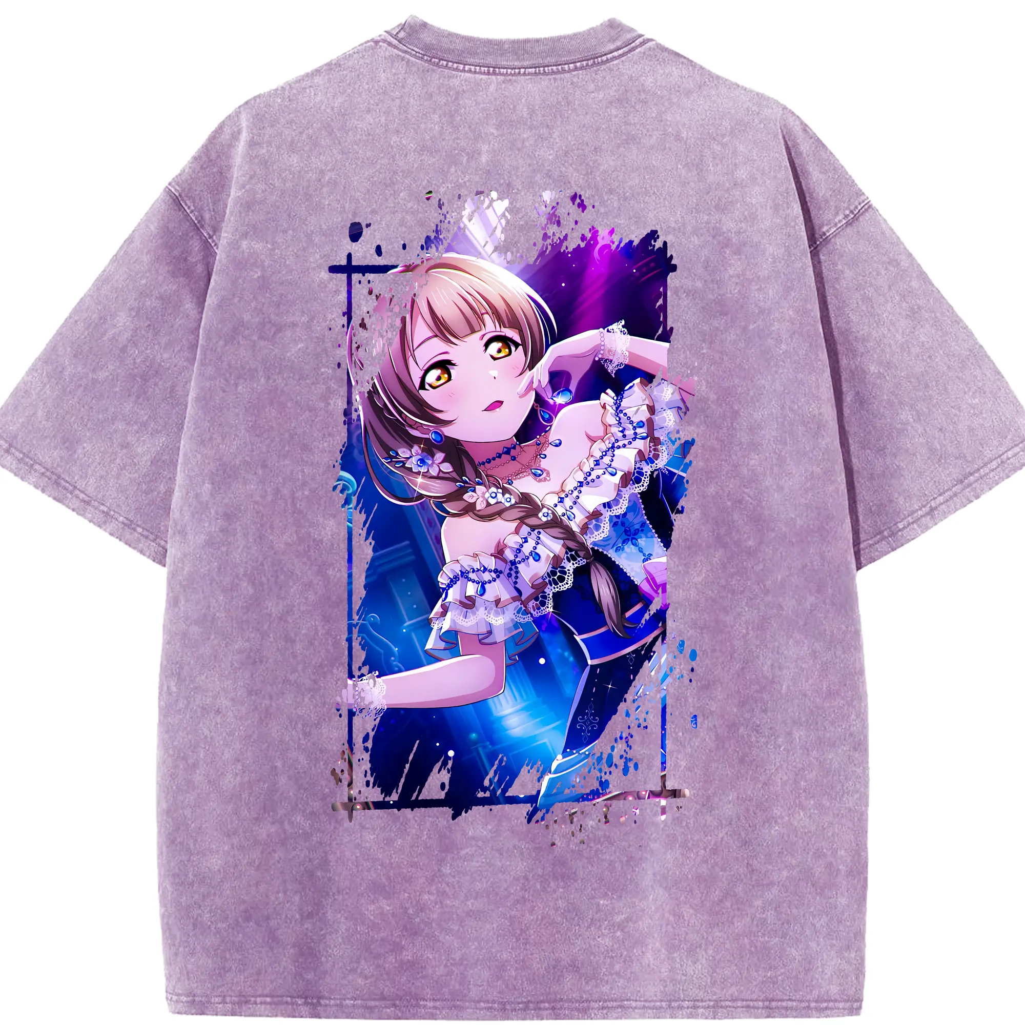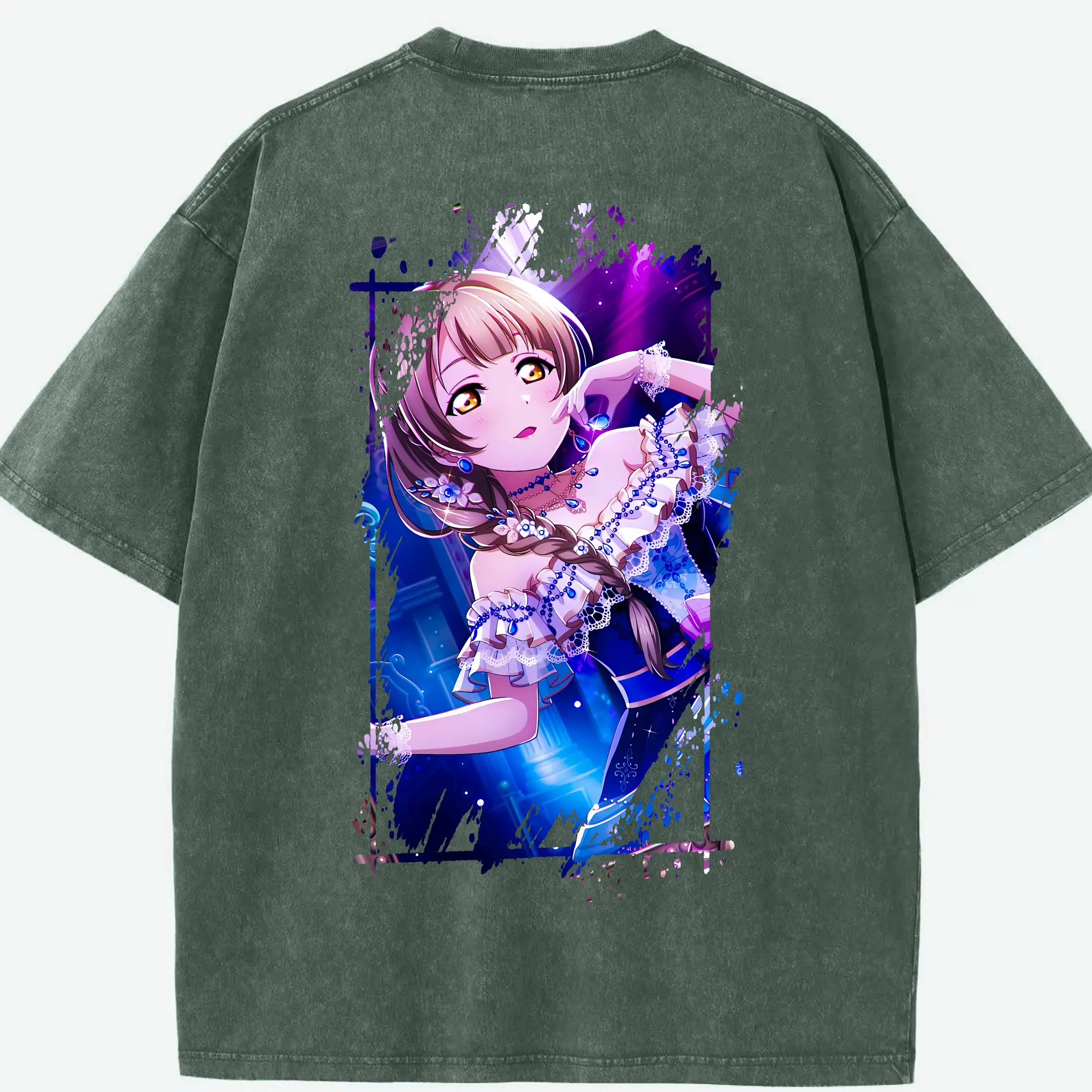 Love Live! グッズ,南ことり - 綿100% ヴィンテージ風 半袖Tシャツ ・ フロントプリント ・ 柔らか肌触り ・ 通気性 快適 ・ スポーツ カジュアル 外出用