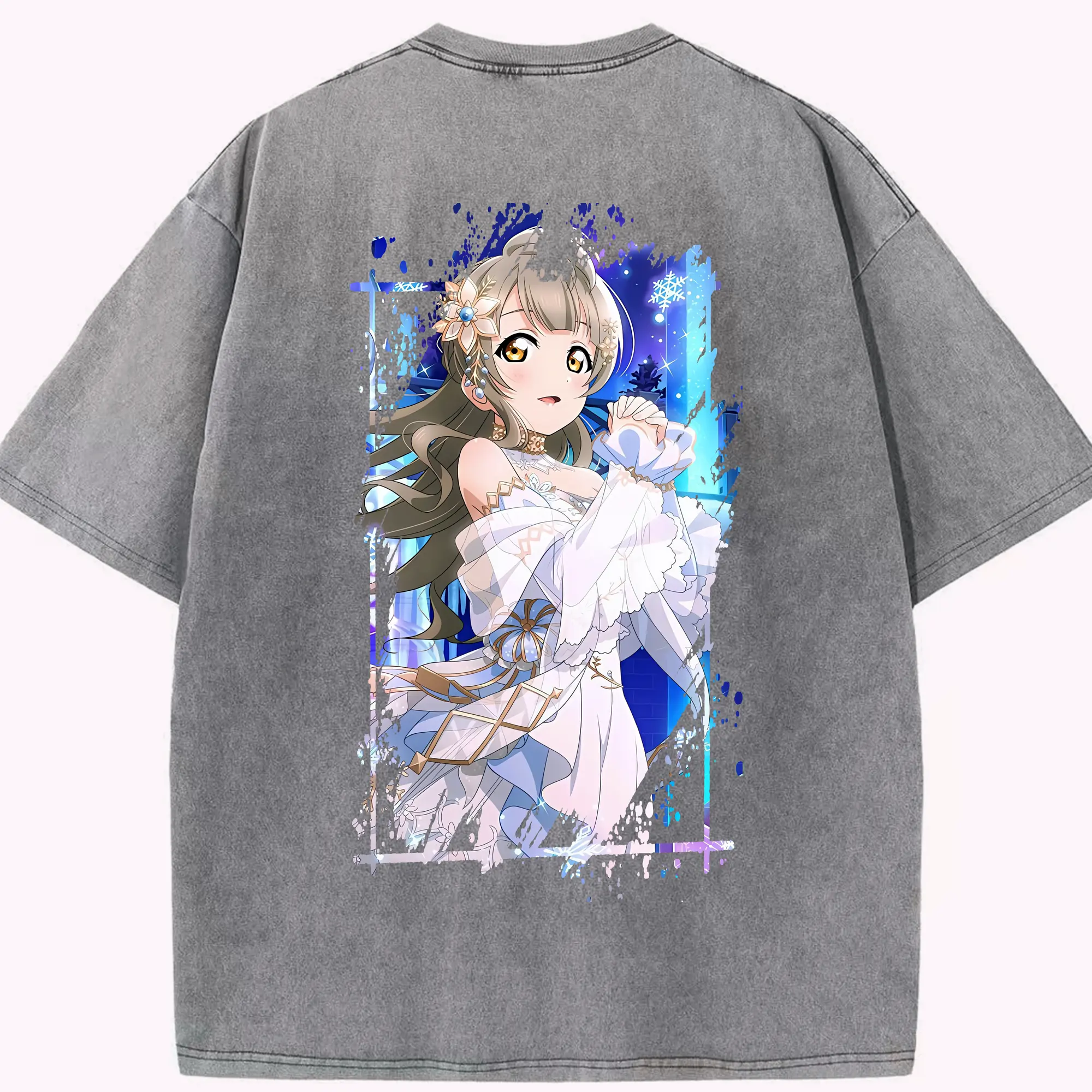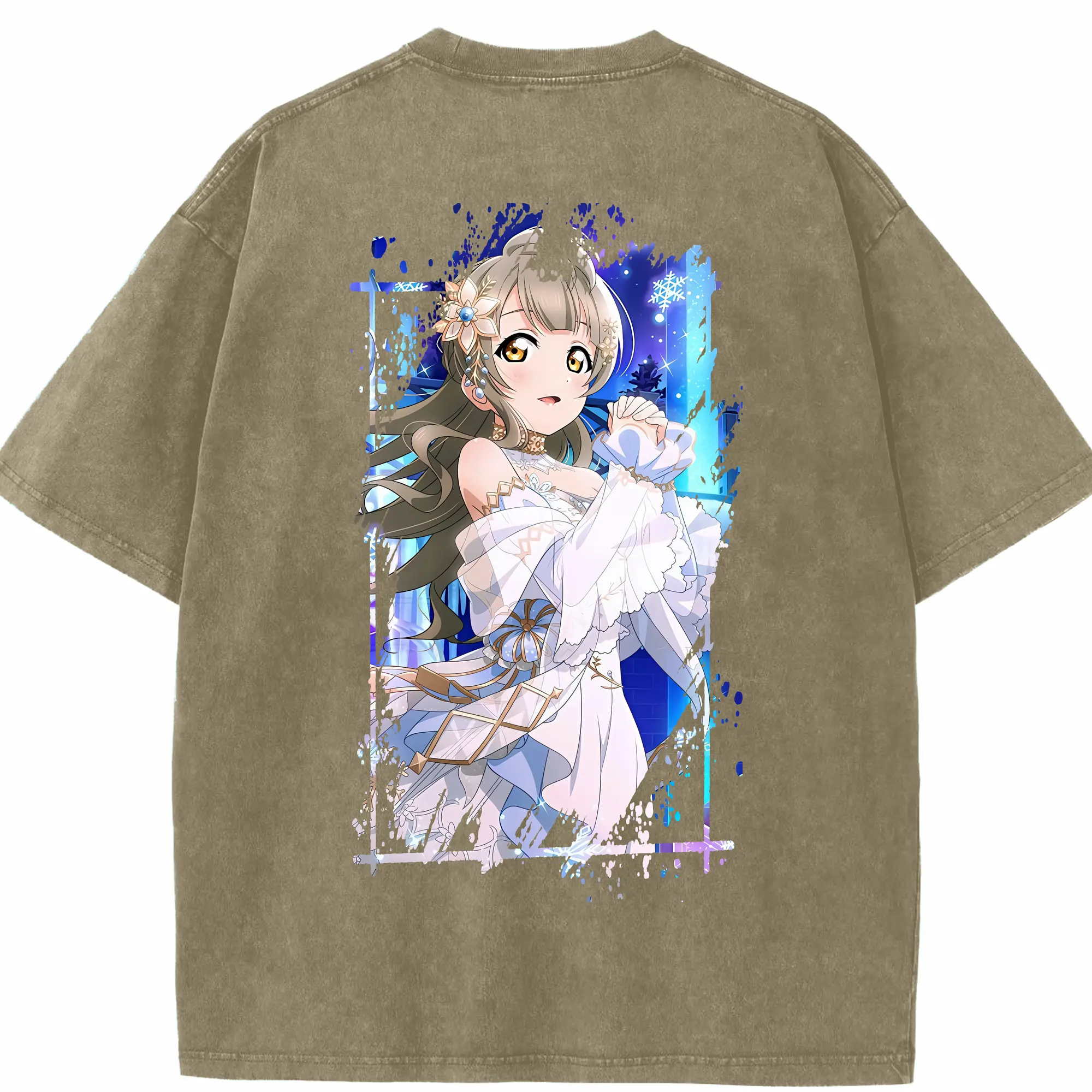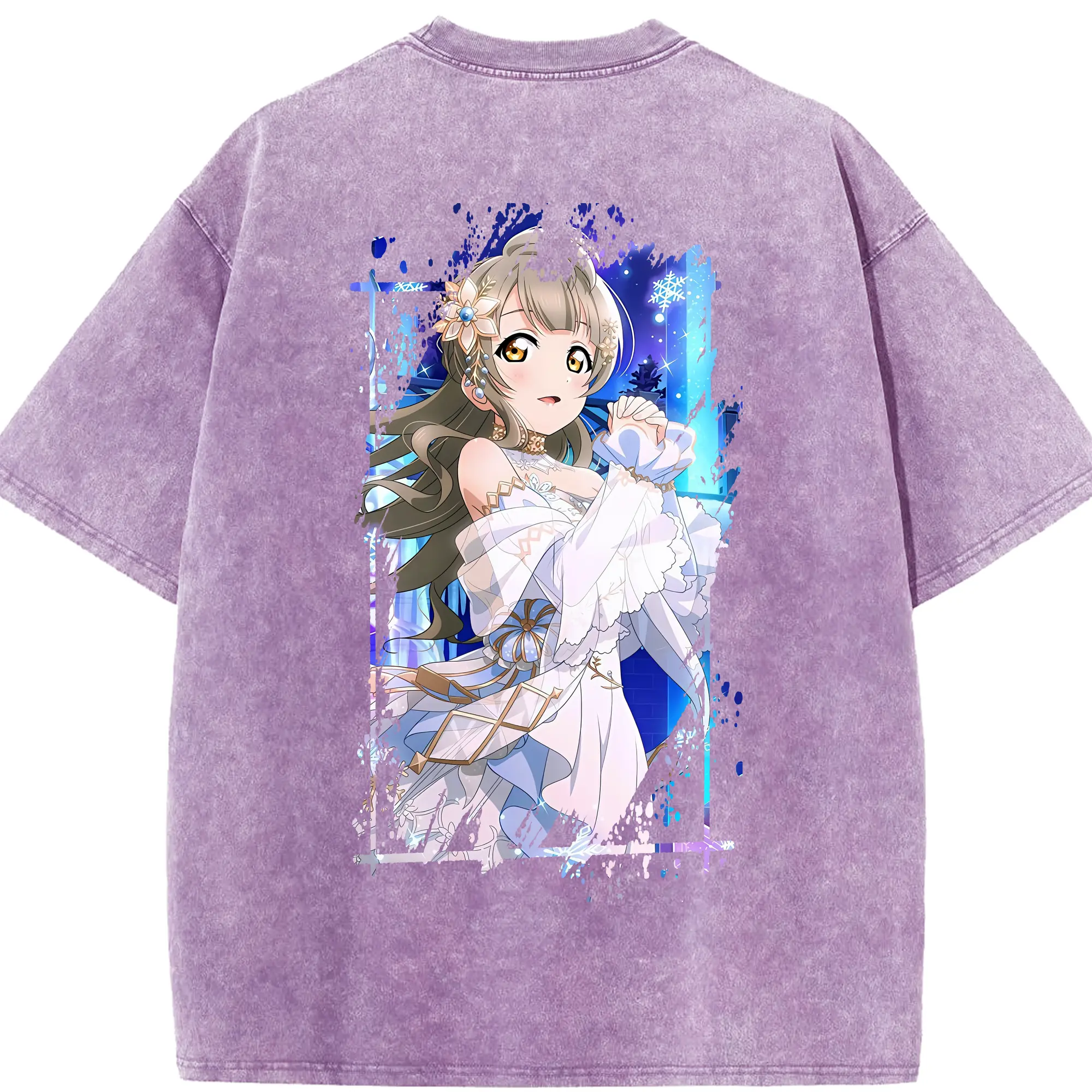 Love Live! グッズ,南ことり - 綿100% ヴィンテージ風 半袖Tシャツ ・ フロントプリント ・ 柔らか肌触り ・ 通気性 快適 ・ スポーツ カジュアル 外出用
