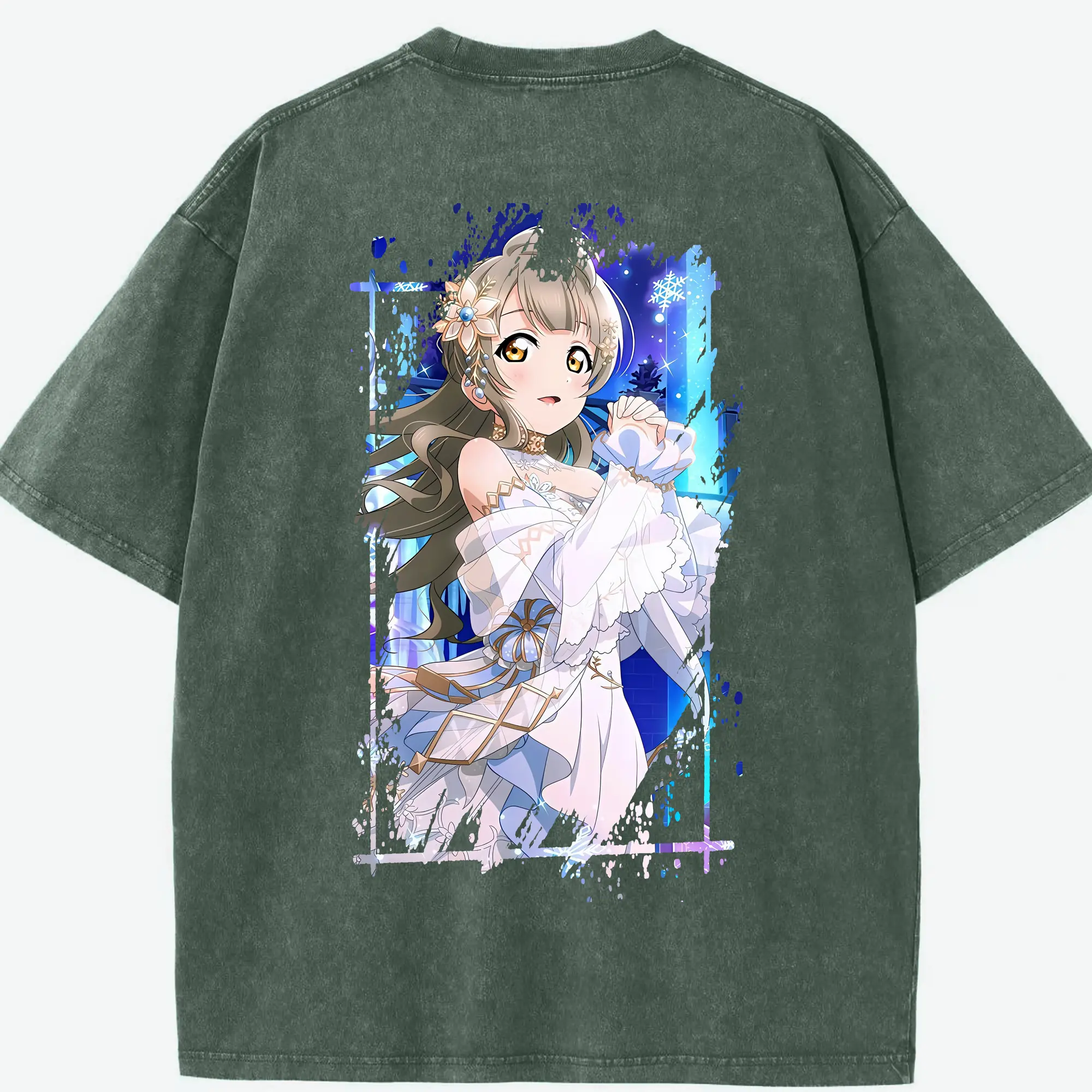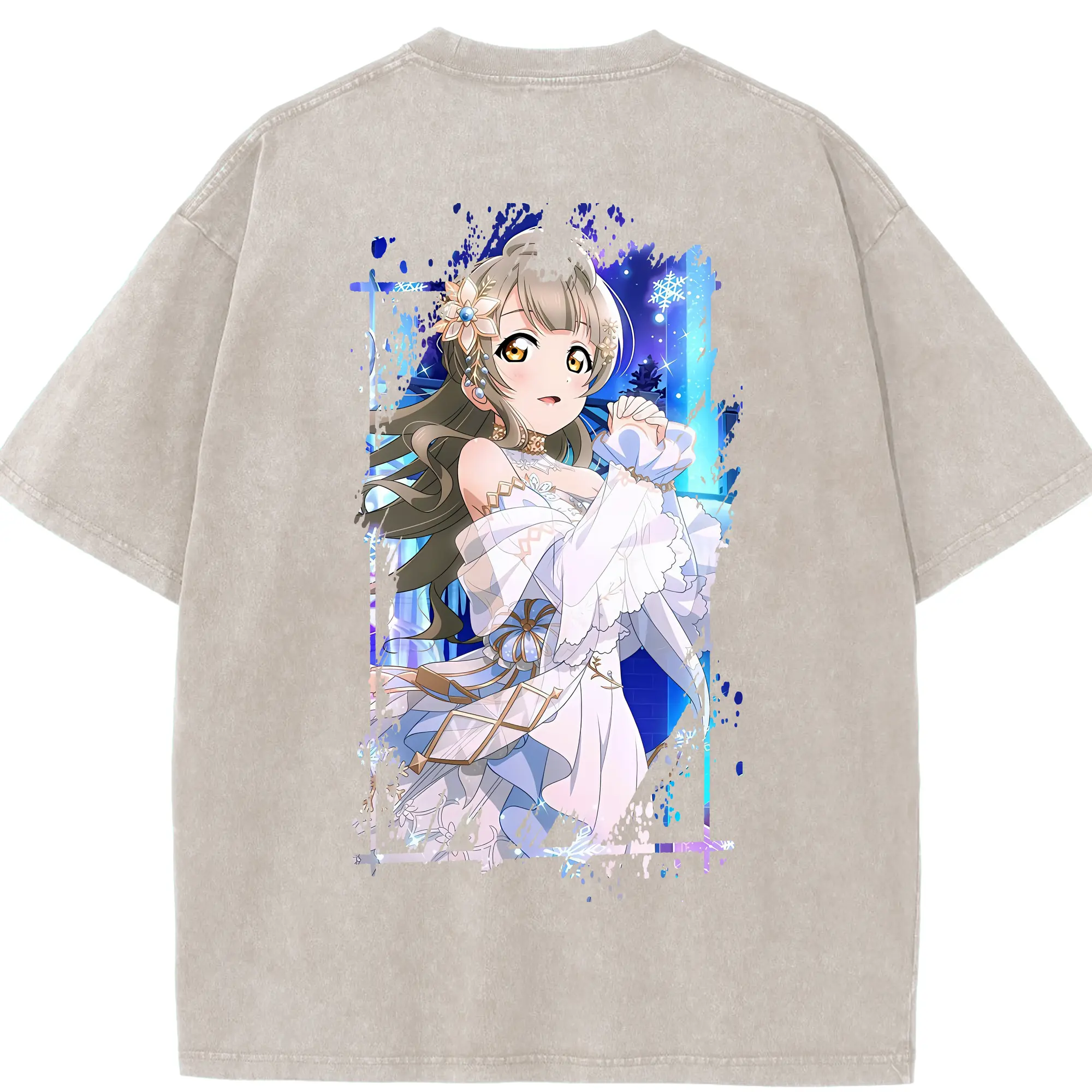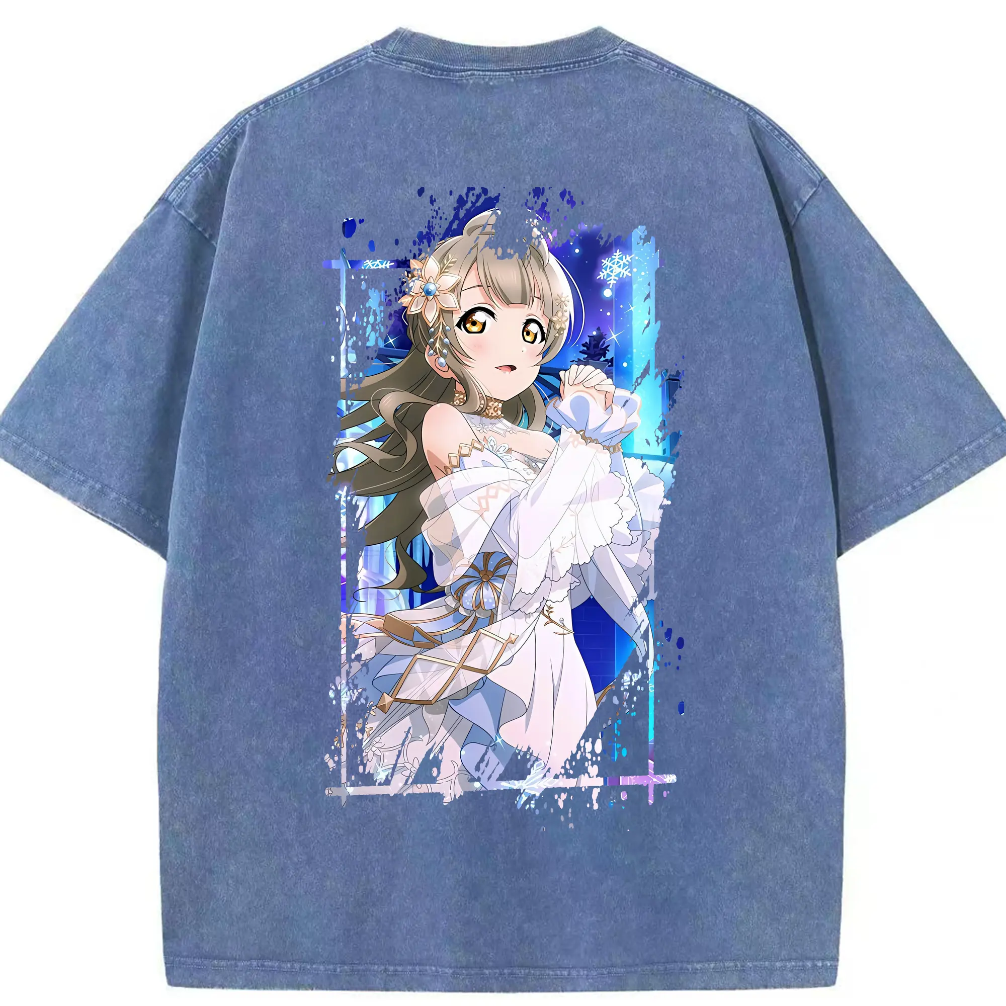 Love Live! グッズ,南ことり - 綿100% ヴィンテージ風 半袖Tシャツ ・ フロントプリント ・ 柔らか肌触り ・ 通気性 快適 ・ スポーツ カジュアル 外出用