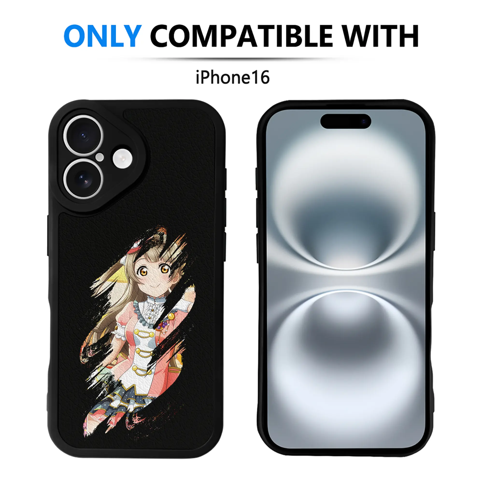Love Live! グッズ,南ことり - IPhone 16シリーズ対応 ・ シリコンスマホケース ・ レザー調 ・ 高精度フィット ・ 耐衝撃 ・ ワイヤレス充電対応 ・ 精密カット