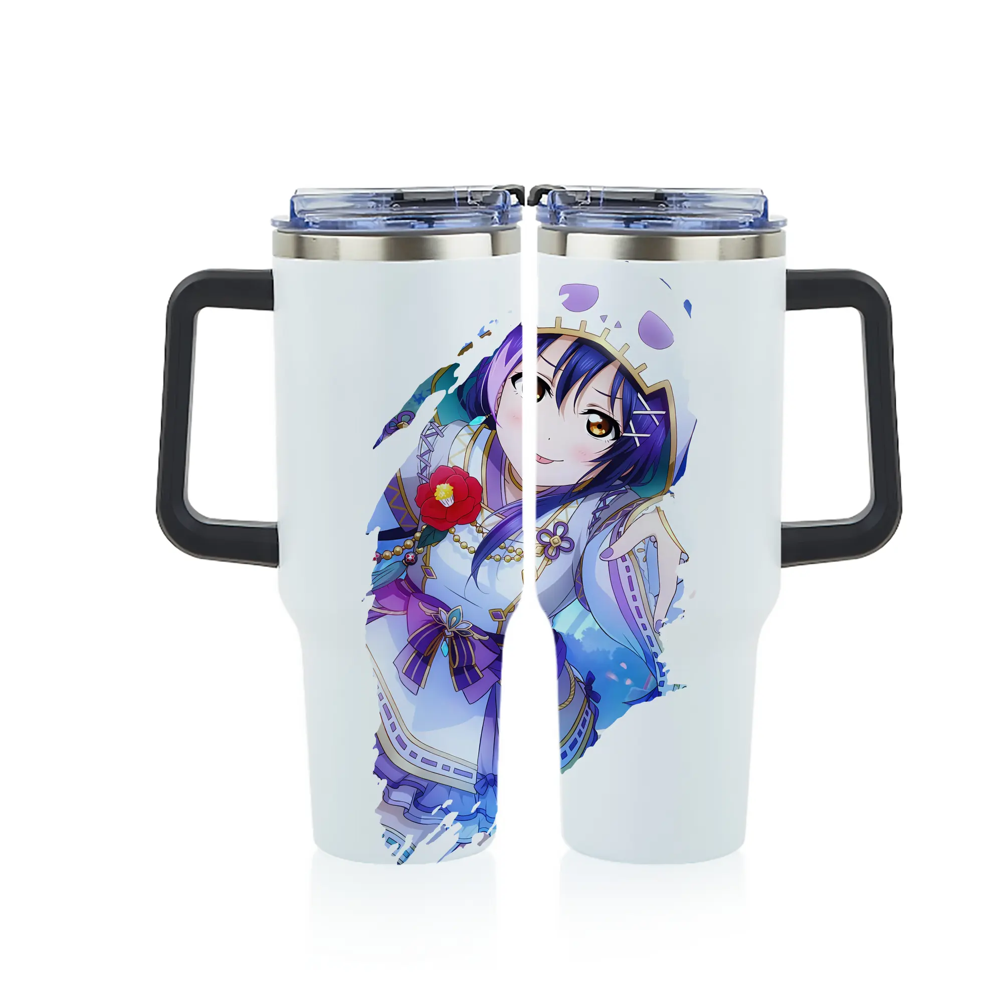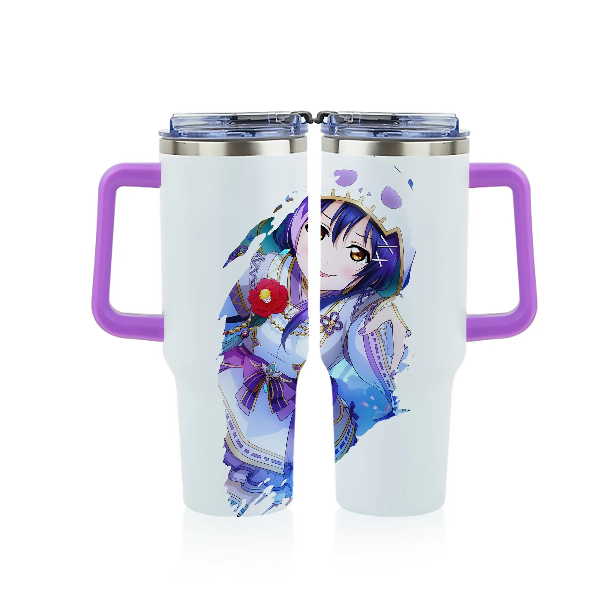 Love Live! グッズ,園田海未 - 1200mL フルプリント車用タンブラー ・ 304ステンレス 内側 ・ 201ステンレス 外側 ・ 保温 保冷 ・ 通勤 ドライブ アウトドア用