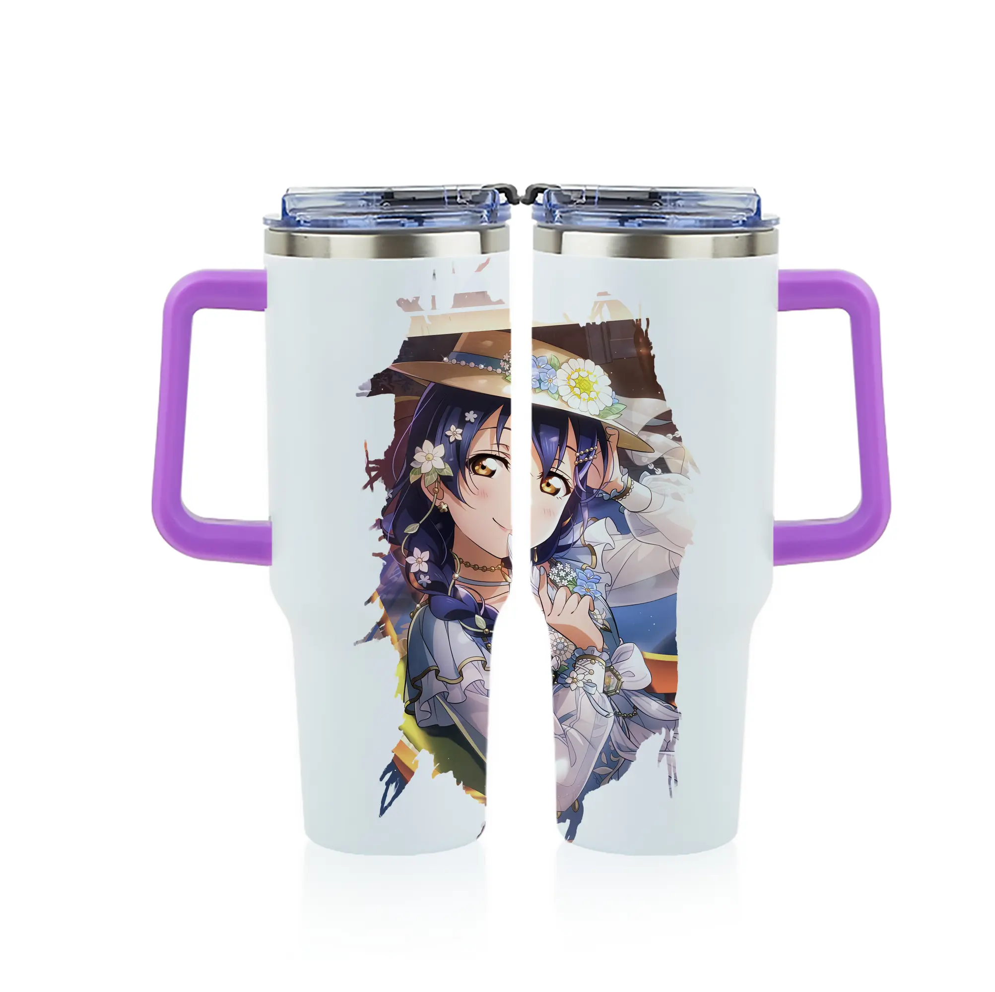 Love Live! グッズ,園田海未 - 1200mL フルプリント車用タンブラー ・ 304ステンレス 内側 ・ 201ステンレス 外側 ・ 保温 保冷 ・ 通勤 ドライブ アウトドア用