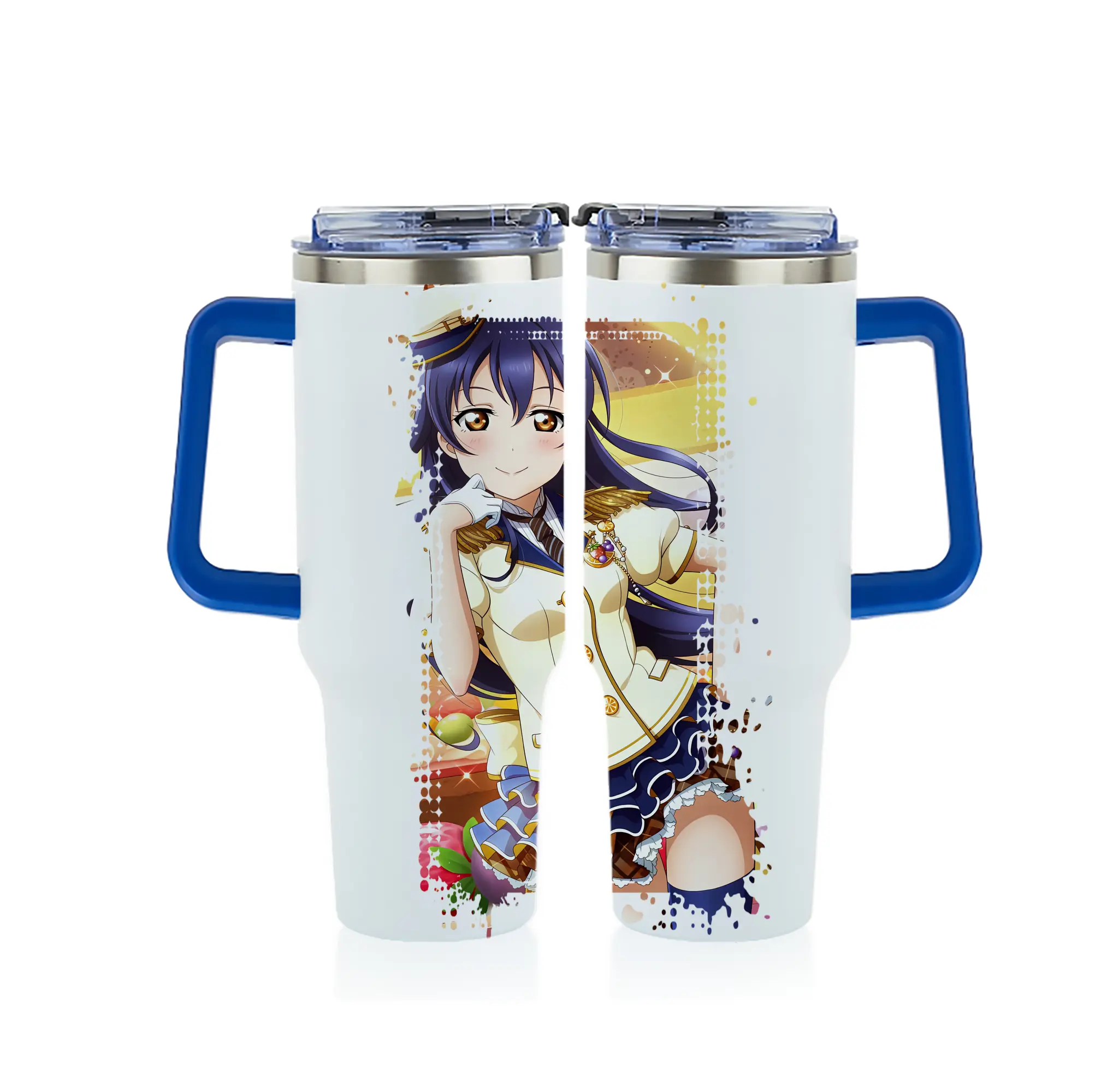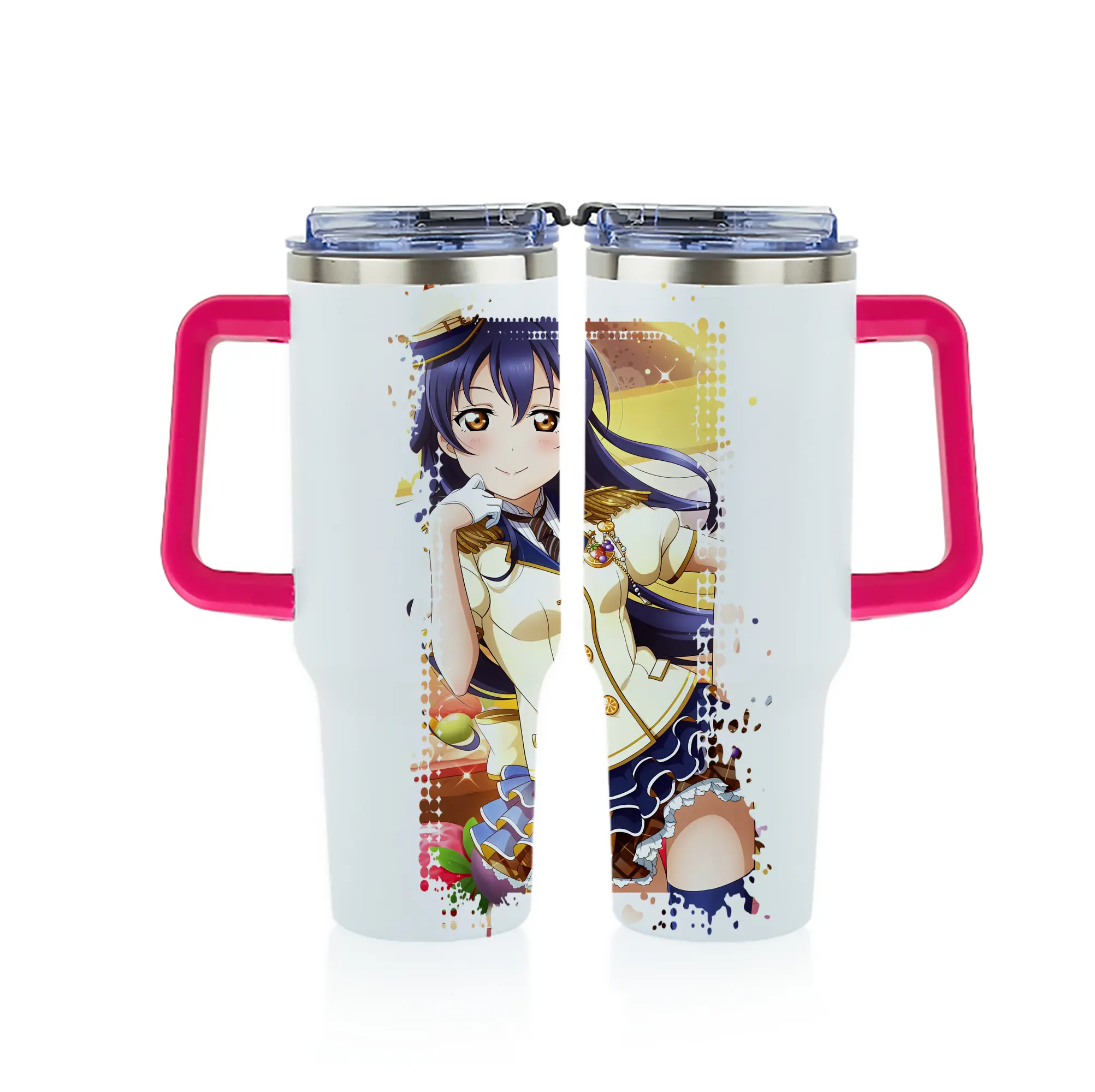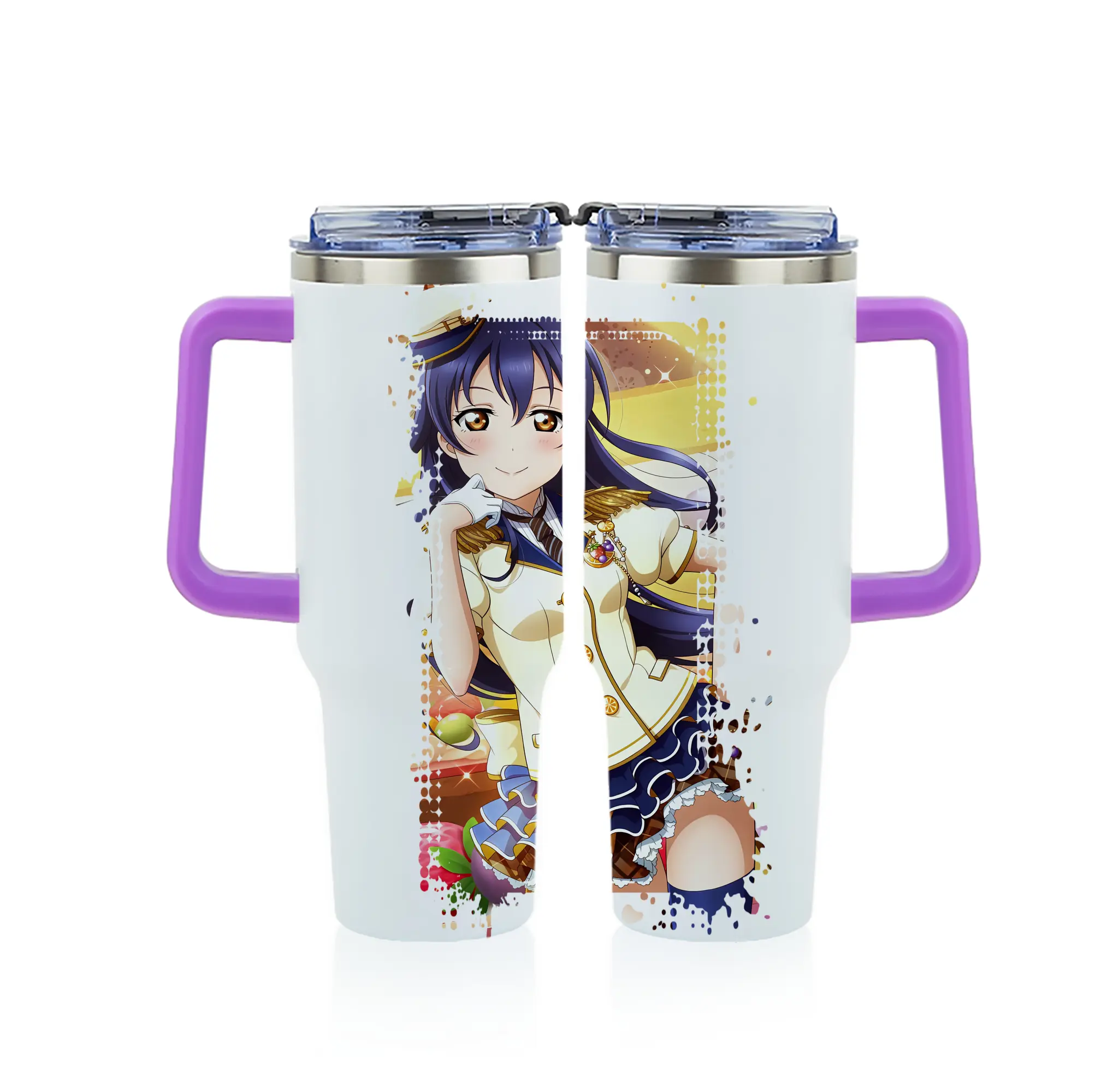 Love Live! グッズ,園田海未 - 1200mL フルプリント車用タンブラー ・ 304ステンレス 内側 ・ 201ステンレス 外側 ・ 保温 保冷 ・ 通勤 ドライブ アウトドア用