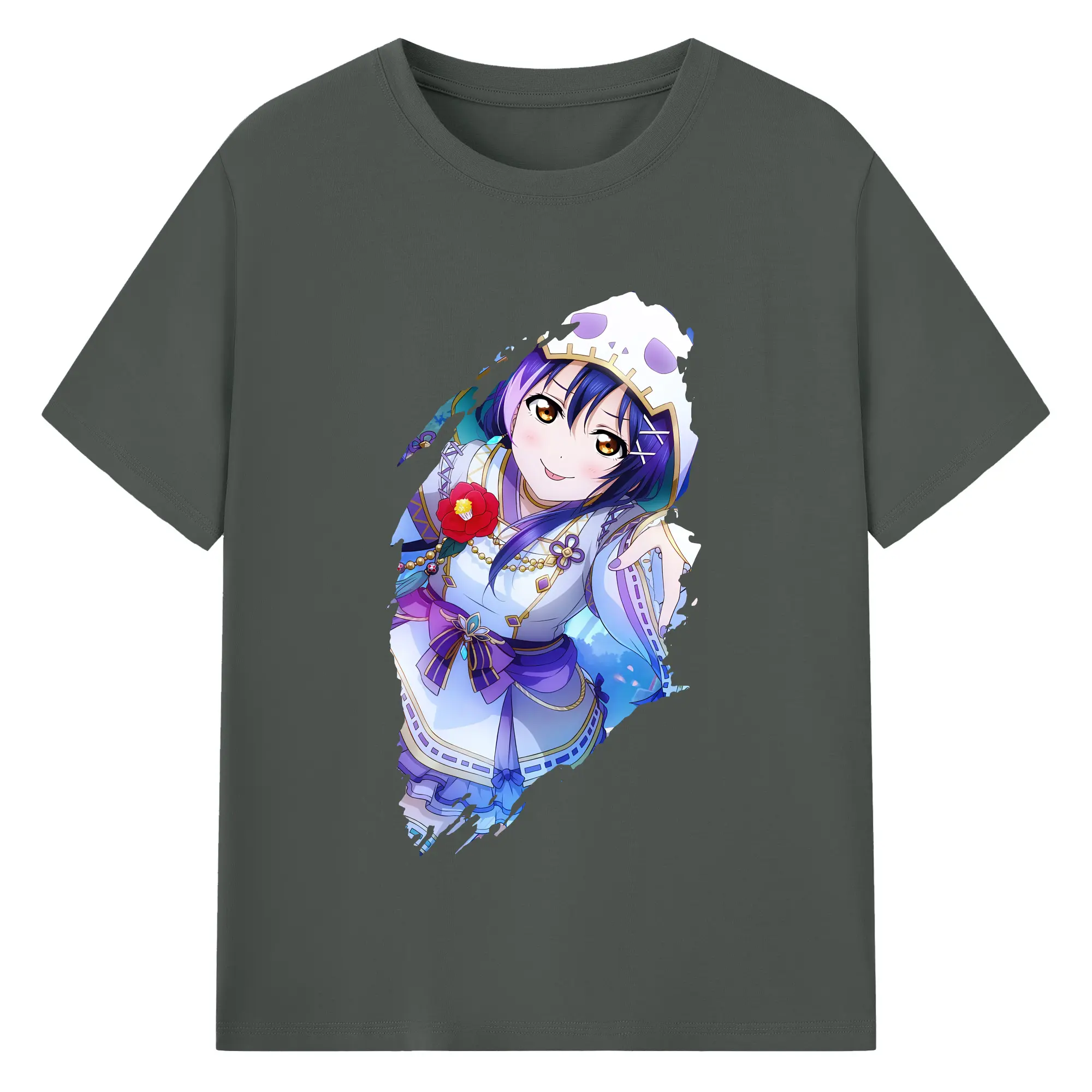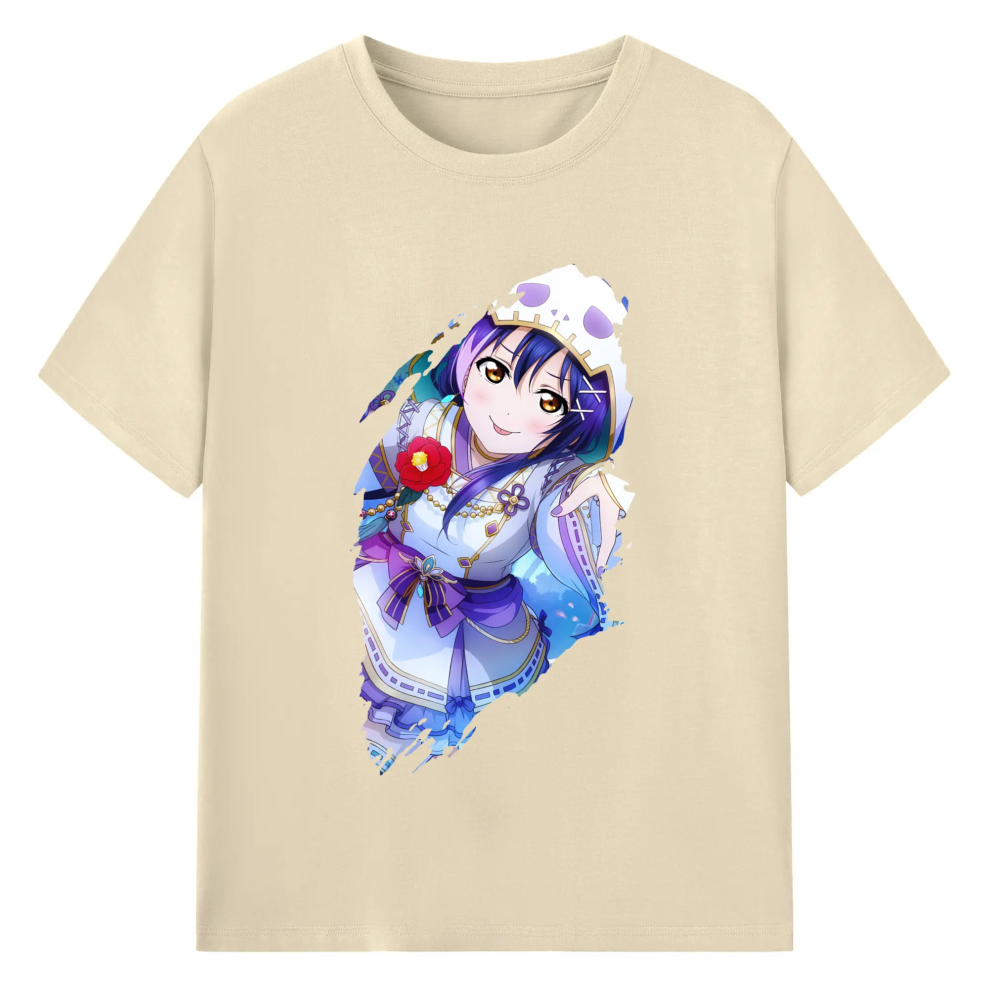 Love Live! グッズ,園田海未 - 綿100% ヴィンテージ風 半袖Tシャツ ・ フロントプリント ・ 柔らか肌触り ・ 通気性 快適 ・ スポーツ カジュアル 外出用