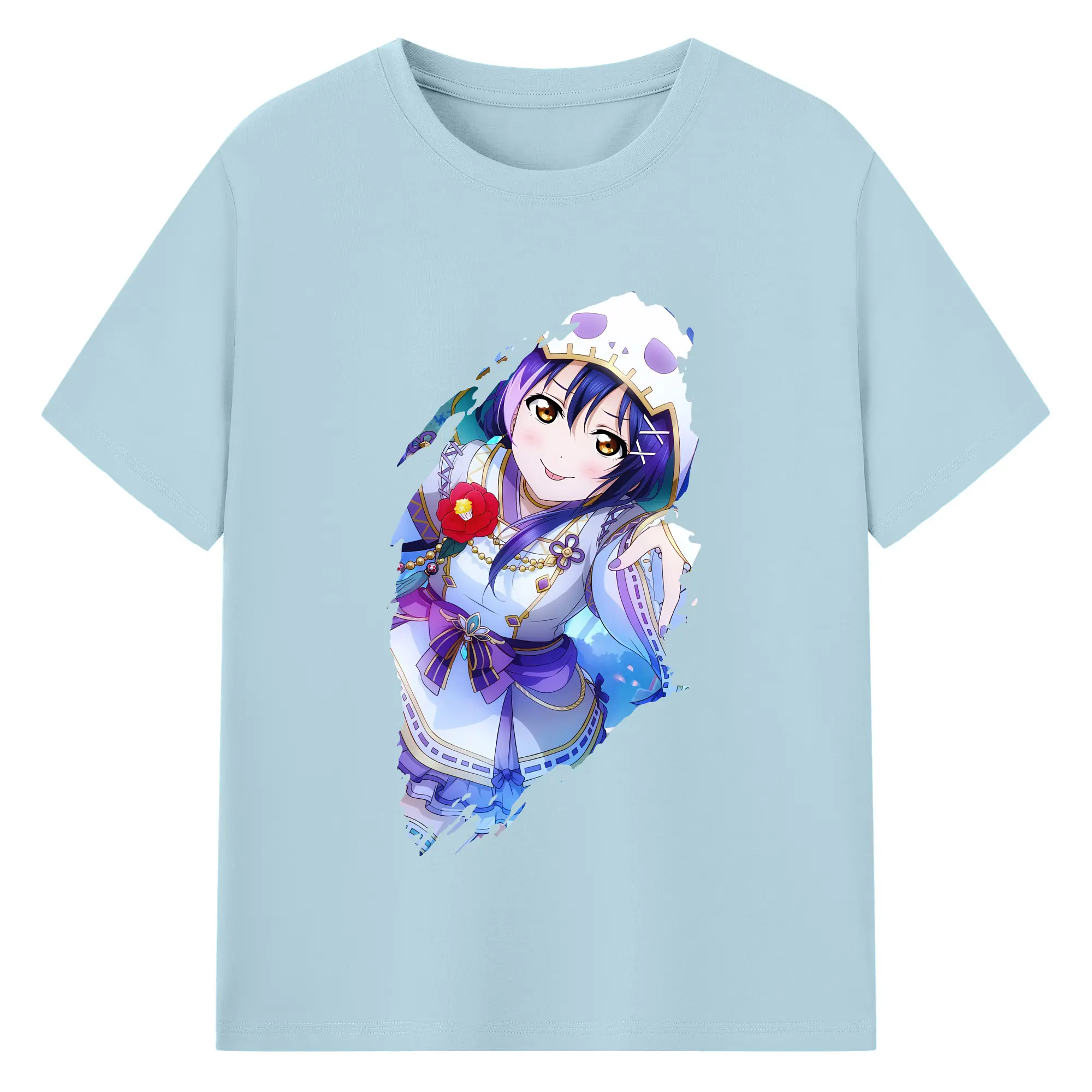 Love Live! グッズ,園田海未 - 綿100% 半袖Tシャツ ・ バックプリント ・ 快適 通気性 ・ 日常使い 散歩 スポーツ用