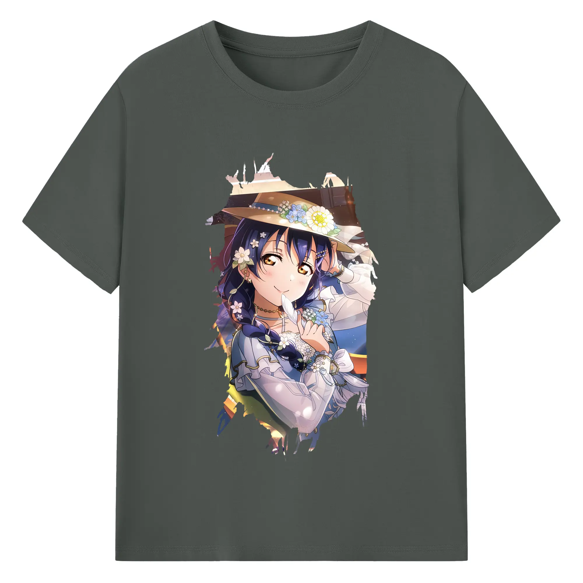 Love Live! グッズ,園田海未 - 綿100% ヴィンテージ風 半袖Tシャツ ・ フロントプリント ・ 柔らか肌触り ・ 通気性 快適 ・ スポーツ カジュアル 外出用