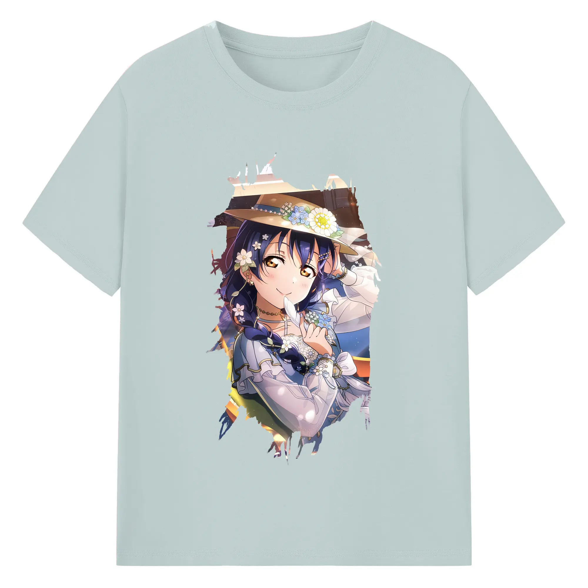 Love Live! グッズ,園田海未 - 綿100% 半袖Tシャツ ・ バックプリント ・ 快適 通気性 ・ 日常使い 散歩 スポーツ用
