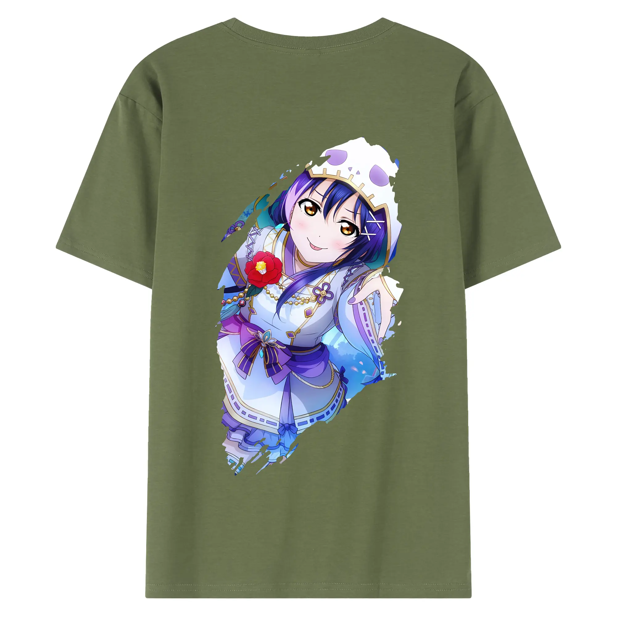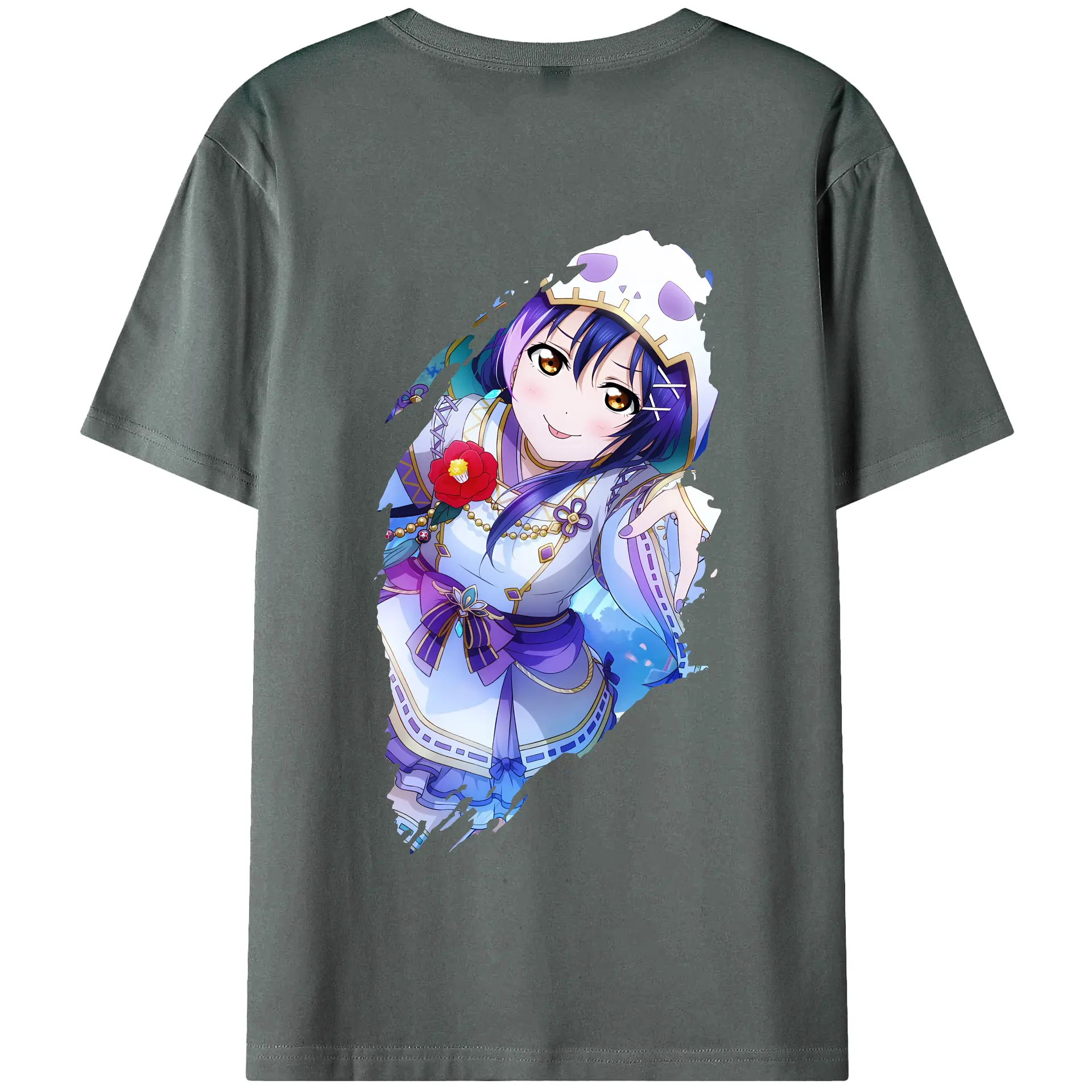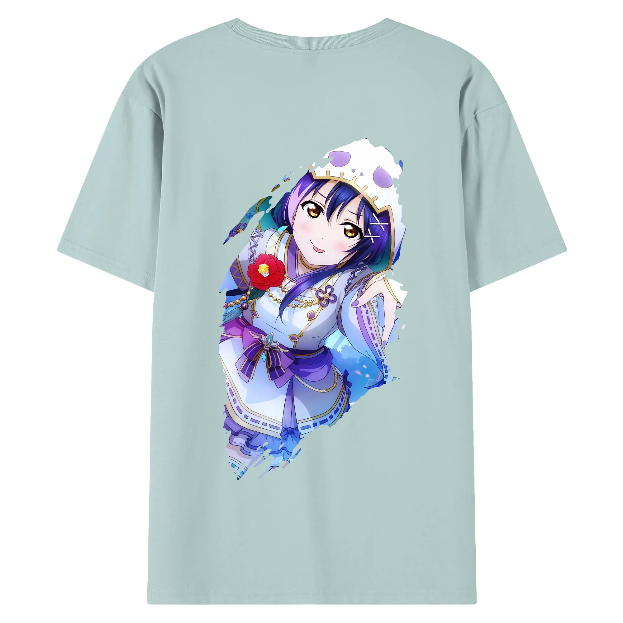 Love Live! グッズ,園田海未 - 綿100% ヴィンテージ風 半袖Tシャツ ・ 背面プリント ・ 柔らか肌触り ・ 通気性 快適 ・ スポーツ カジュアル 外出用