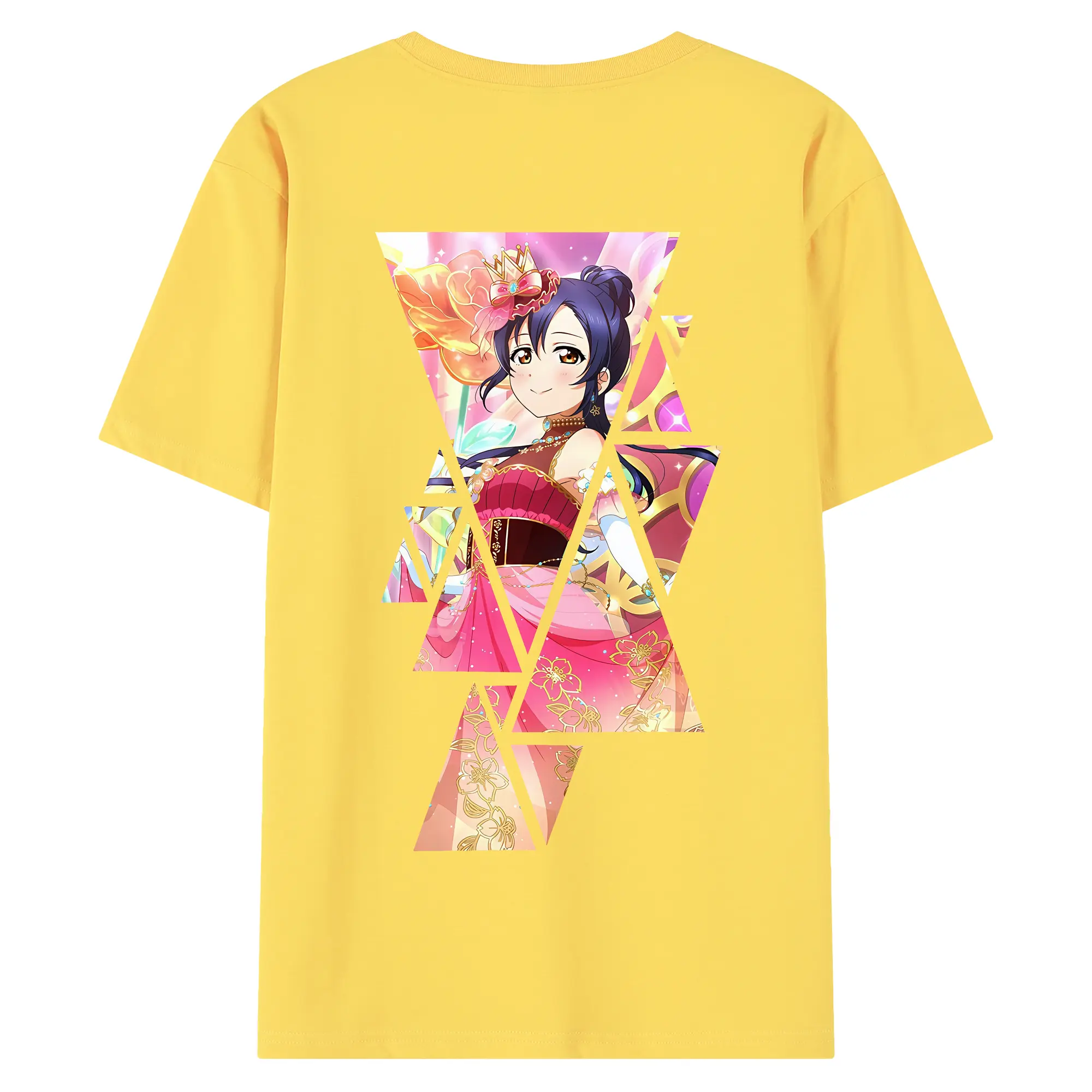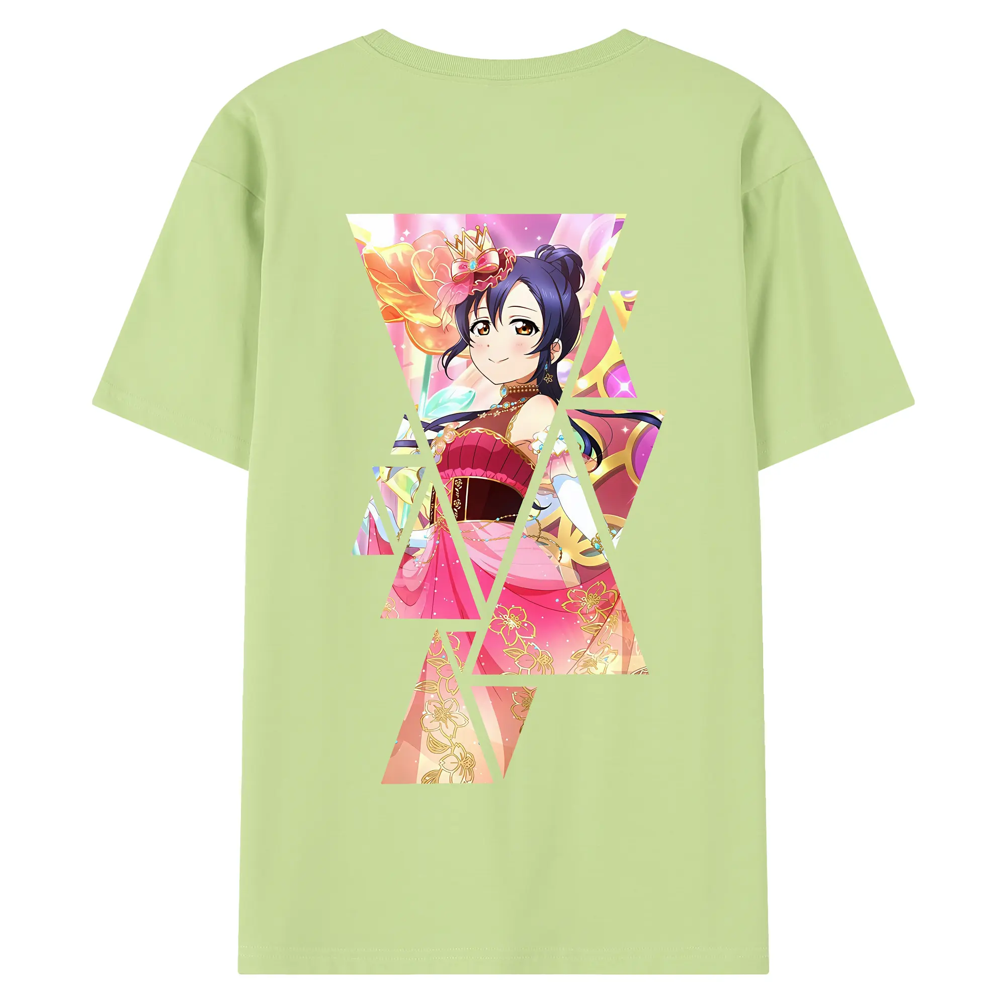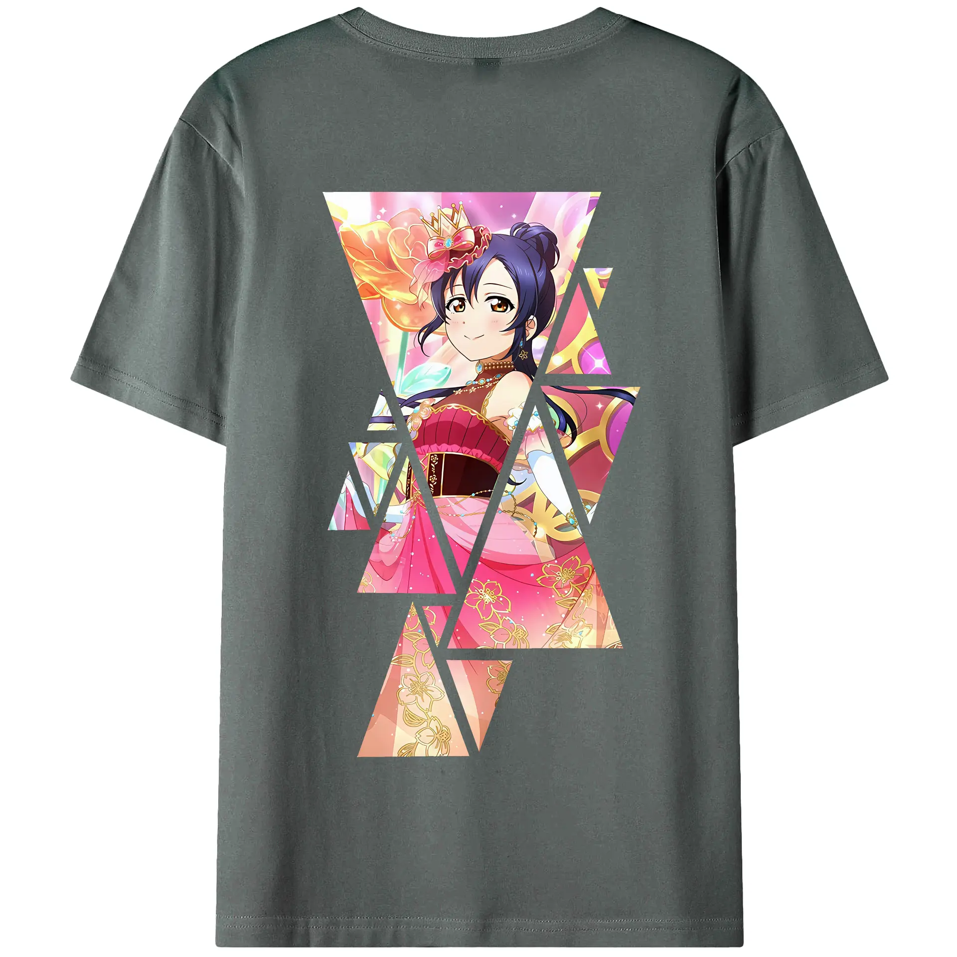 Love Live! グッズ,園田海未 - 綿100% ヴィンテージ風 半袖Tシャツ ・ 背面プリント ・ 柔らか肌触り ・ 通気性 快適 ・ スポーツ カジュアル 外出用
