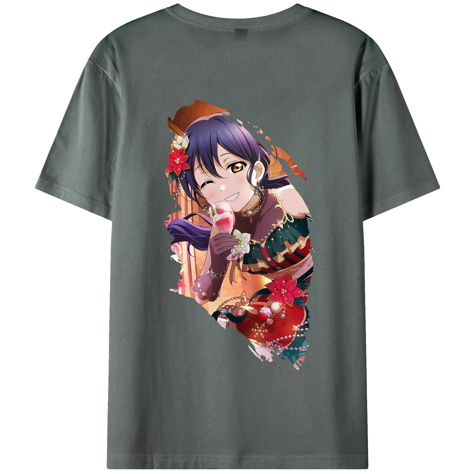 Love Live! グッズ,園田海未 - 綿100% ヴィンテージ風 半袖Tシャツ ・ 背面プリント ・ 柔らか肌触り ・ 通気性 快適 ・ スポーツ カジュアル 外出用