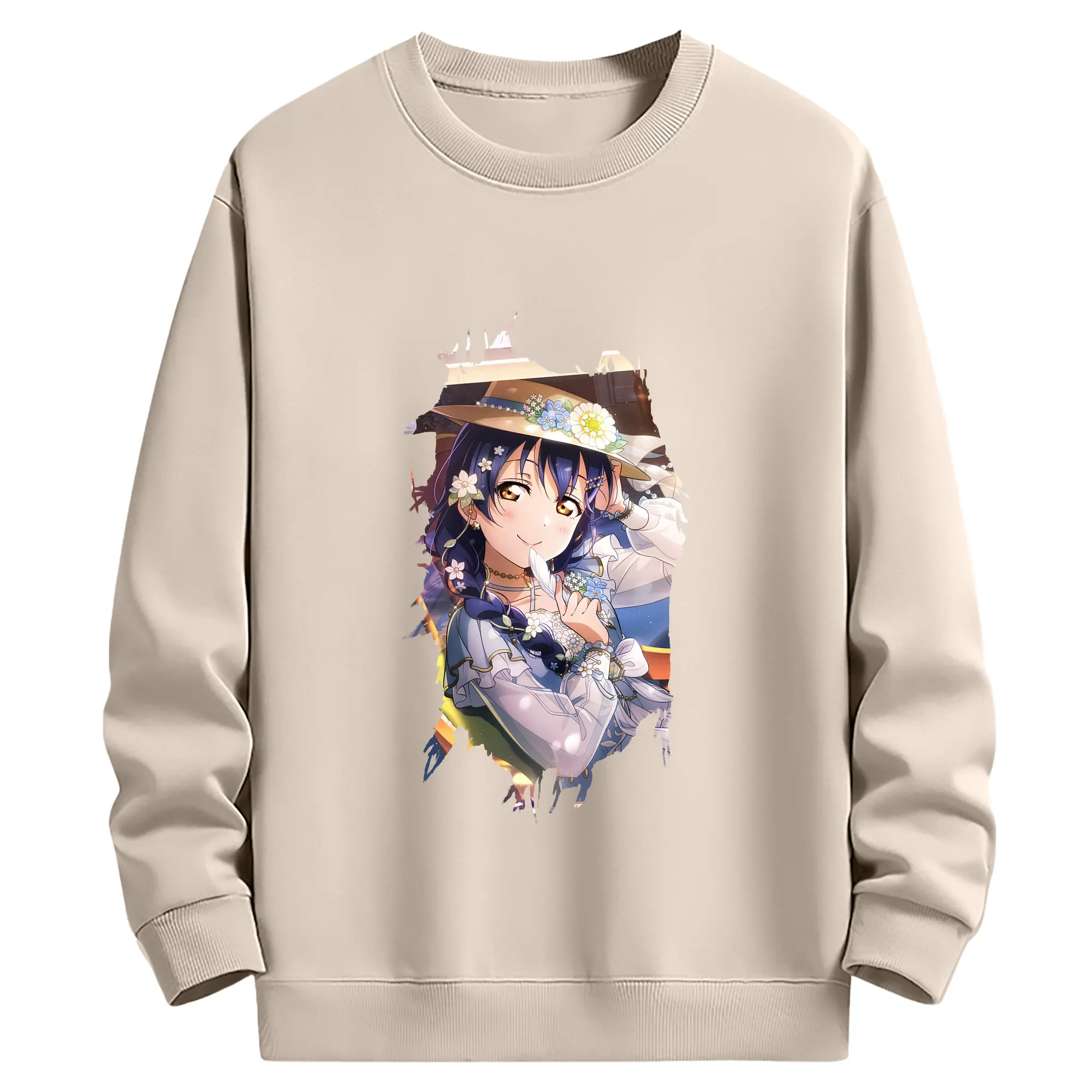 Love Live! グッズ,園田海未 - 薄手 クルーネック スウェット 裏毛260g · ポリエステル 春秋向け カジュアル 男女兼用 · トレーナー デイリー スポーツ 散歩に最適