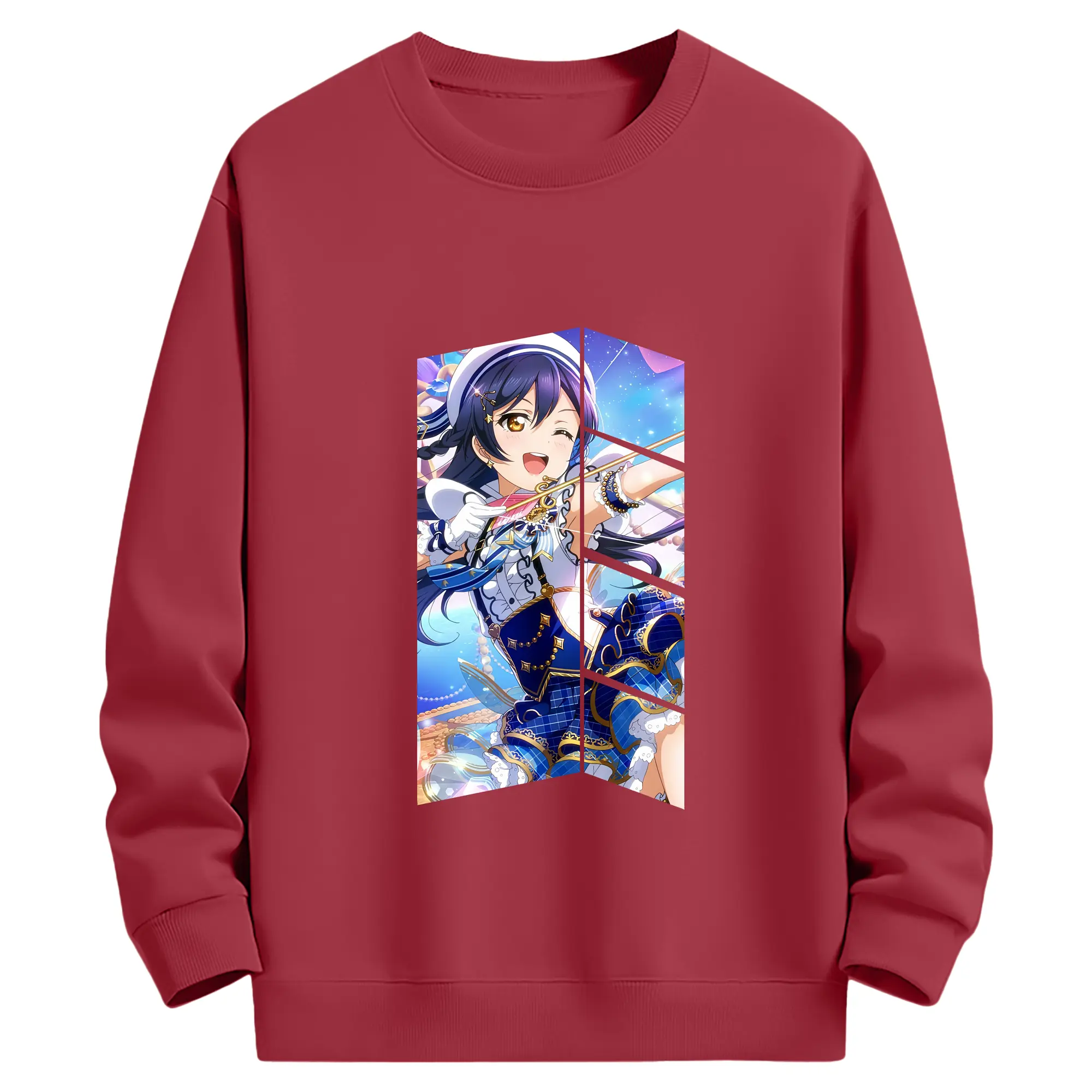 Love Live! グッズ,園田海未 - 薄手 クルーネック スウェット 裏毛260g · ポリエステル 春秋向け カジュアル 男女兼用 · トレーナー デイリー スポーツ 散歩に最適