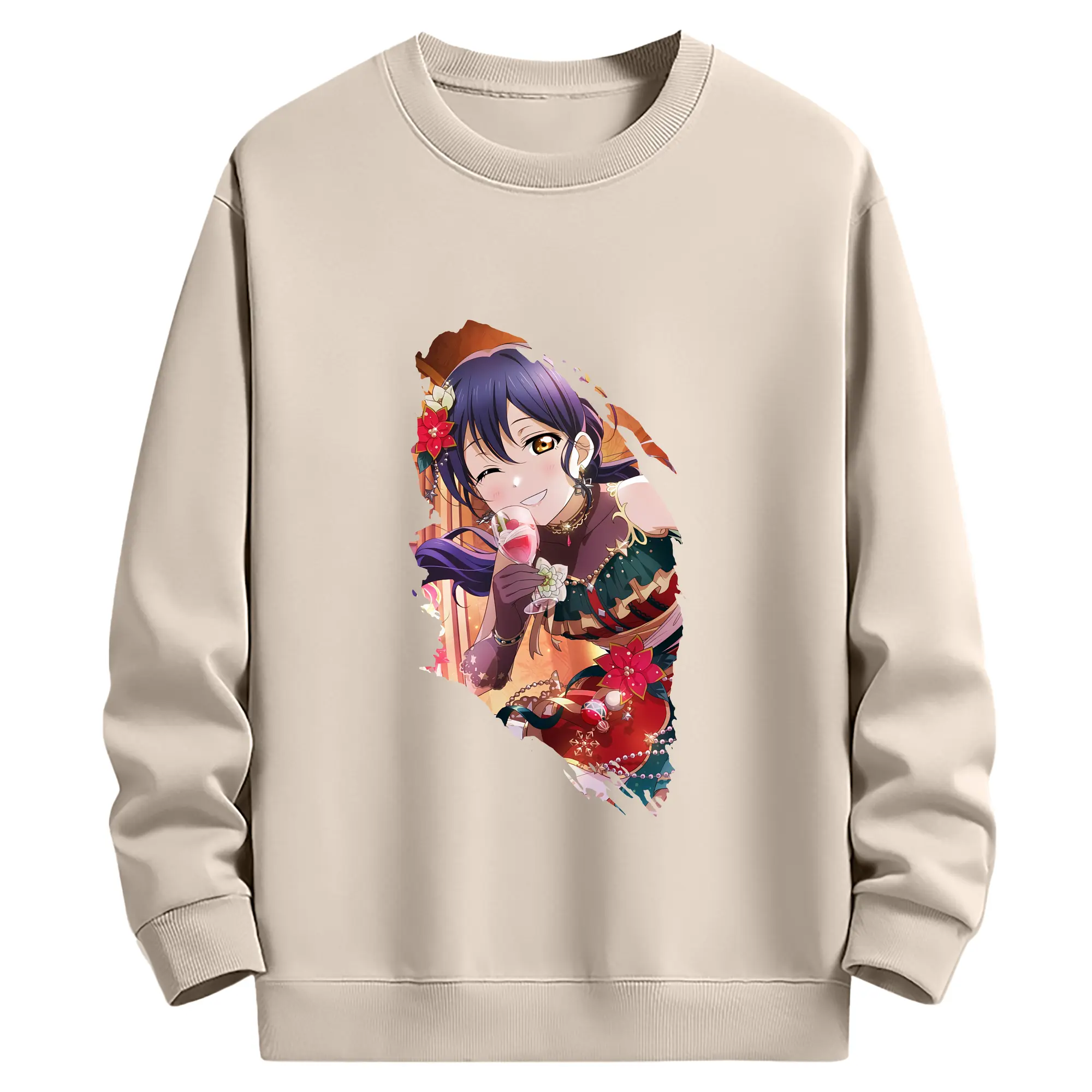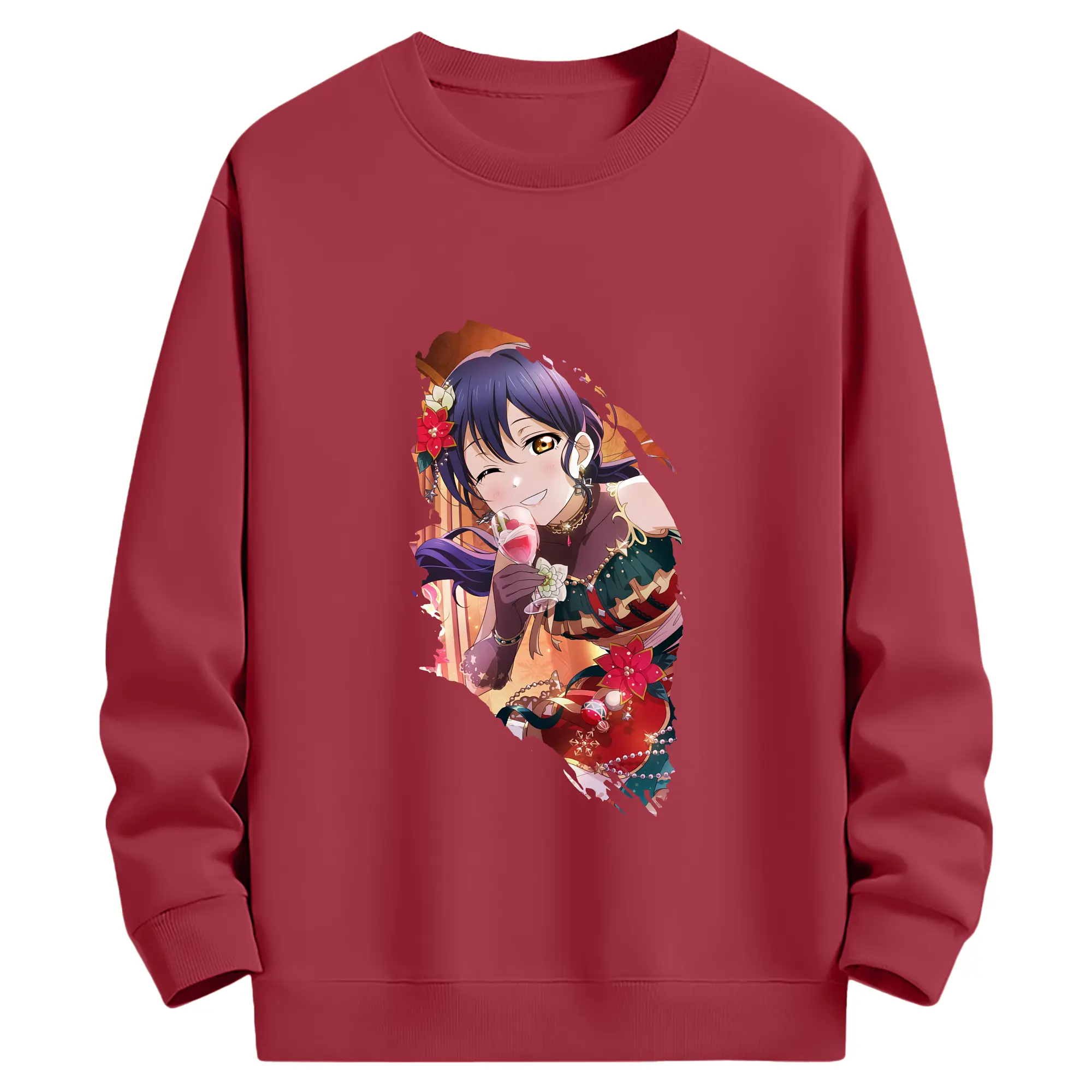 Love Live! グッズ,園田海未 - 薄手 クルーネック スウェット 裏毛260g · ポリエステル 春秋向け カジュアル 男女兼用 · トレーナー デイリー スポーツ 散歩に最適