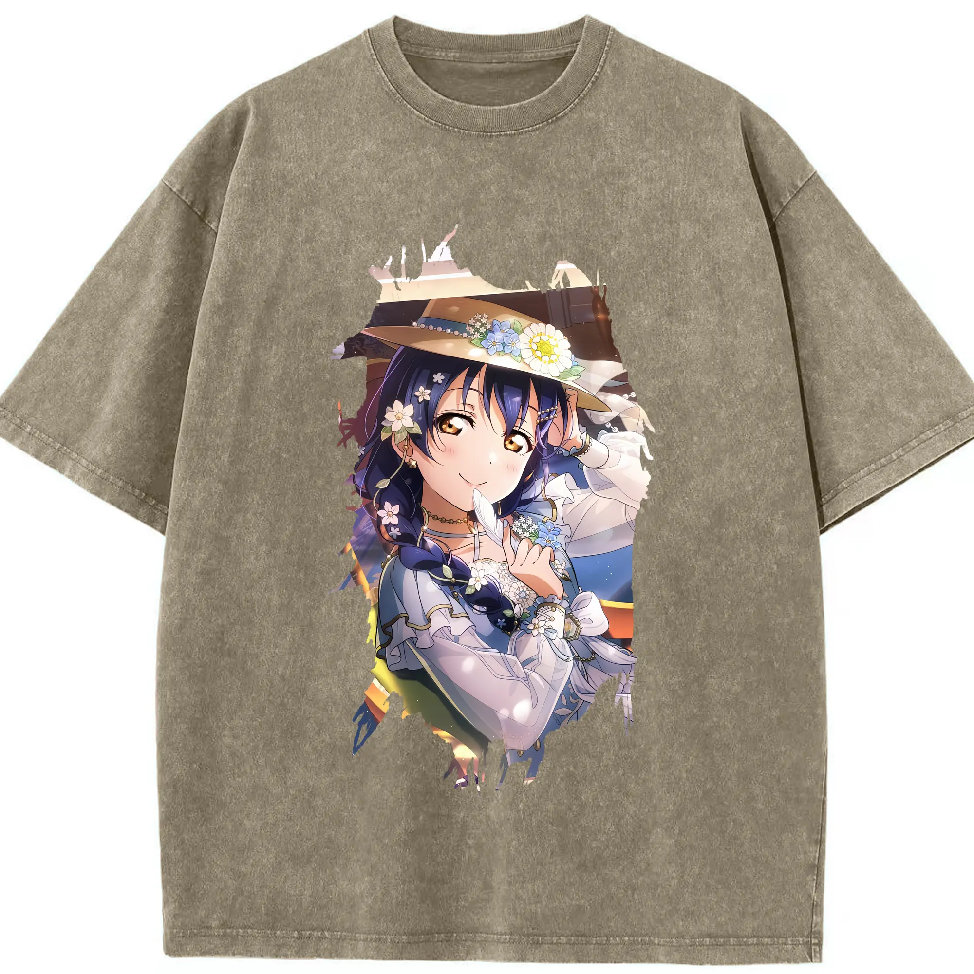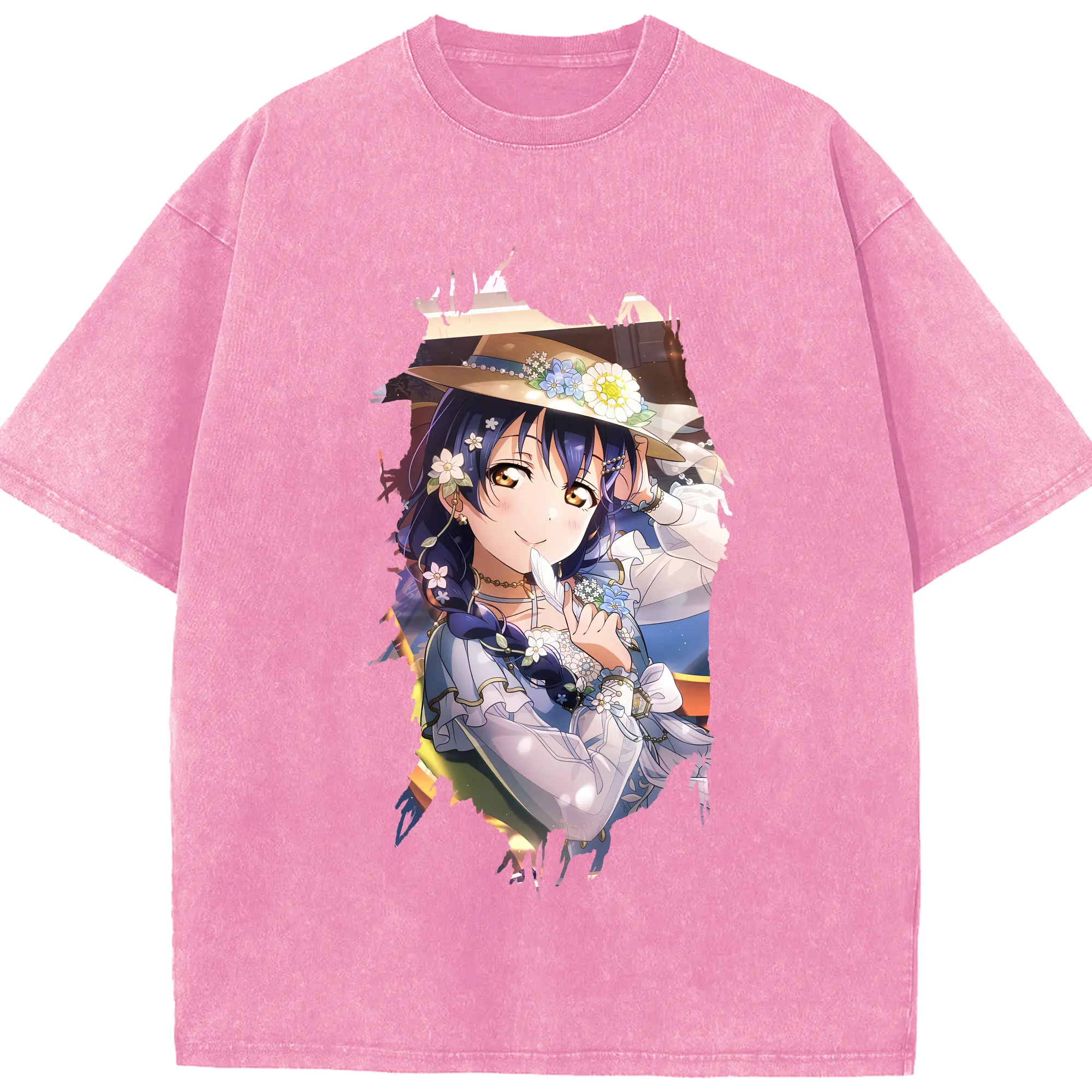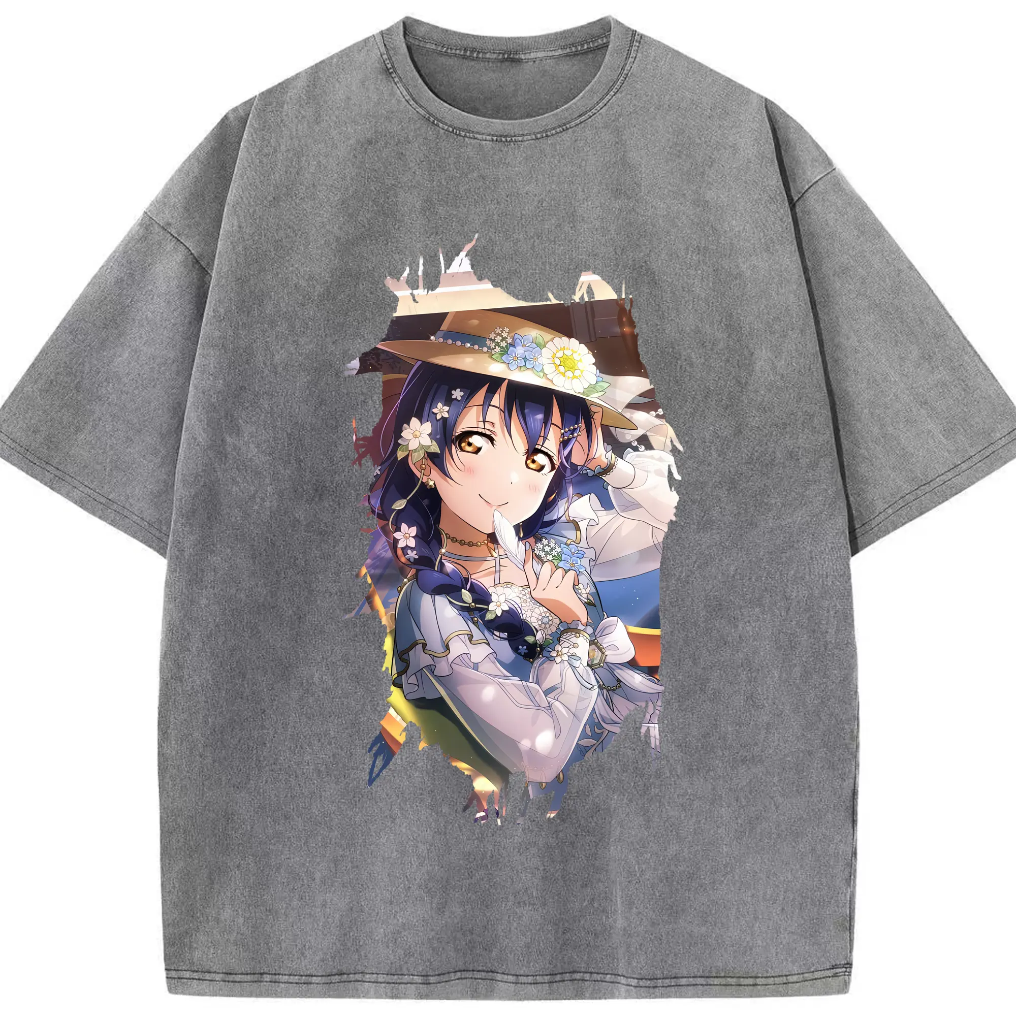 Love Live! グッズ,園田海未 - 綿100% ヴィンテージ風 半袖Tシャツ ・ 背面プリント ・ 柔らか肌触り ・ 通気性 快適 ・ スポーツ カジュアル 外出用