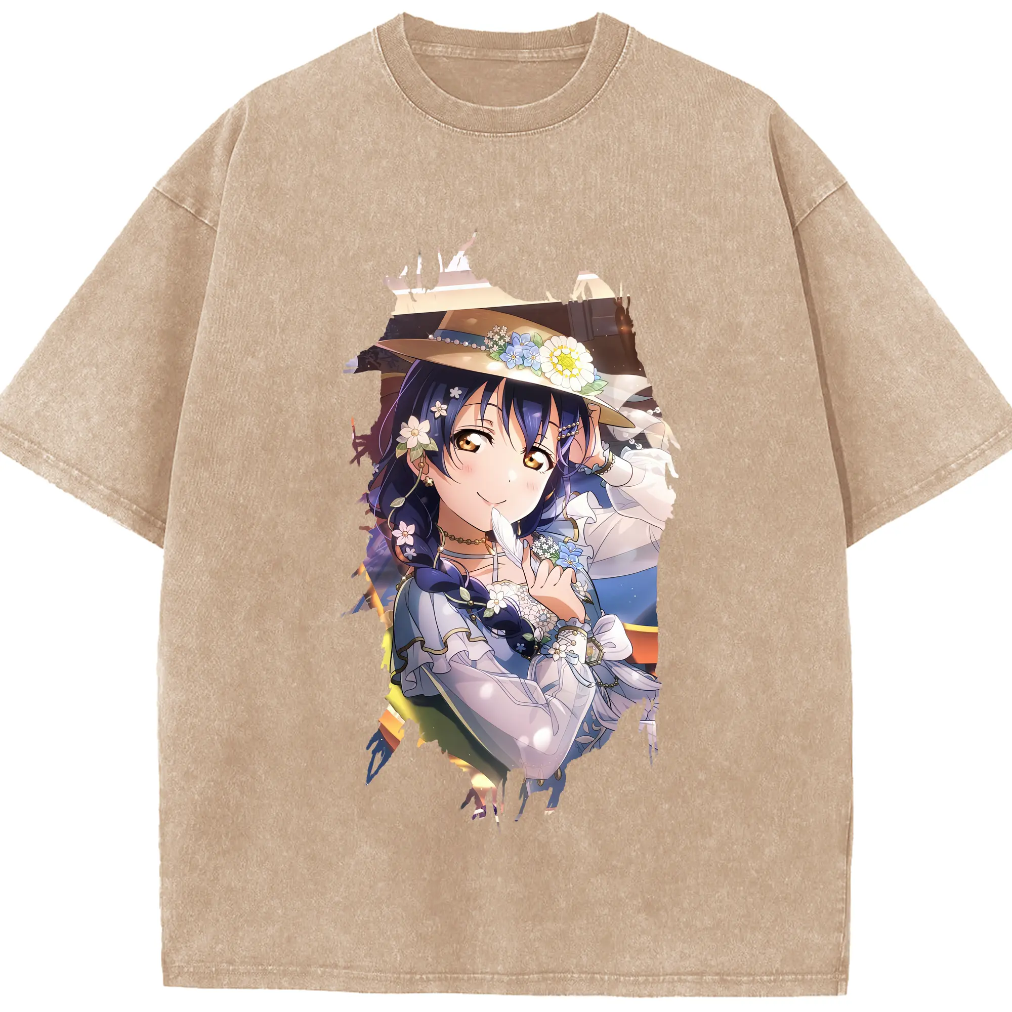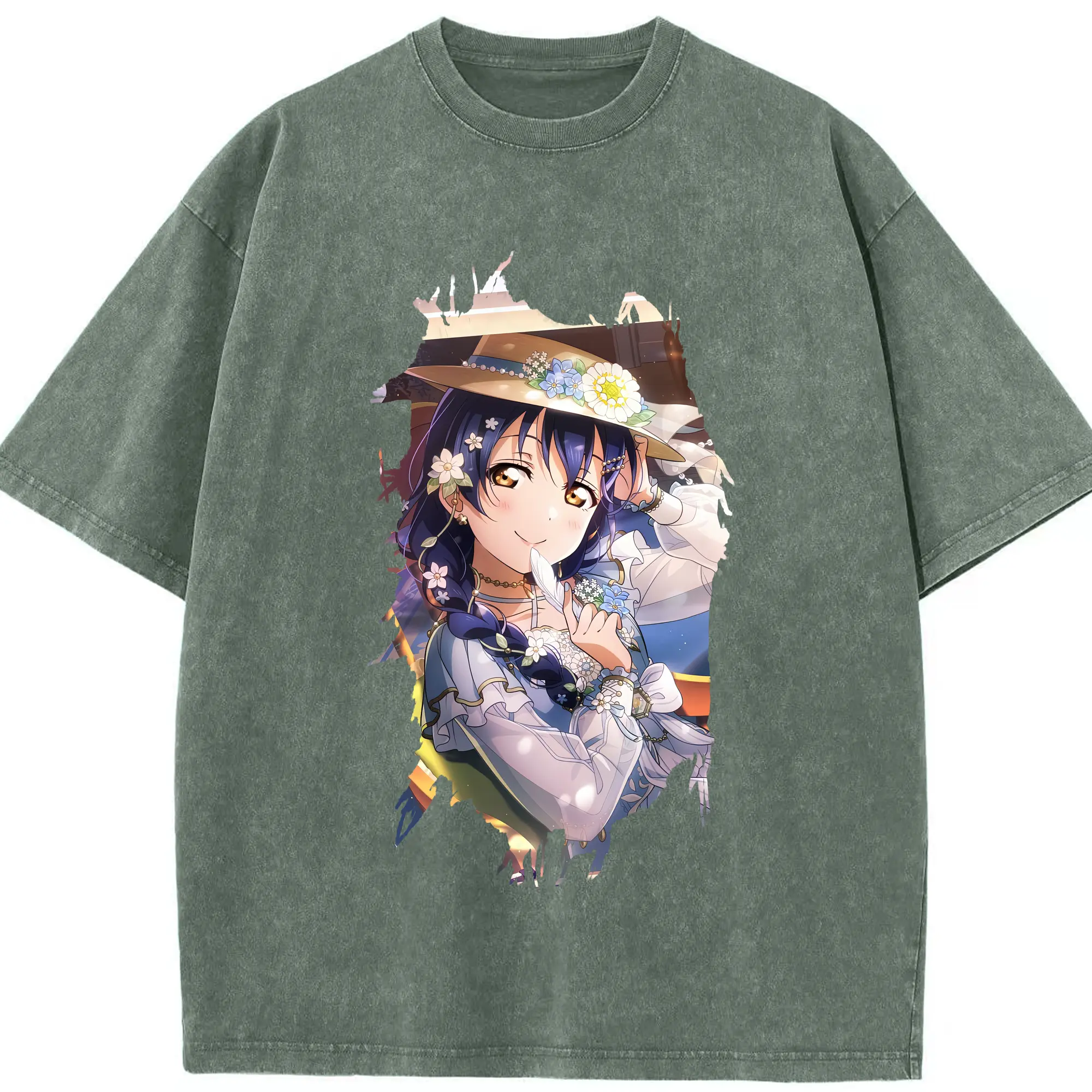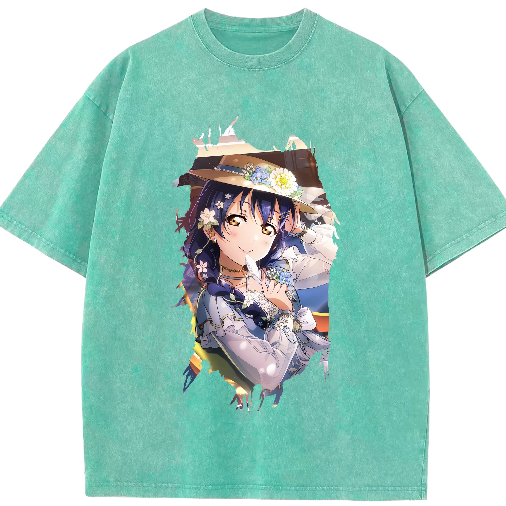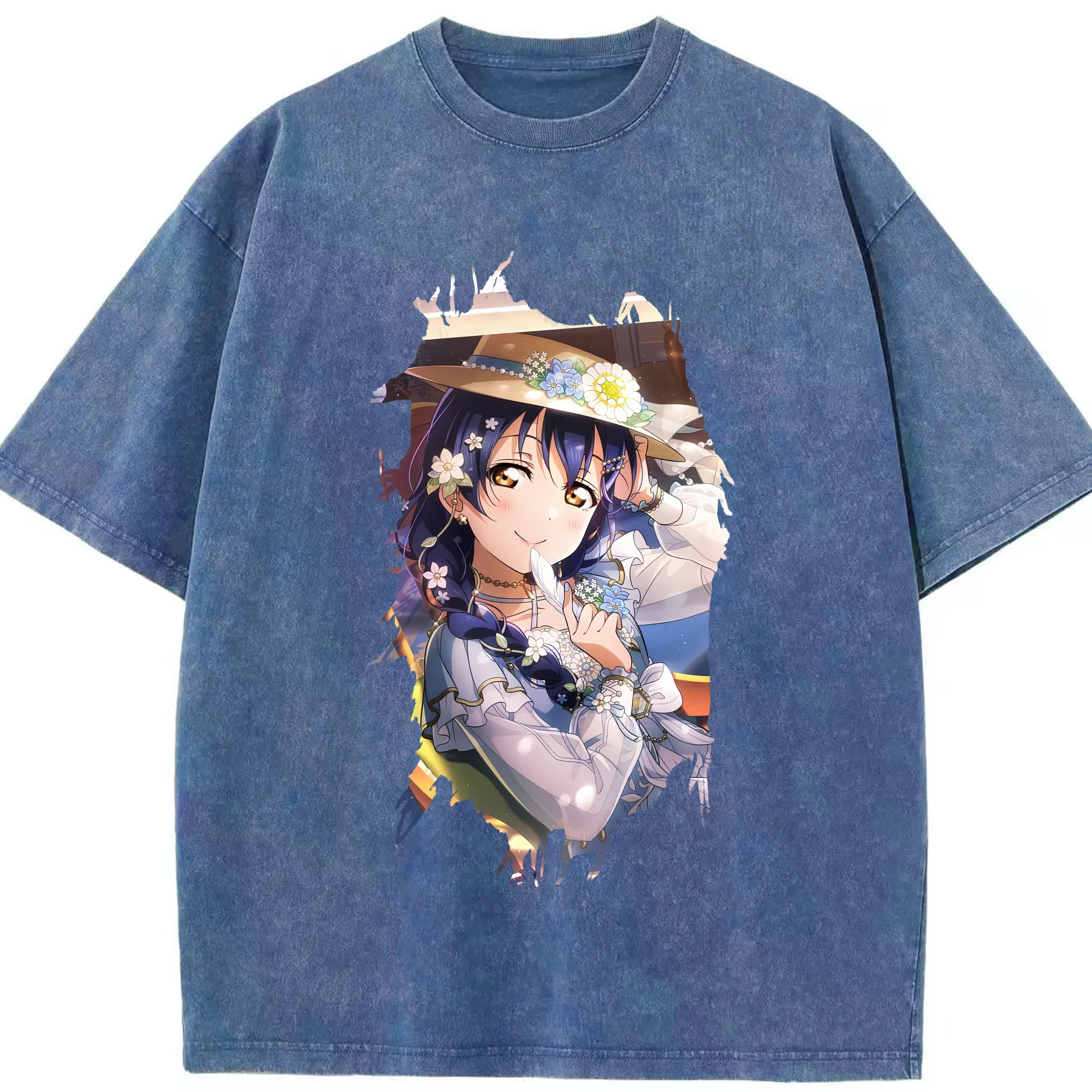 Love Live! グッズ,園田海未 - 綿100% ヴィンテージ風 半袖Tシャツ ・ 背面プリント ・ 柔らか肌触り ・ 通気性 快適 ・ スポーツ カジュアル 外出用