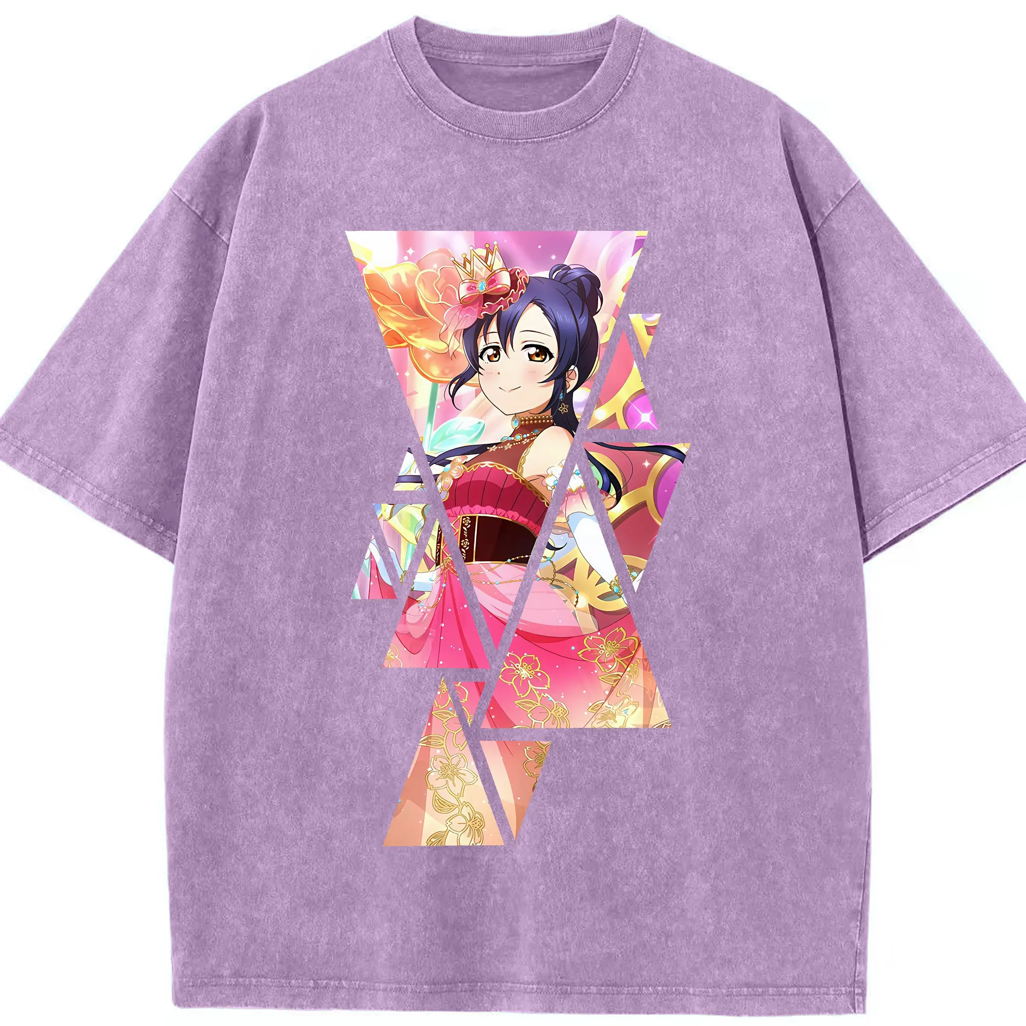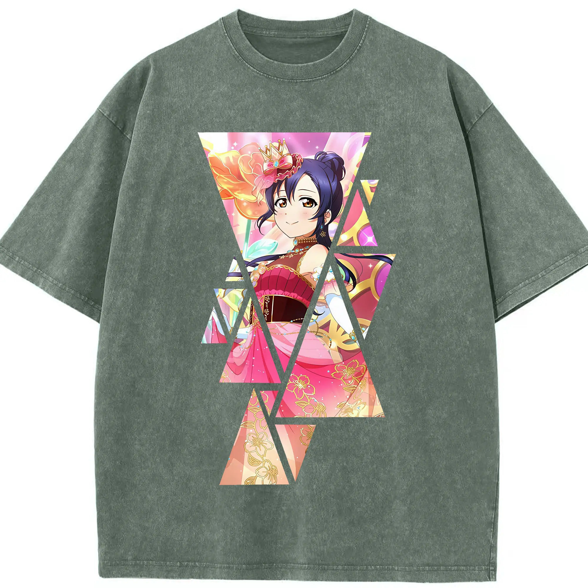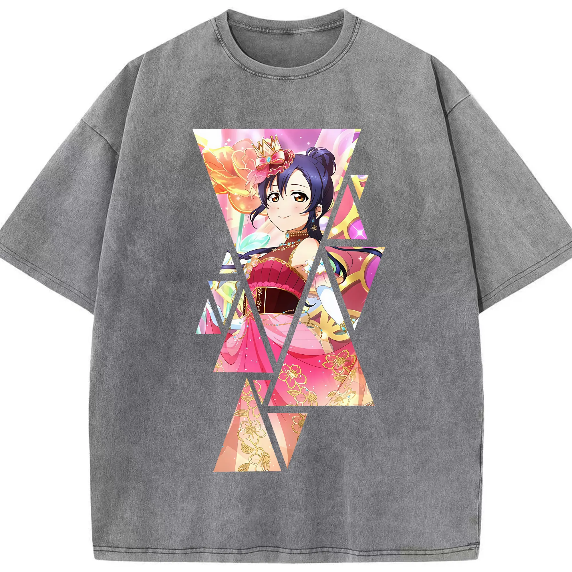 Love Live! グッズ,園田海未 - 綿100% ヴィンテージ風 半袖Tシャツ ・ 背面プリント ・ 柔らか肌触り ・ 通気性 快適 ・ スポーツ カジュアル 外出用