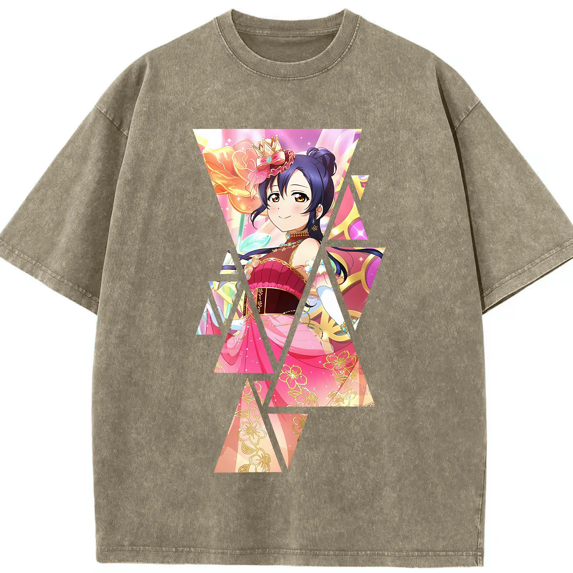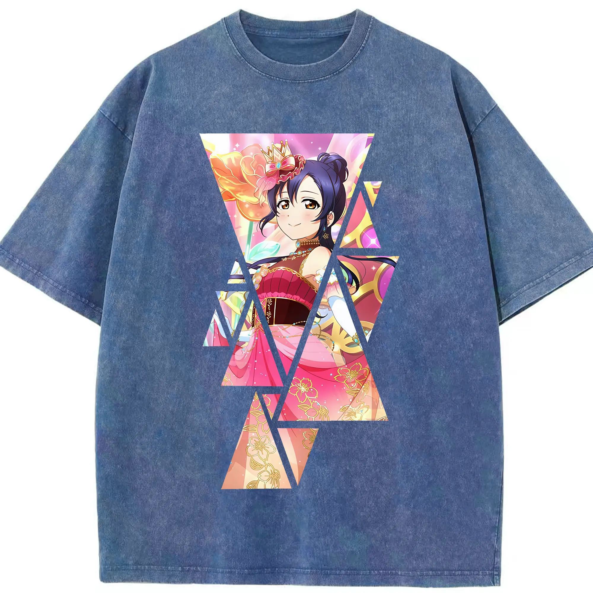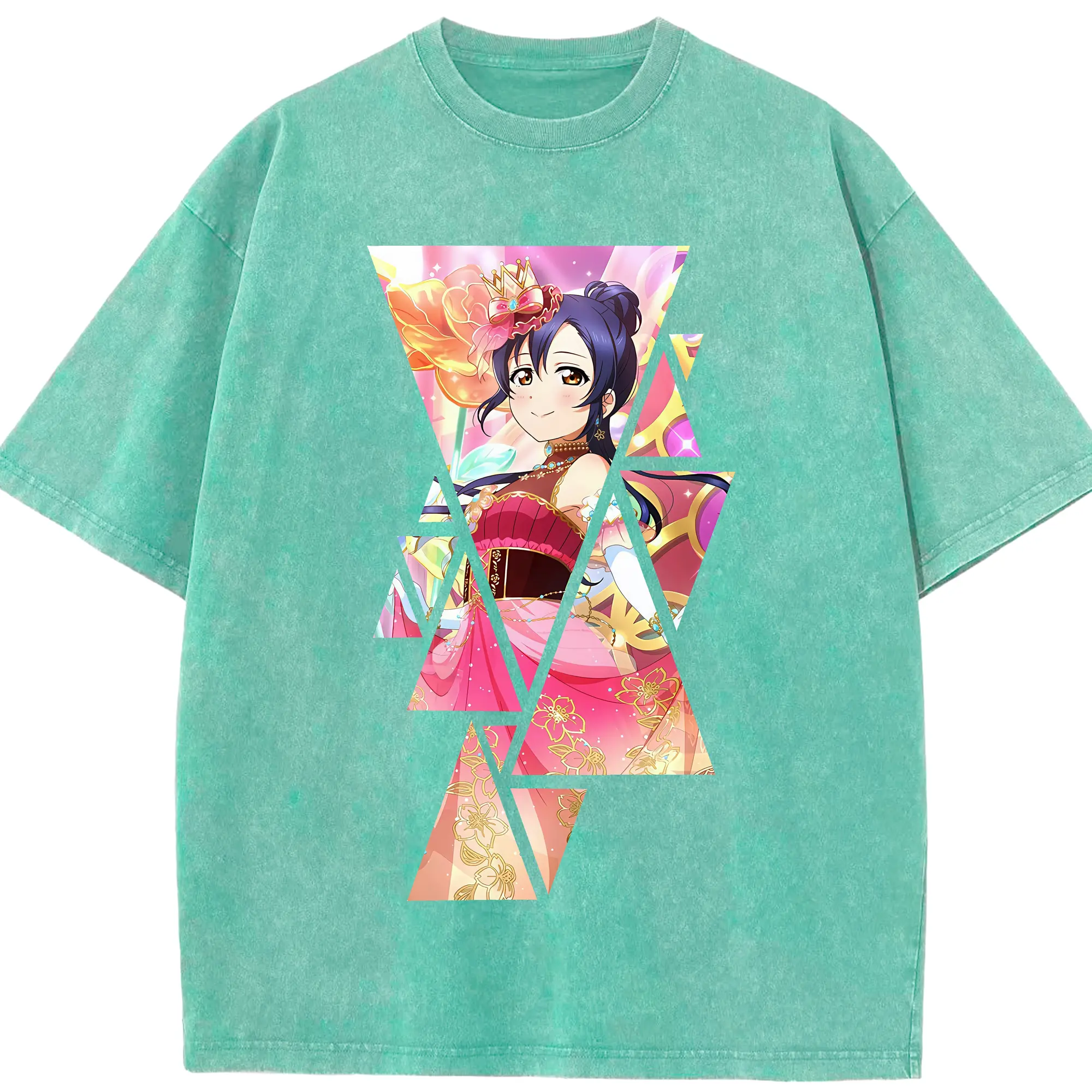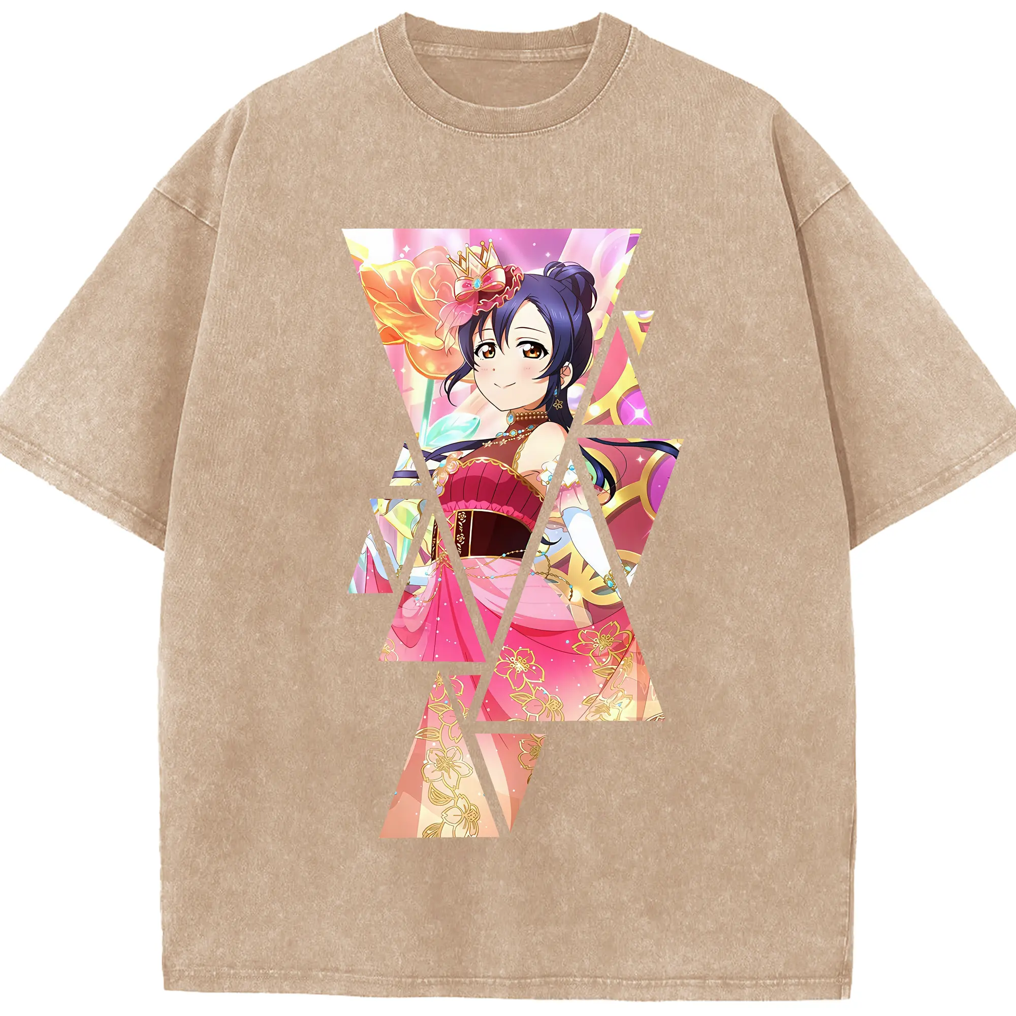 Love Live! グッズ,園田海未 - 綿100% ヴィンテージ風 半袖Tシャツ ・ 背面プリント ・ 柔らか肌触り ・ 通気性 快適 ・ スポーツ カジュアル 外出用