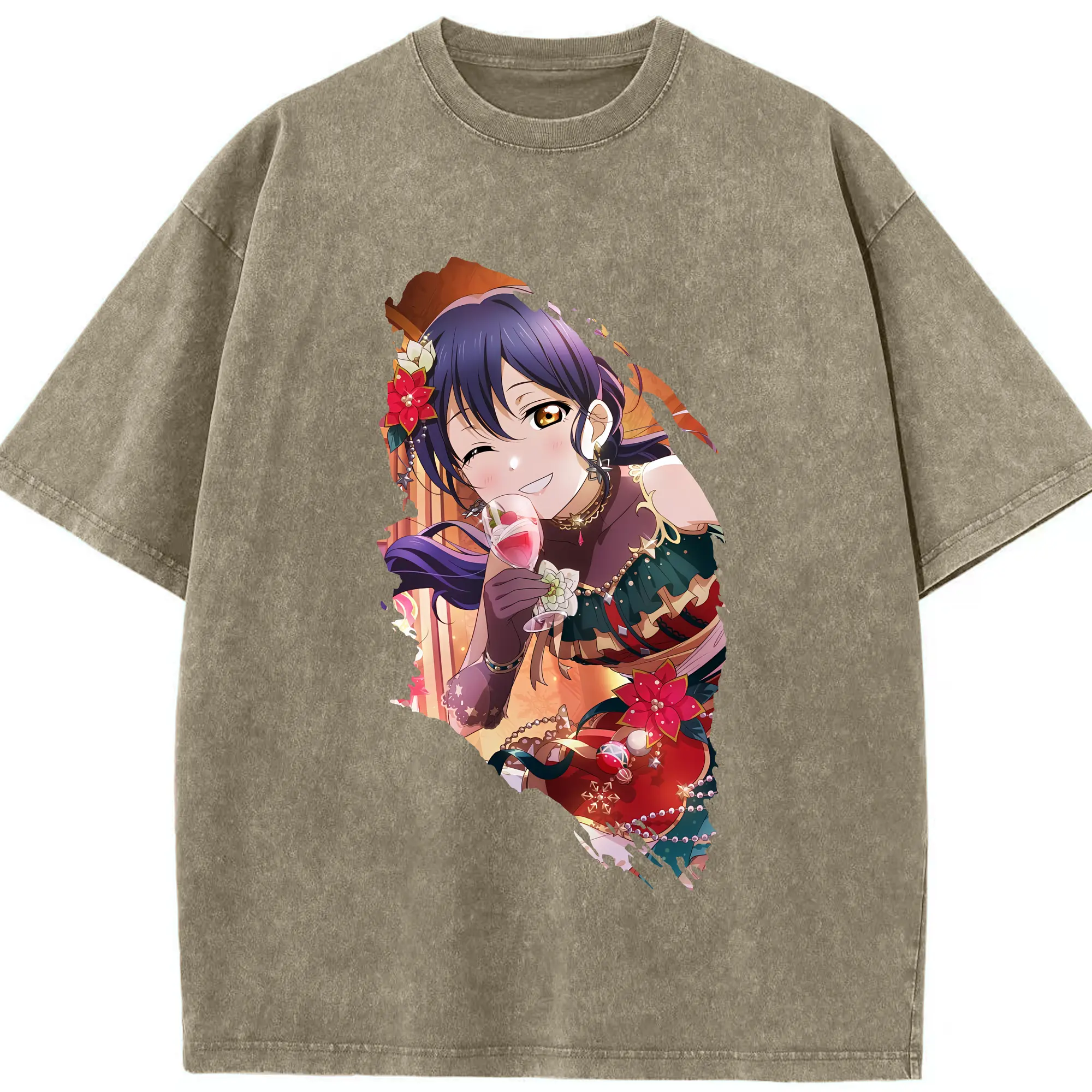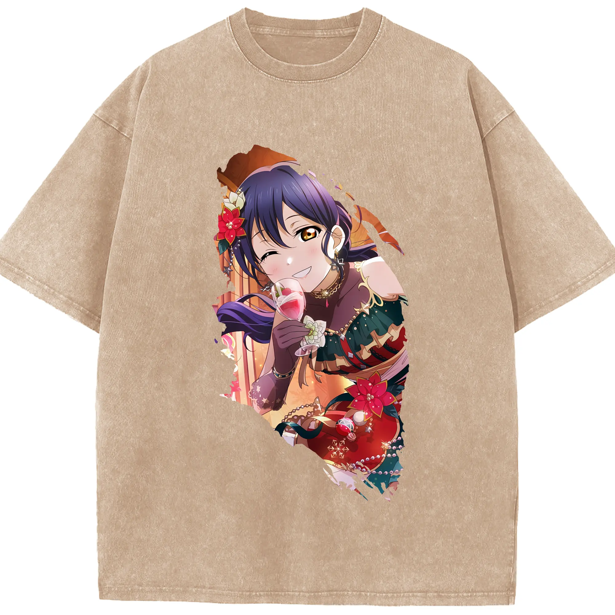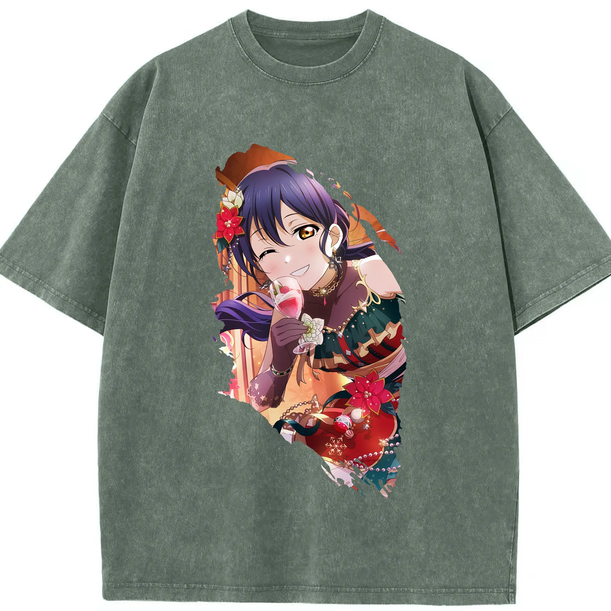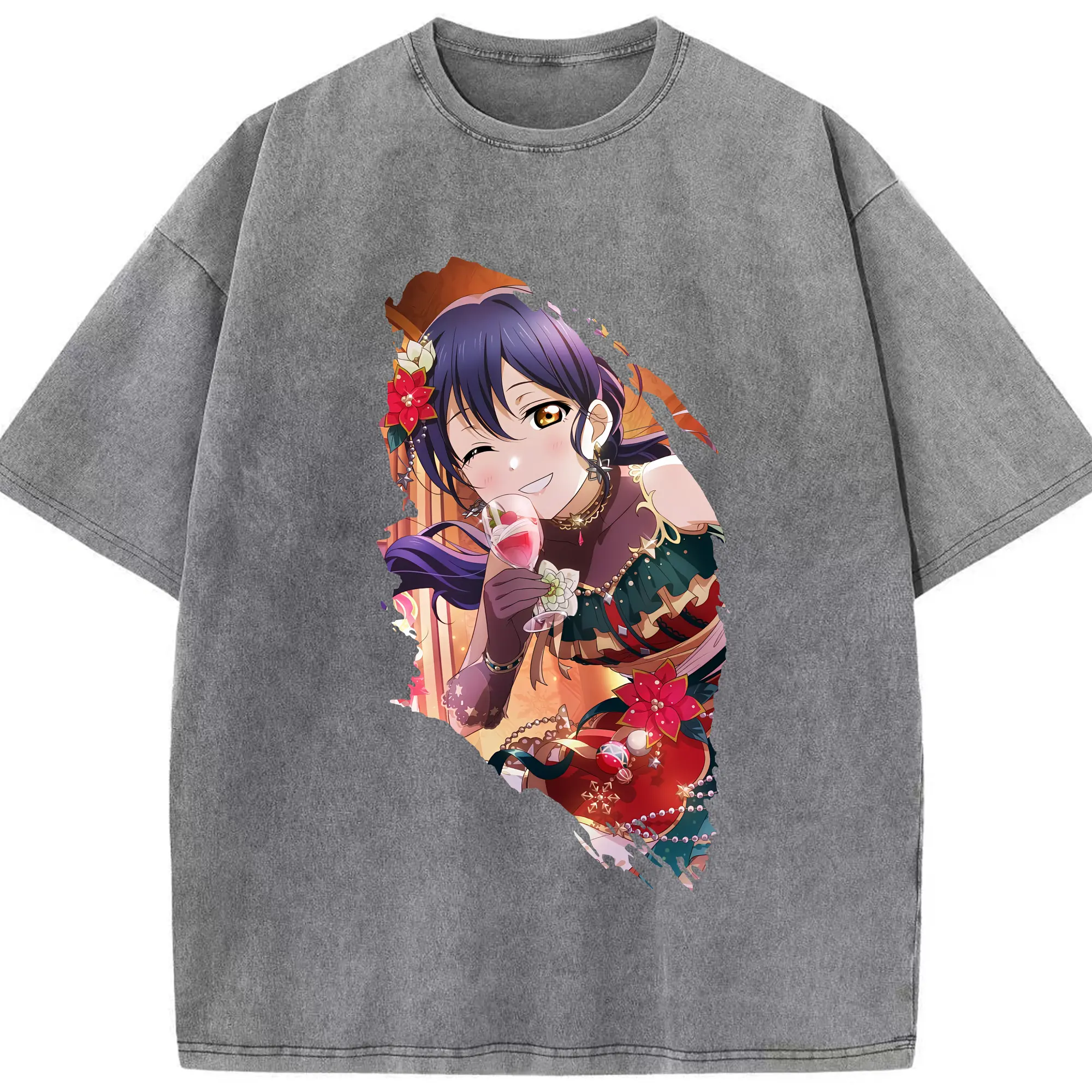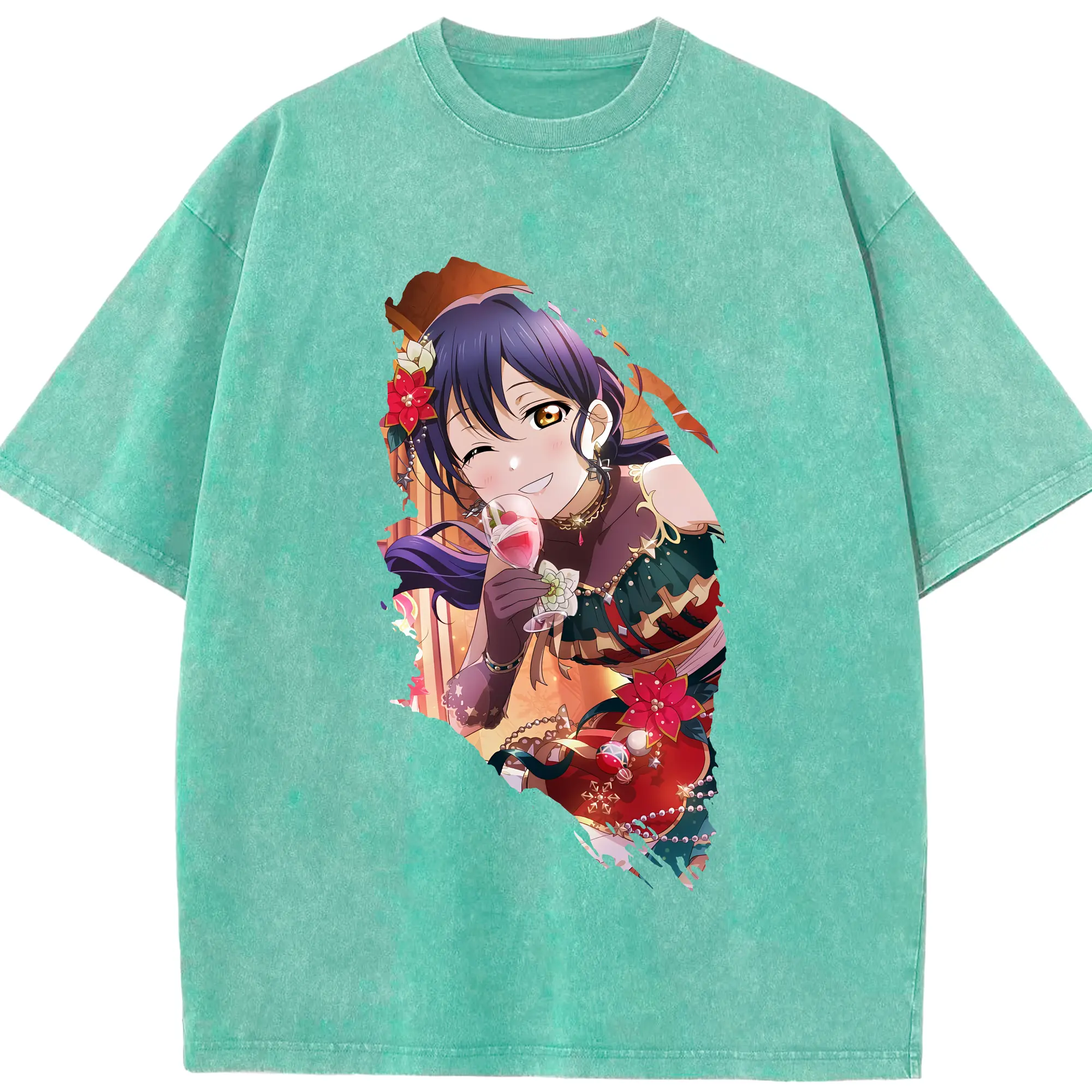 Love Live! グッズ,園田海未 - 綿100% ヴィンテージ風 半袖Tシャツ ・ 背面プリント ・ 柔らか肌触り ・ 通気性 快適 ・ スポーツ カジュアル 外出用