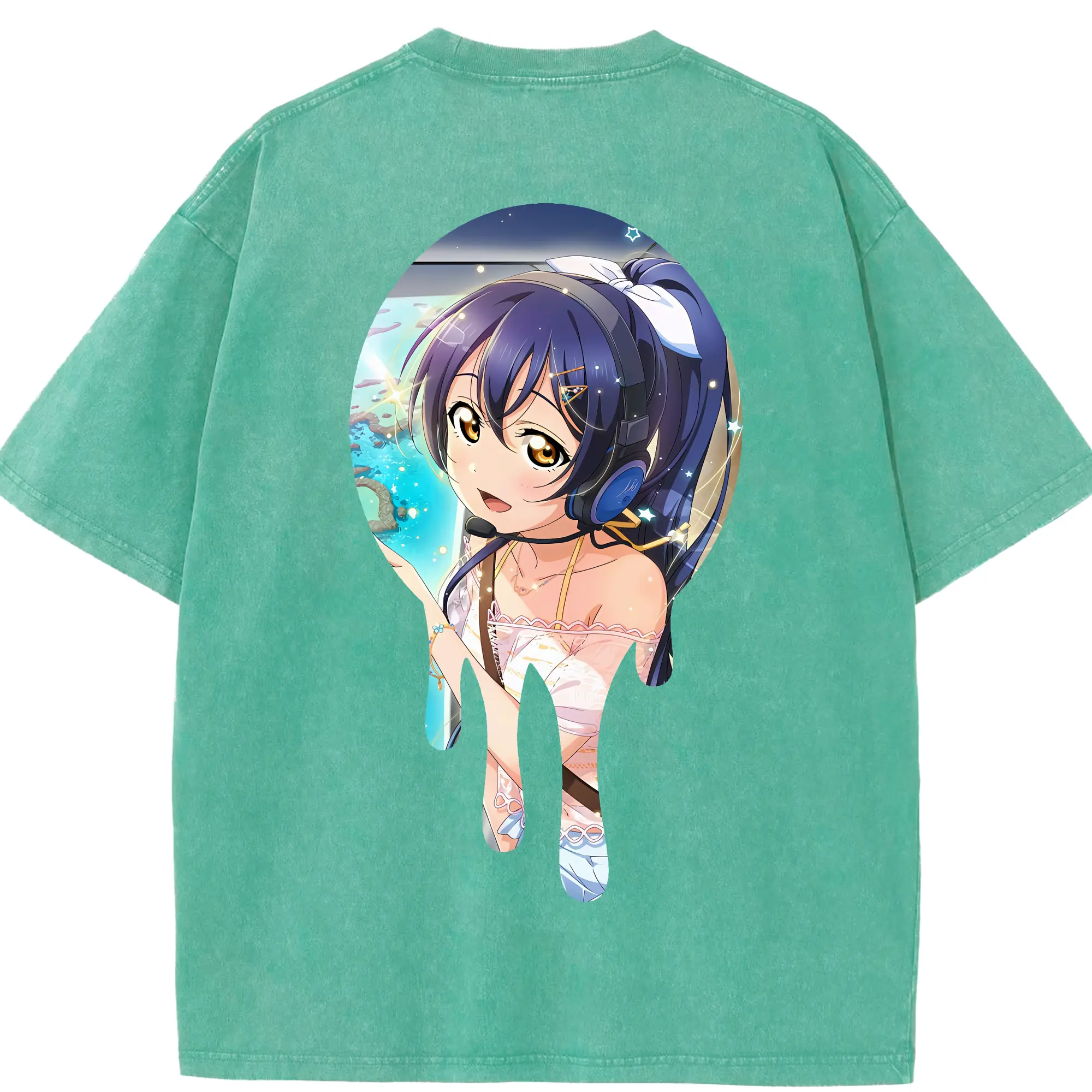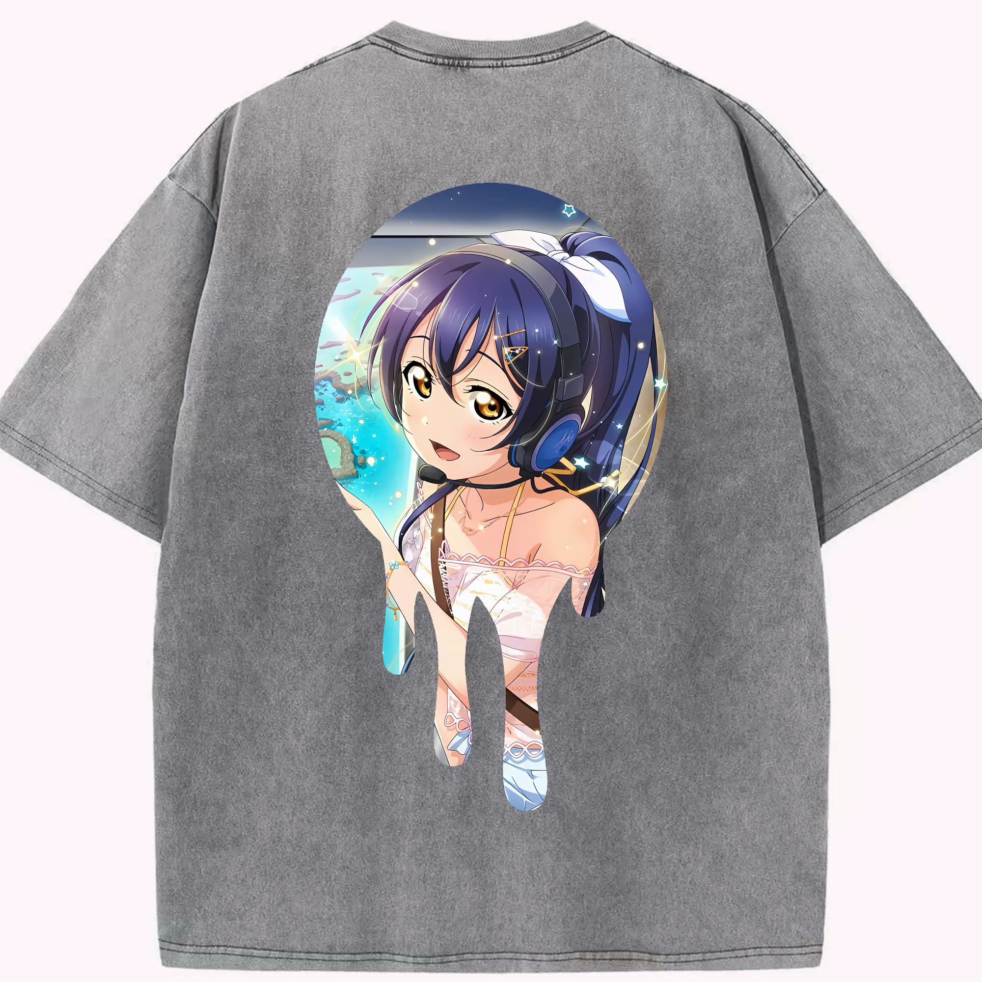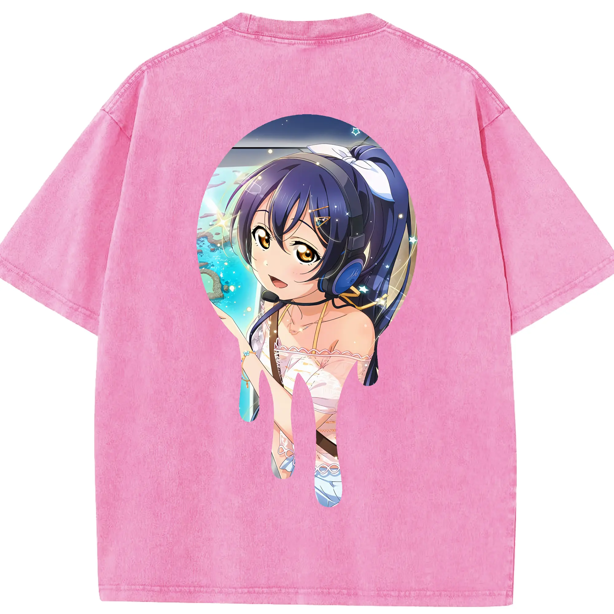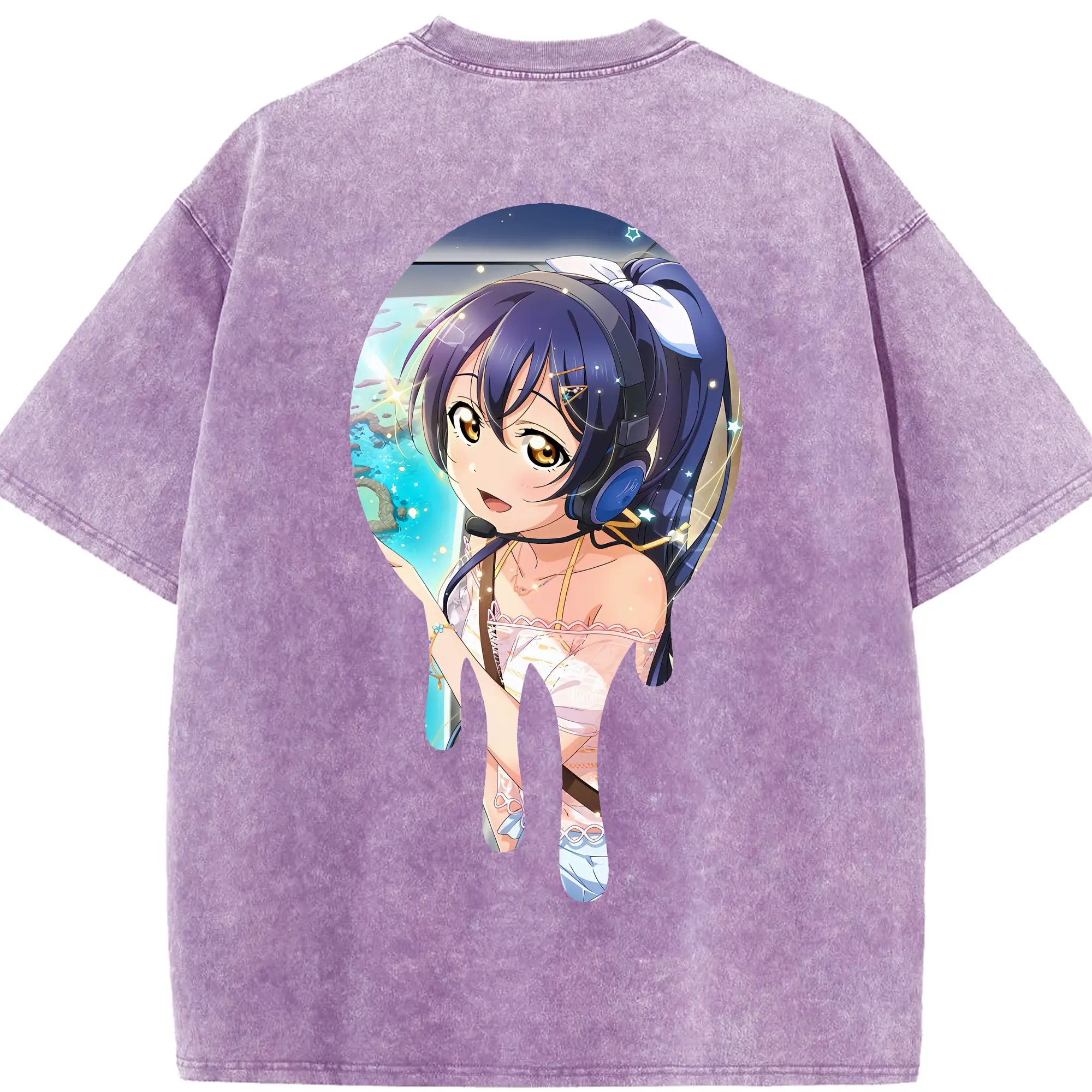 Love Live! グッズ,園田海未 - 綿100% ヴィンテージ風 半袖Tシャツ ・ フロントプリント ・ 柔らか肌触り ・ 通気性 快適 ・ スポーツ カジュアル 外出用