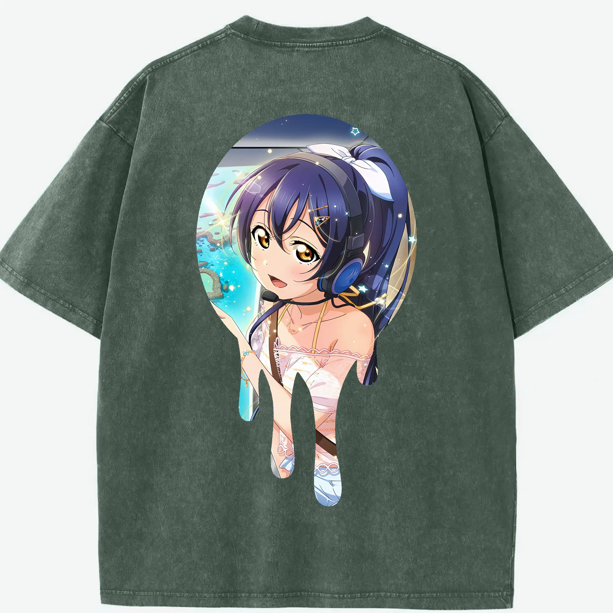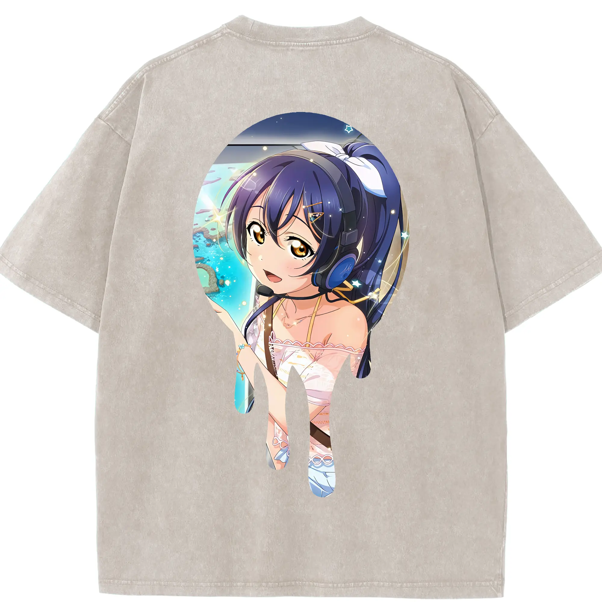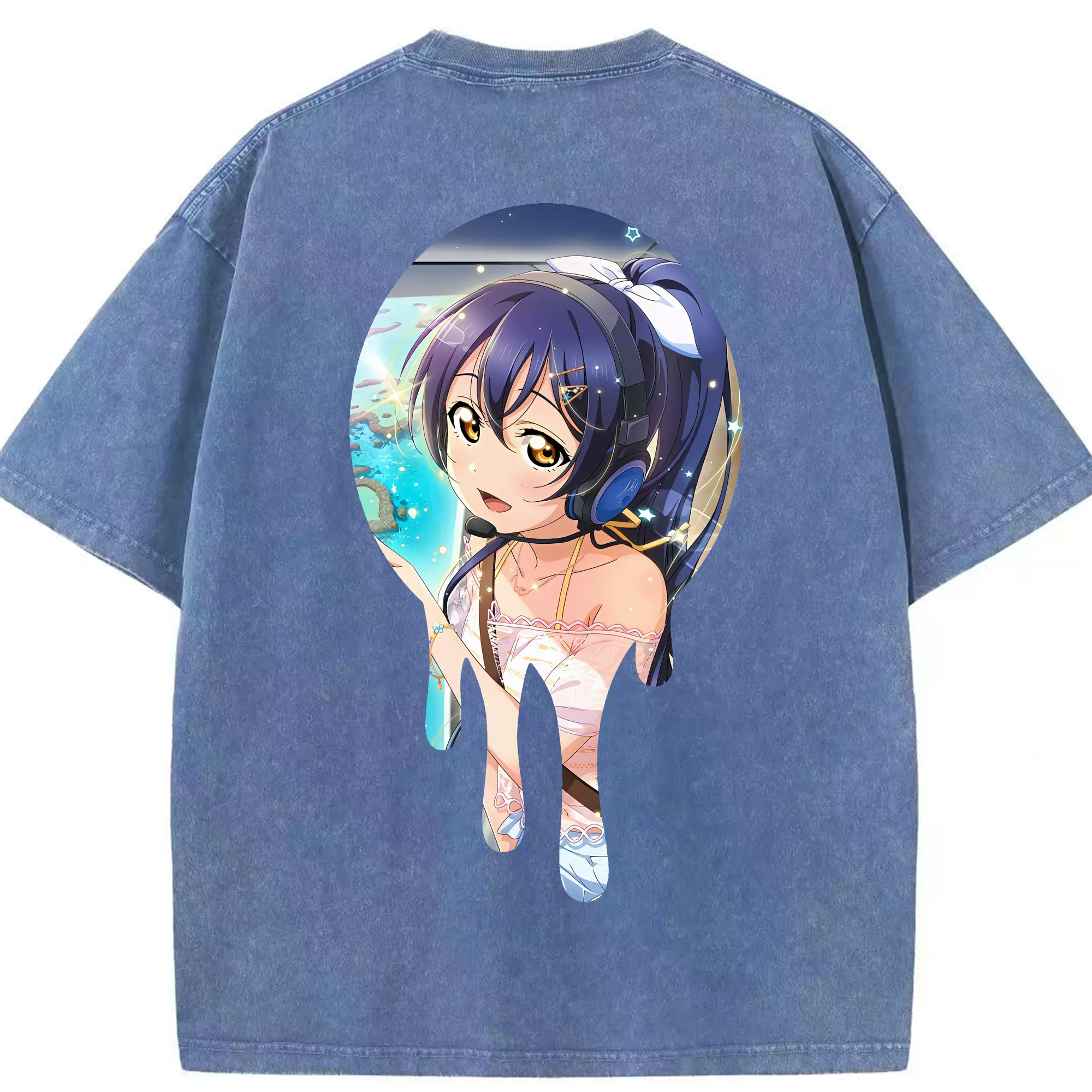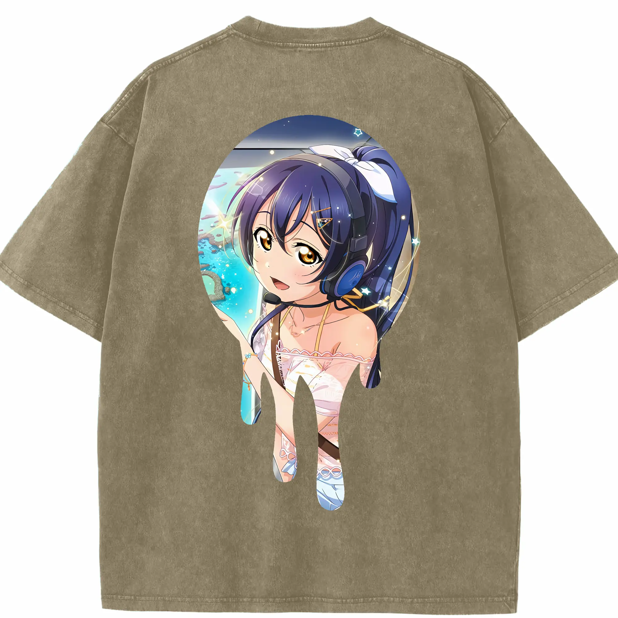 Love Live! グッズ,園田海未 - 綿100% ヴィンテージ風 半袖Tシャツ ・ フロントプリント ・ 柔らか肌触り ・ 通気性 快適 ・ スポーツ カジュアル 外出用