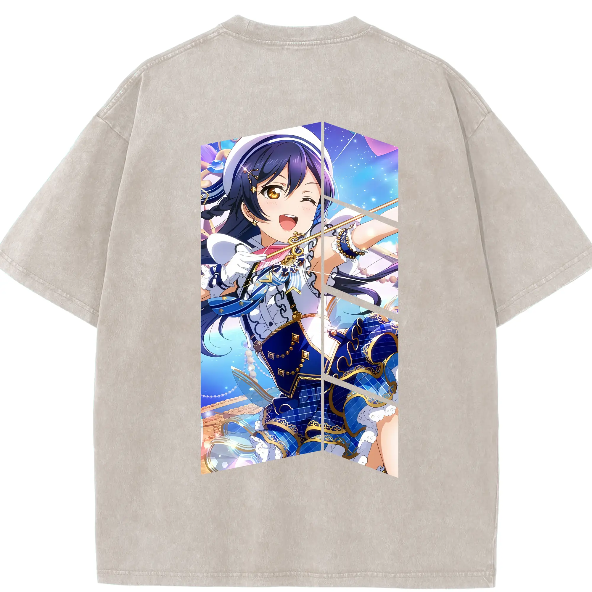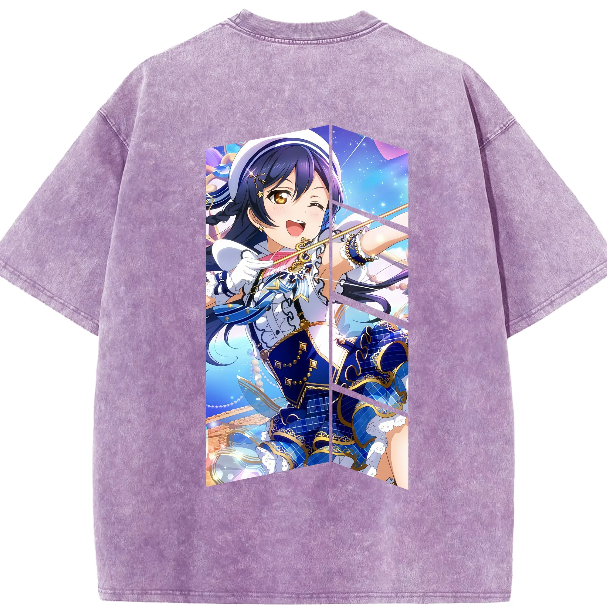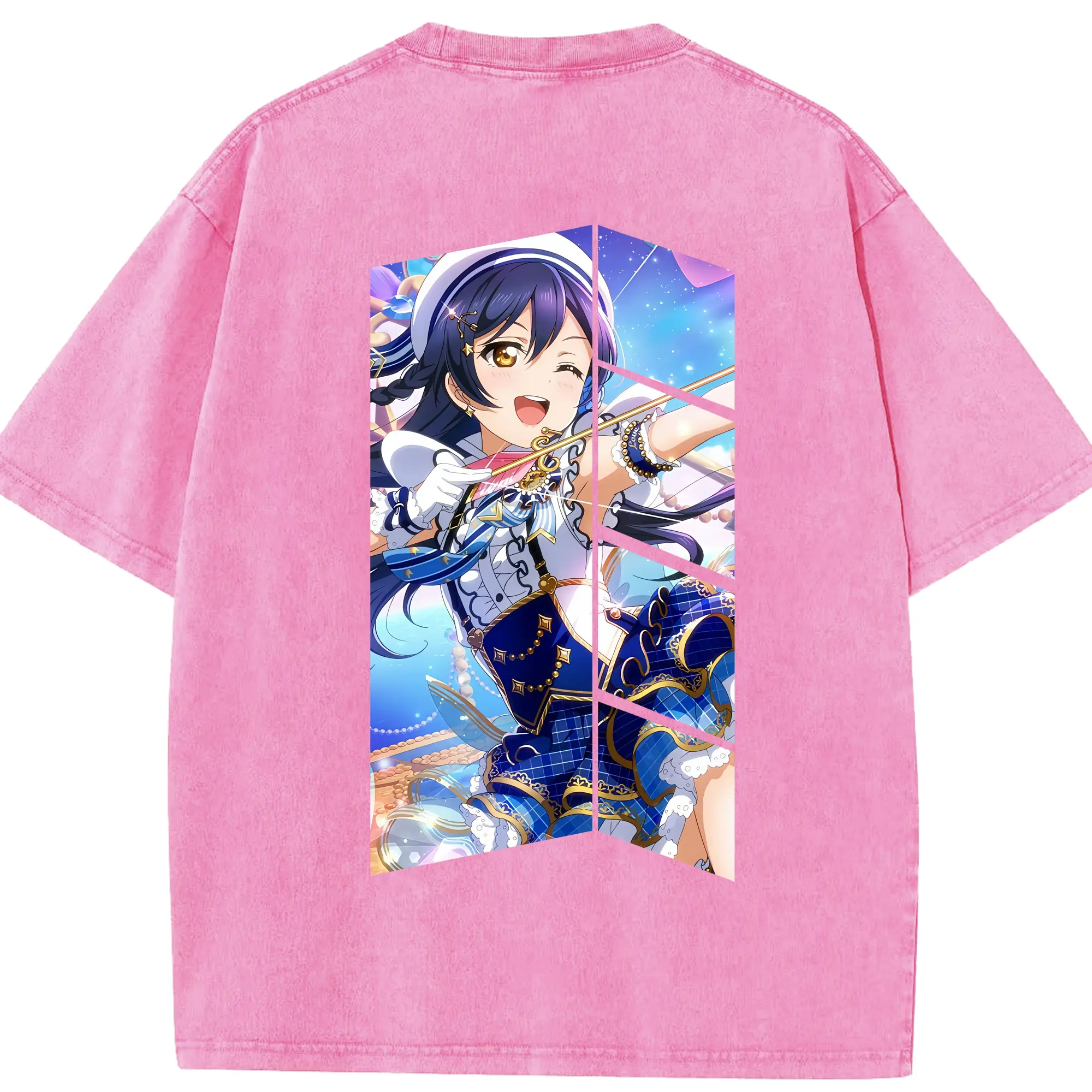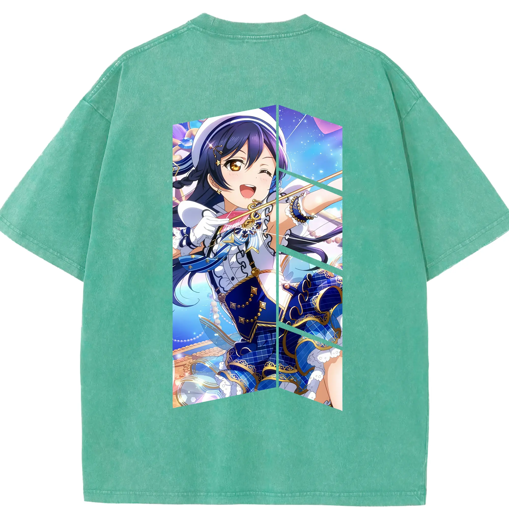 Love Live! グッズ,園田海未 - 綿100% ヴィンテージ風 半袖Tシャツ ・ フロントプリント ・ 柔らか肌触り ・ 通気性 快適 ・ スポーツ カジュアル 外出用