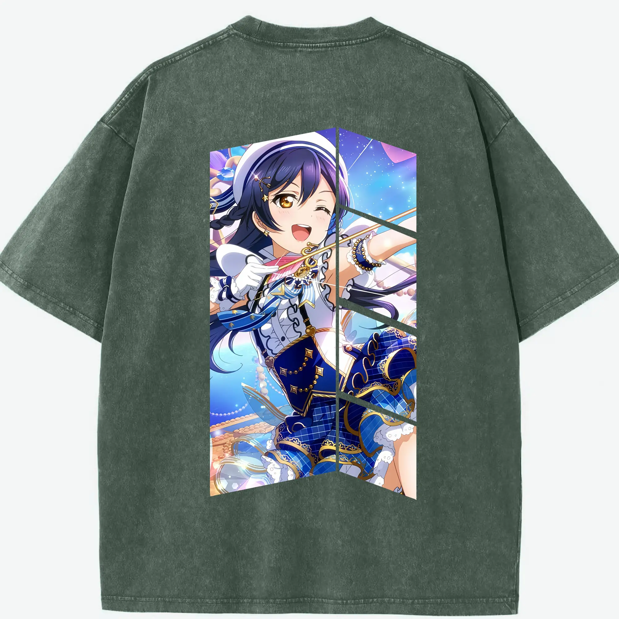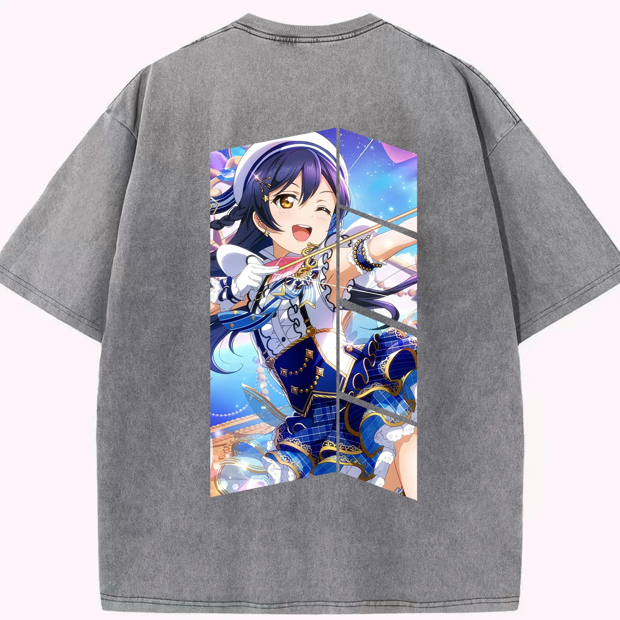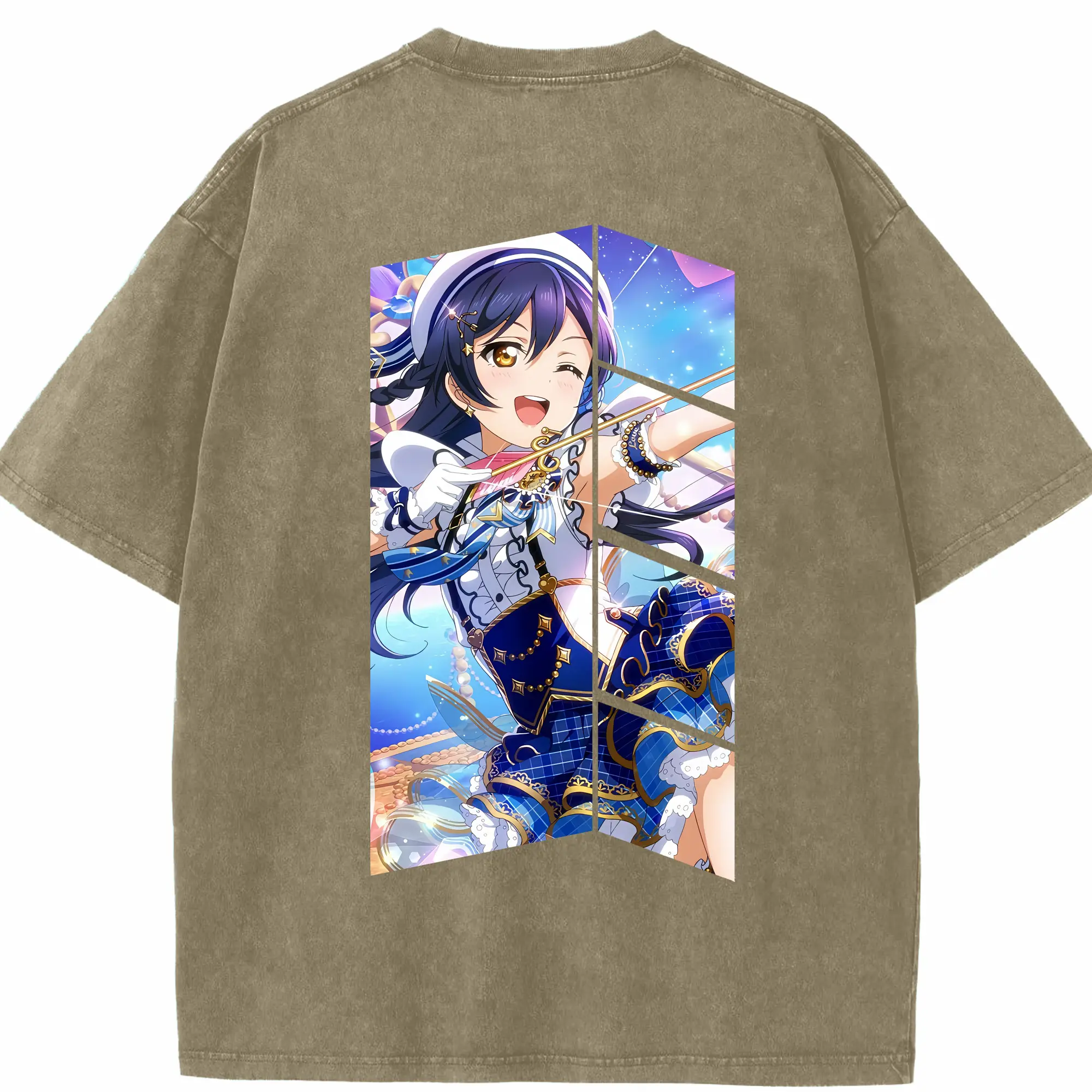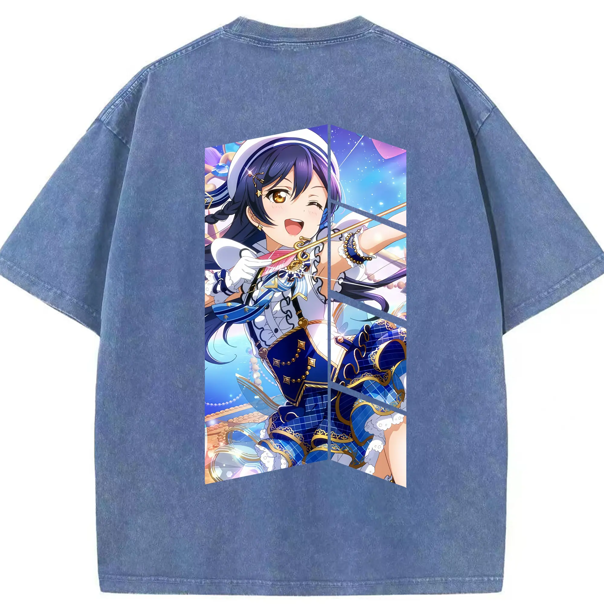 Love Live! グッズ,園田海未 - 綿100% ヴィンテージ風 半袖Tシャツ ・ フロントプリント ・ 柔らか肌触り ・ 通気性 快適 ・ スポーツ カジュアル 外出用