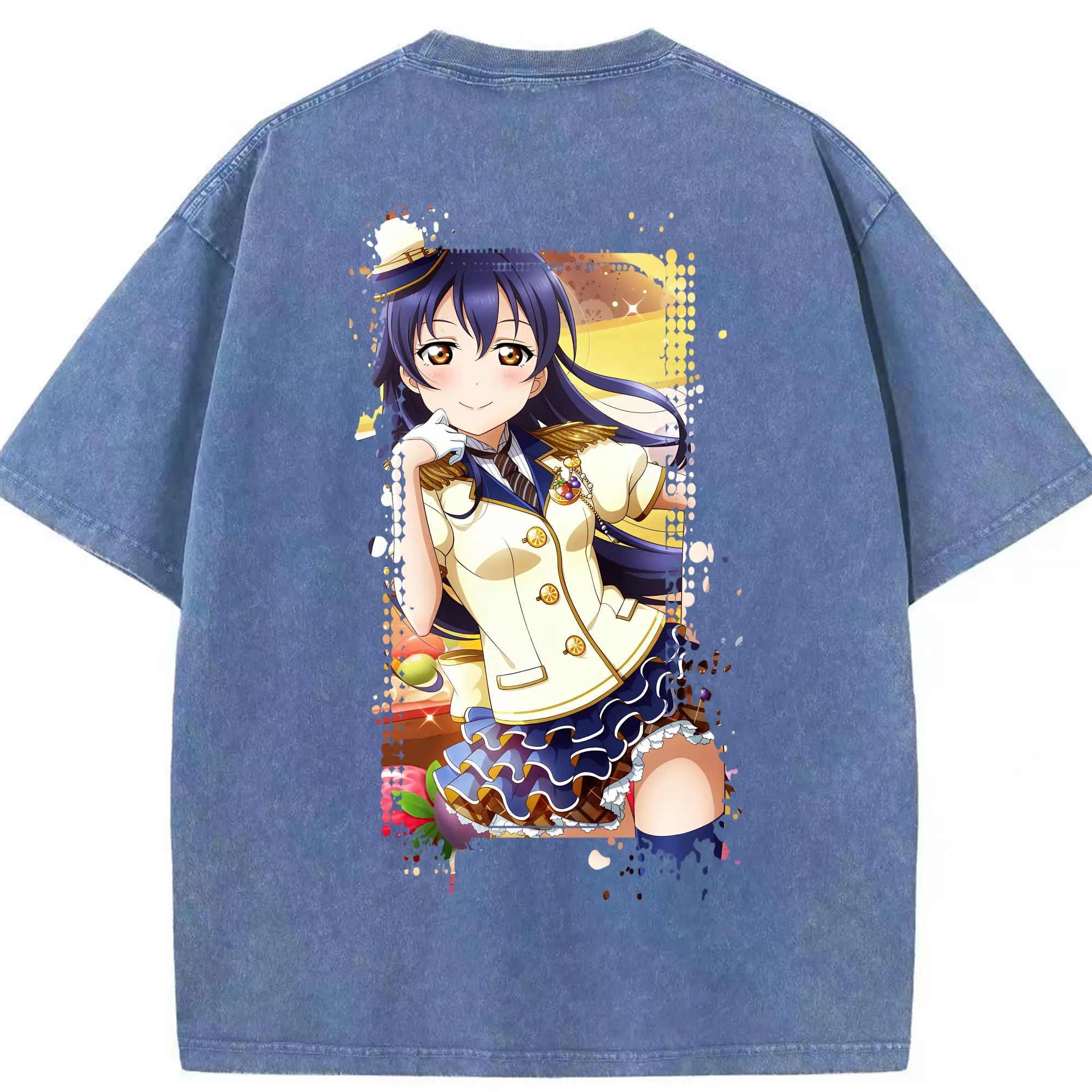 Love Live! グッズ,園田海未 - 綿100% ヴィンテージ風 半袖Tシャツ ・ フロントプリント ・ 柔らか肌触り ・ 通気性 快適 ・ スポーツ カジュアル 外出用