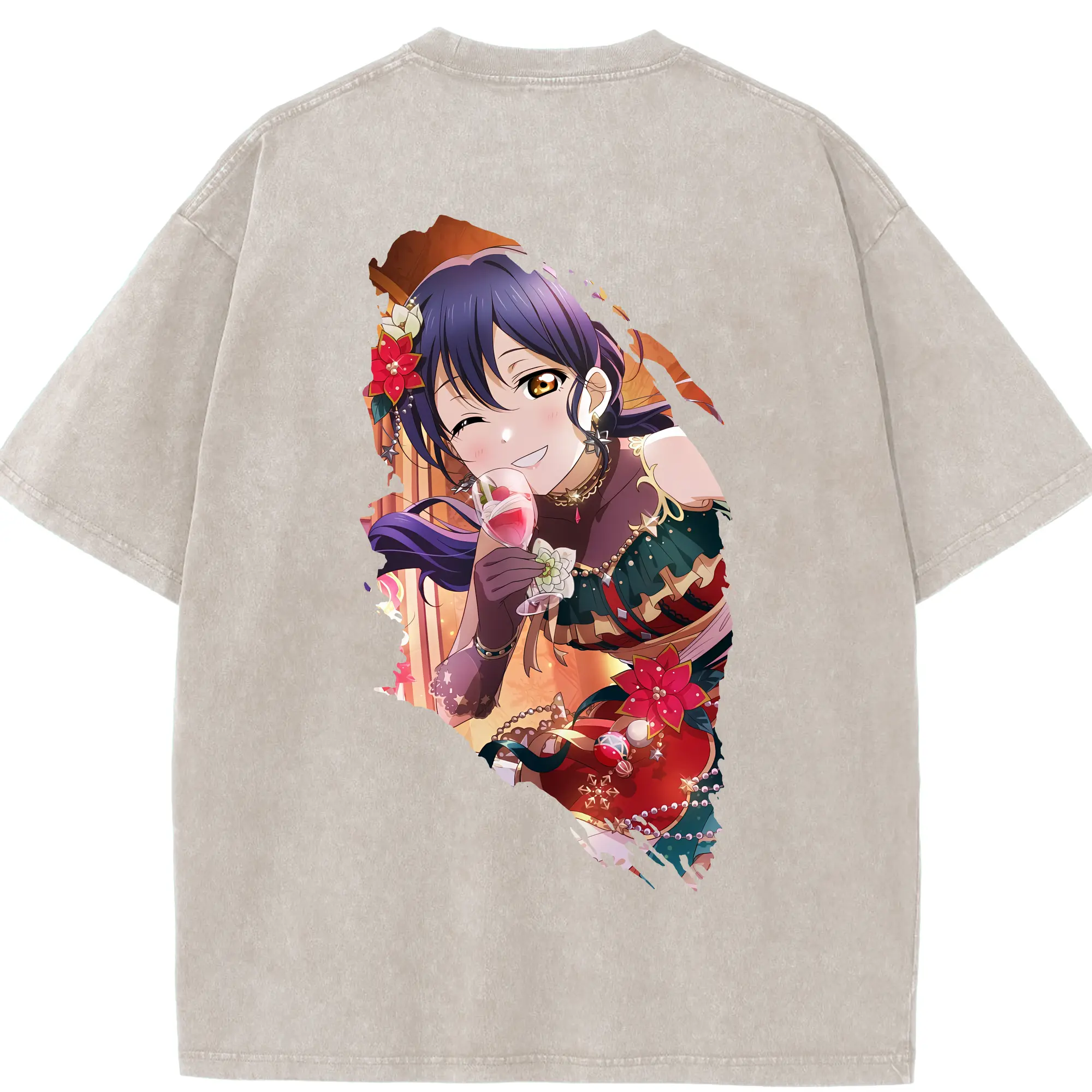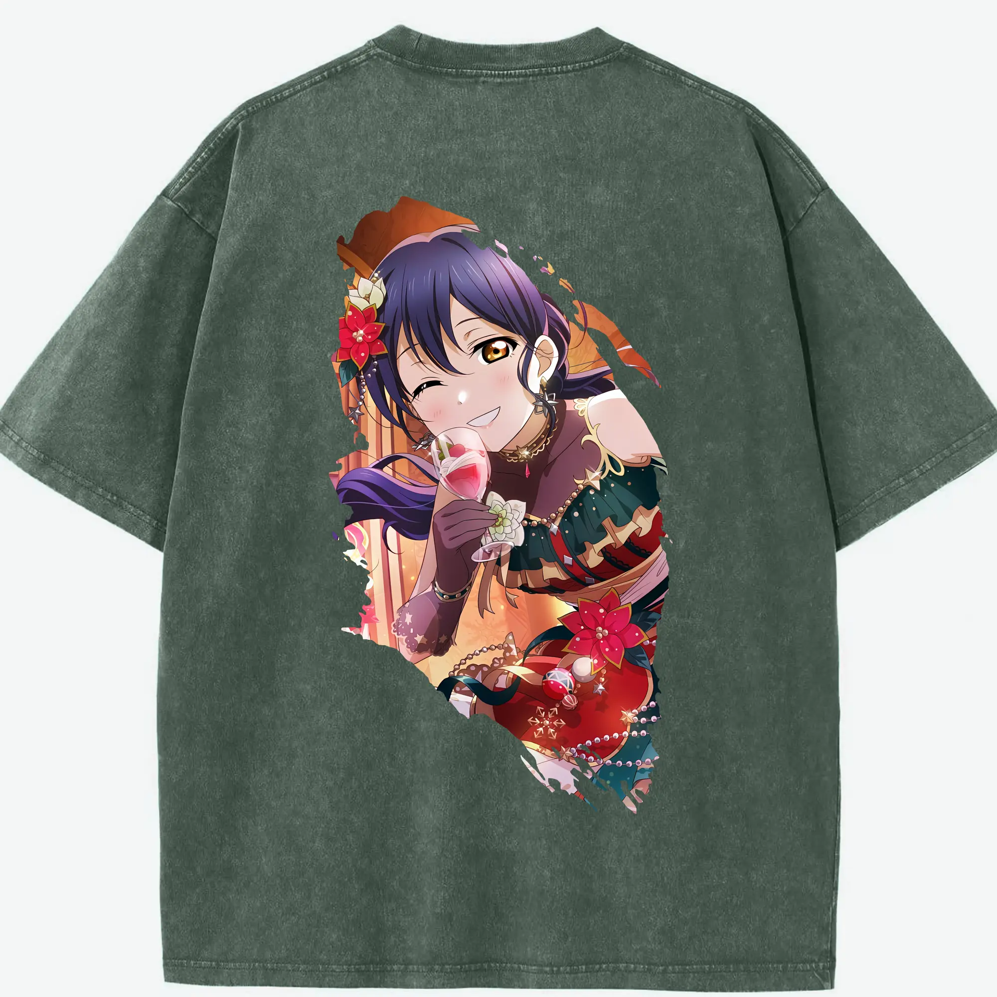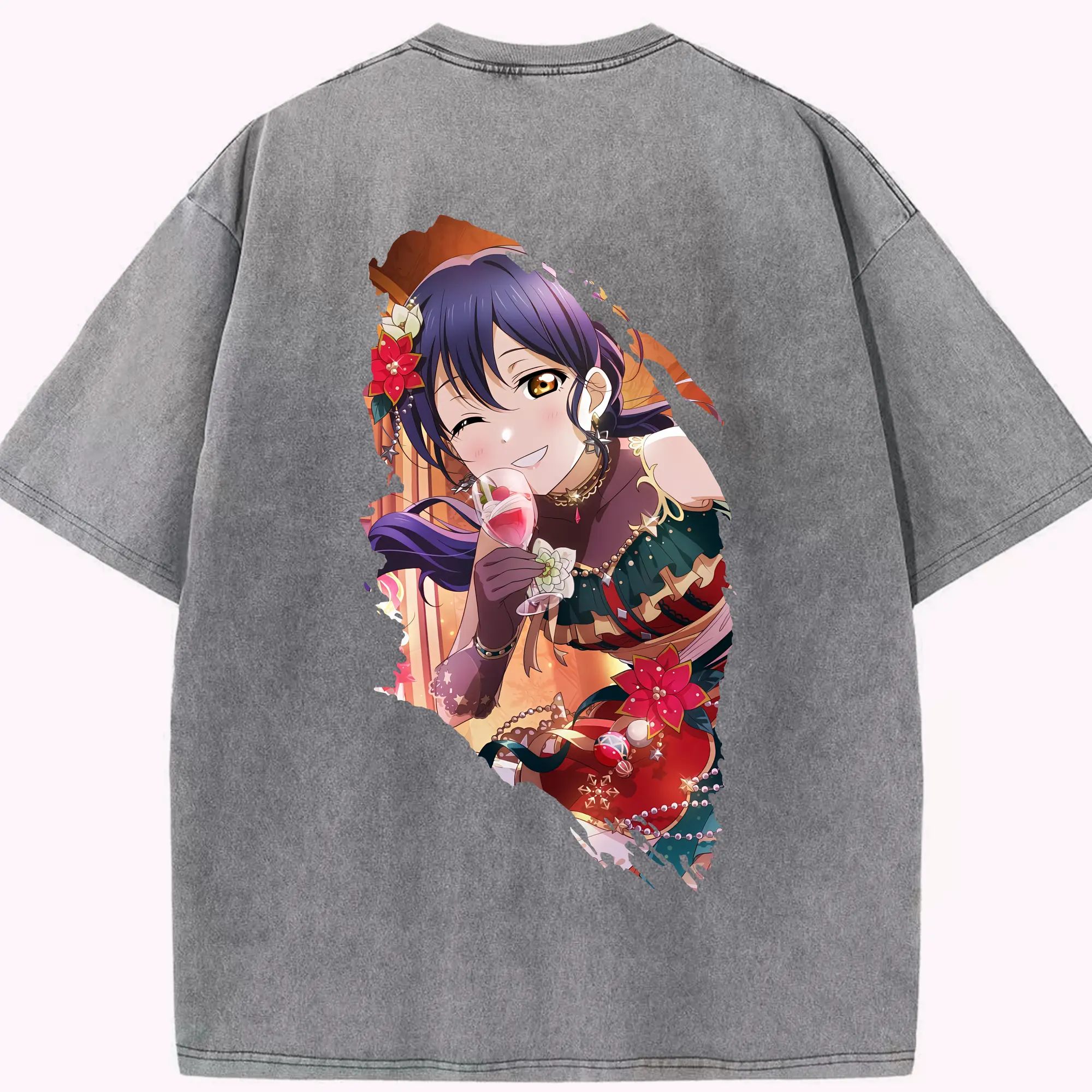 Love Live! グッズ,園田海未 - 綿100% ヴィンテージ風 半袖Tシャツ ・ フロントプリント ・ 柔らか肌触り ・ 通気性 快適 ・ スポーツ カジュアル 外出用