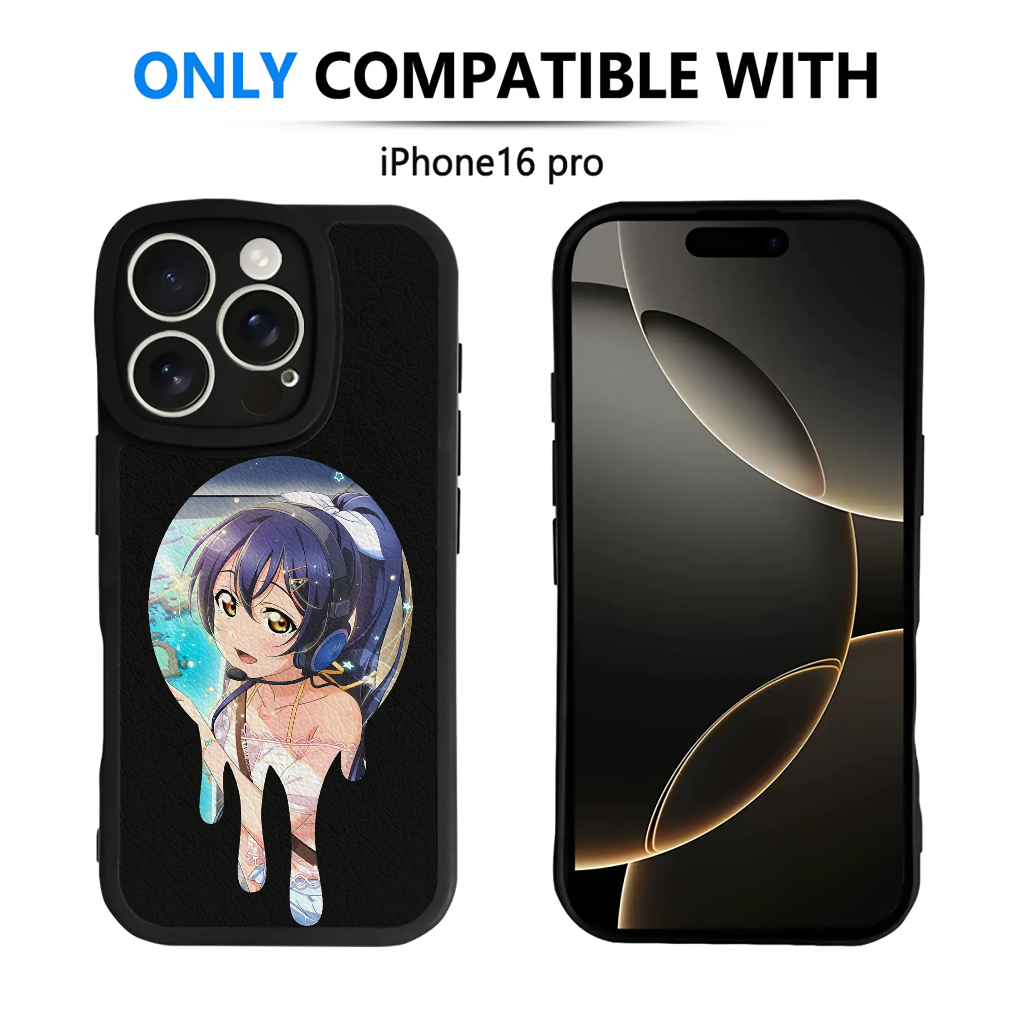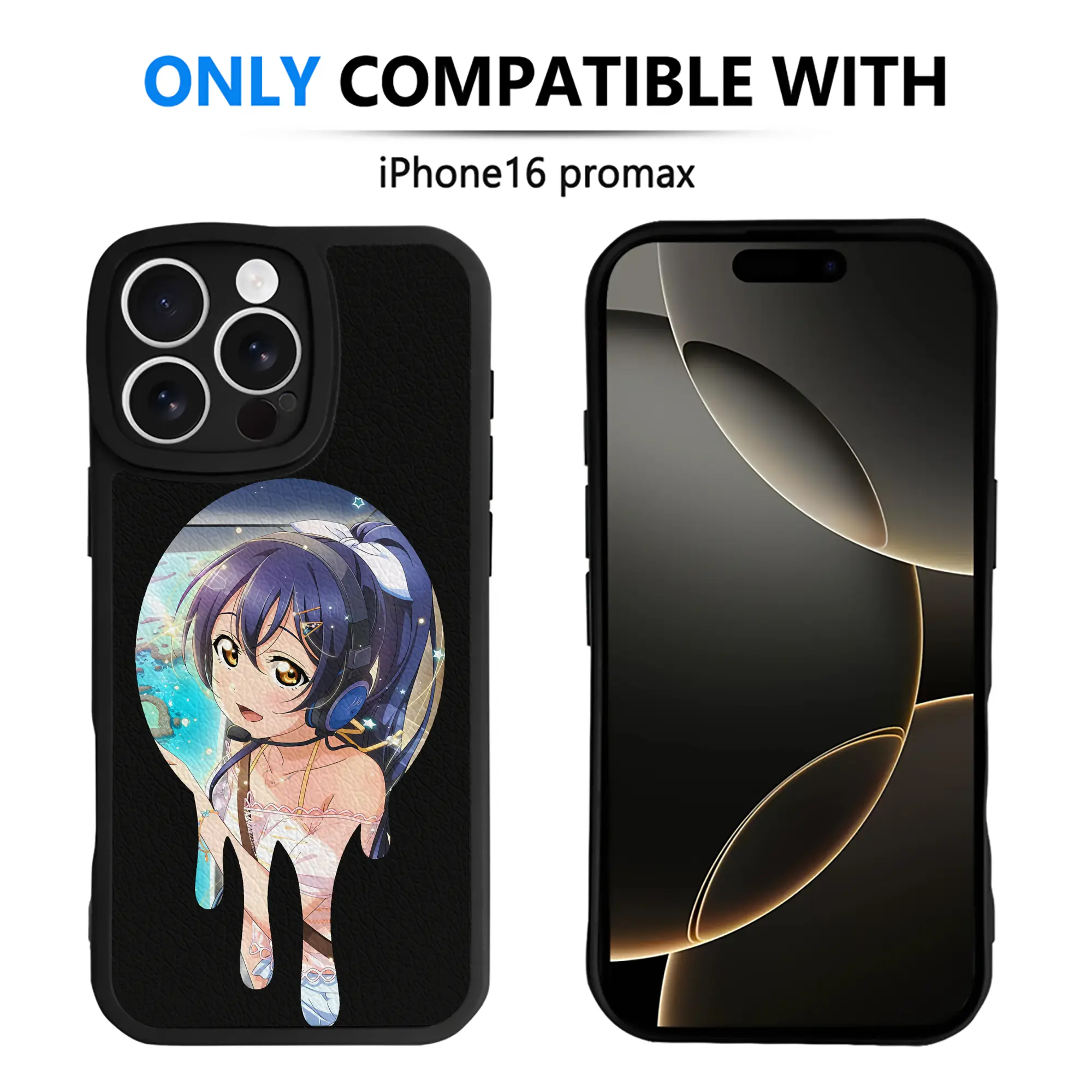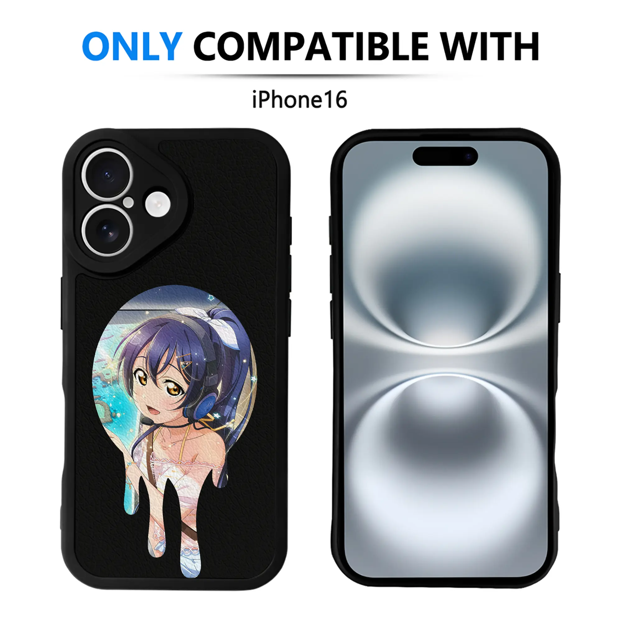 Love Live! グッズ,園田海未 - IPhone 16シリーズ対応 ・ シリコンスマホケース ・ レザー調 ・ 高精度フィット ・ 耐衝撃 ・ ワイヤレス充電対応 ・ 精密カット