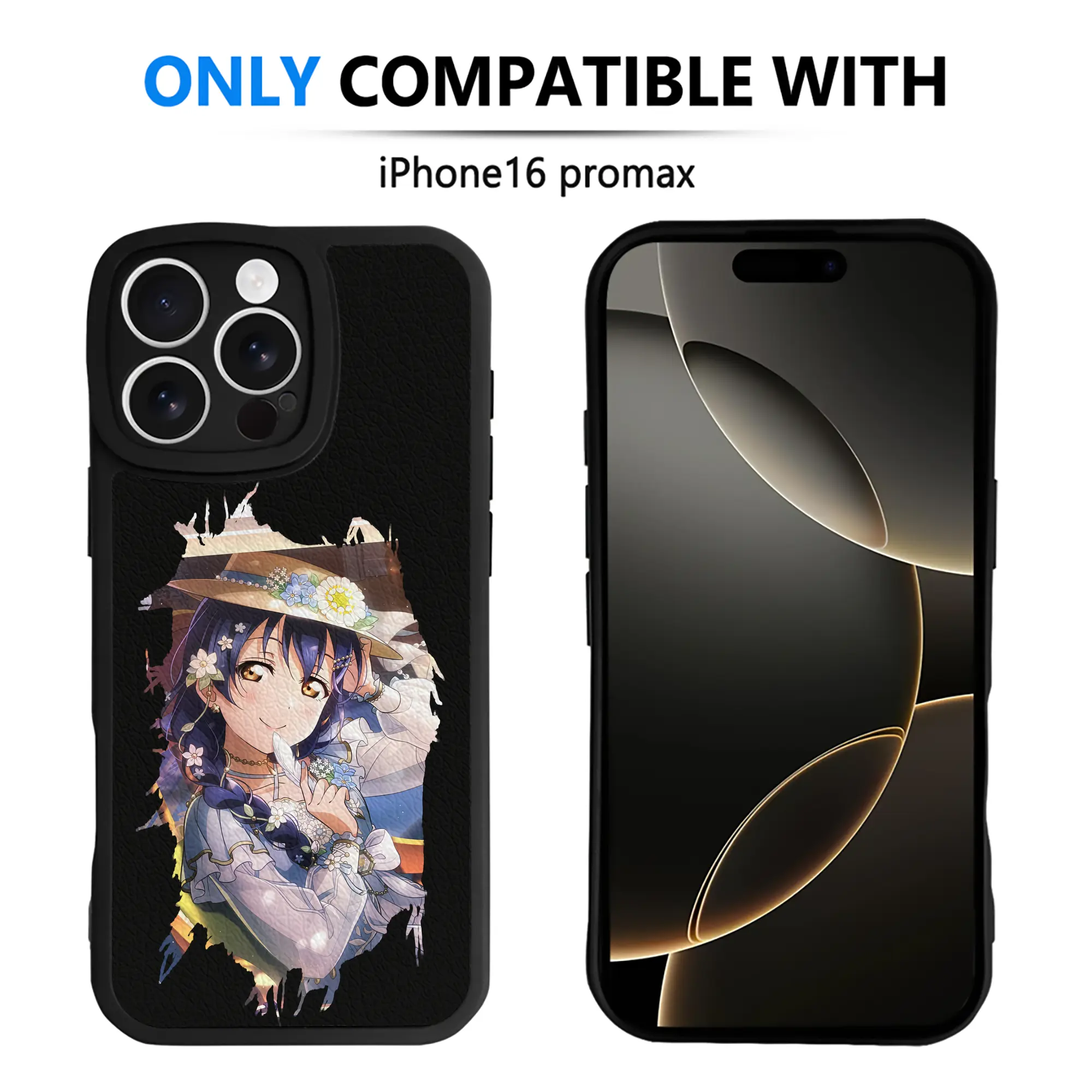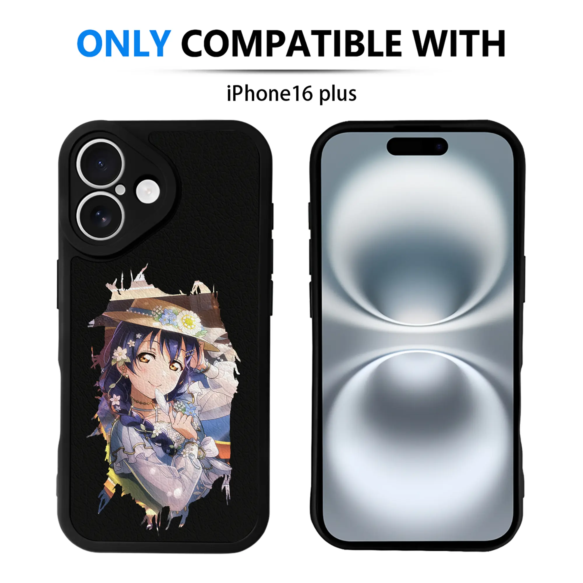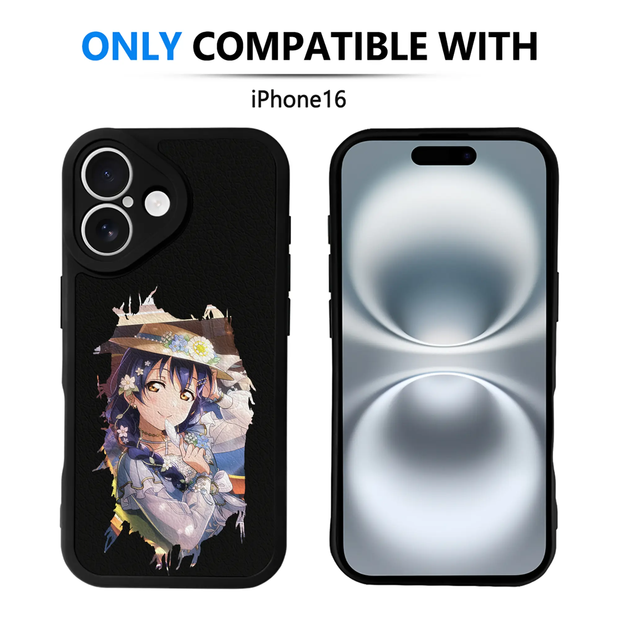 Love Live! グッズ,園田海未 - IPhone 16シリーズ対応 ・ シリコンスマホケース ・ レザー調 ・ 高精度フィット ・ 耐衝撃 ・ ワイヤレス充電対応 ・ 精密カット