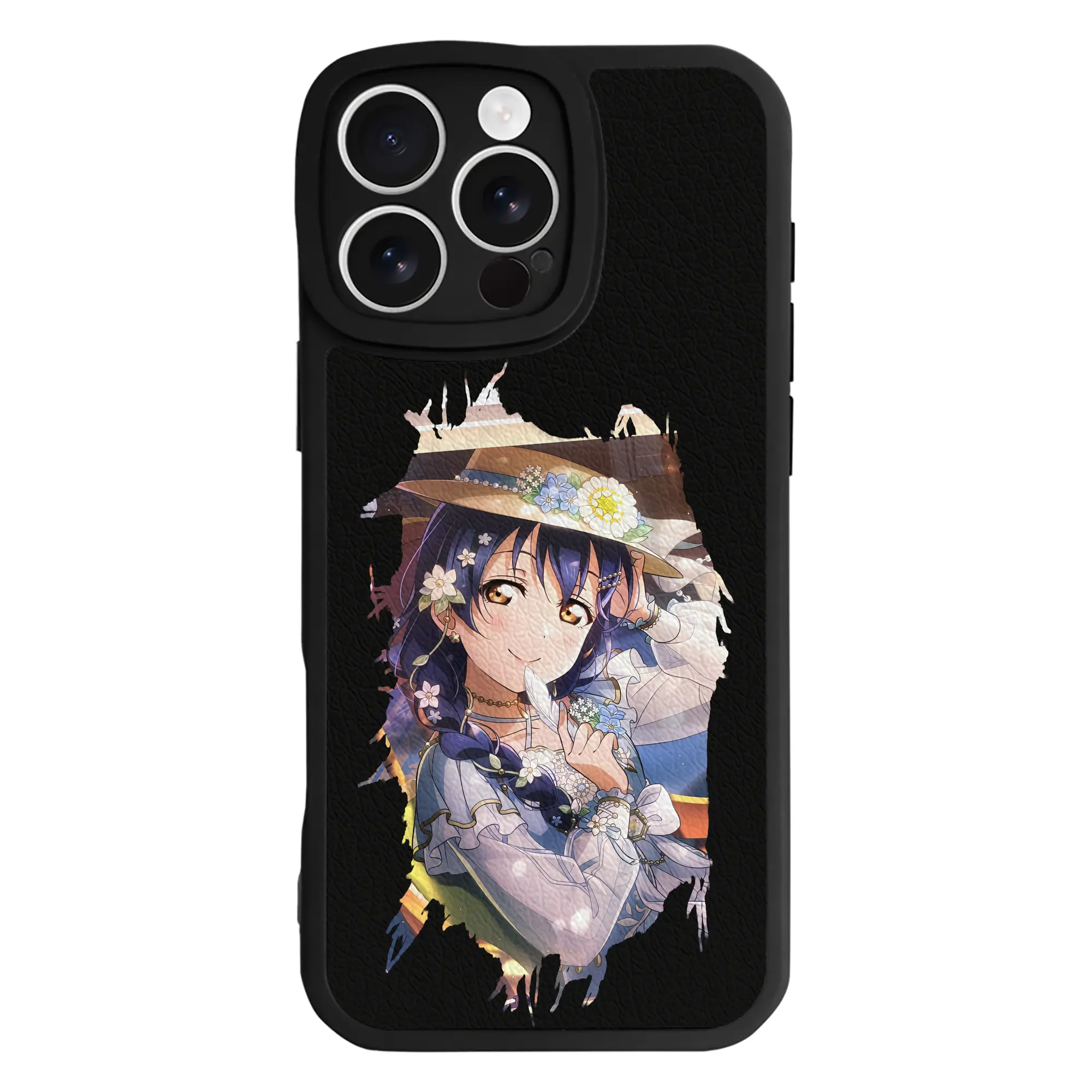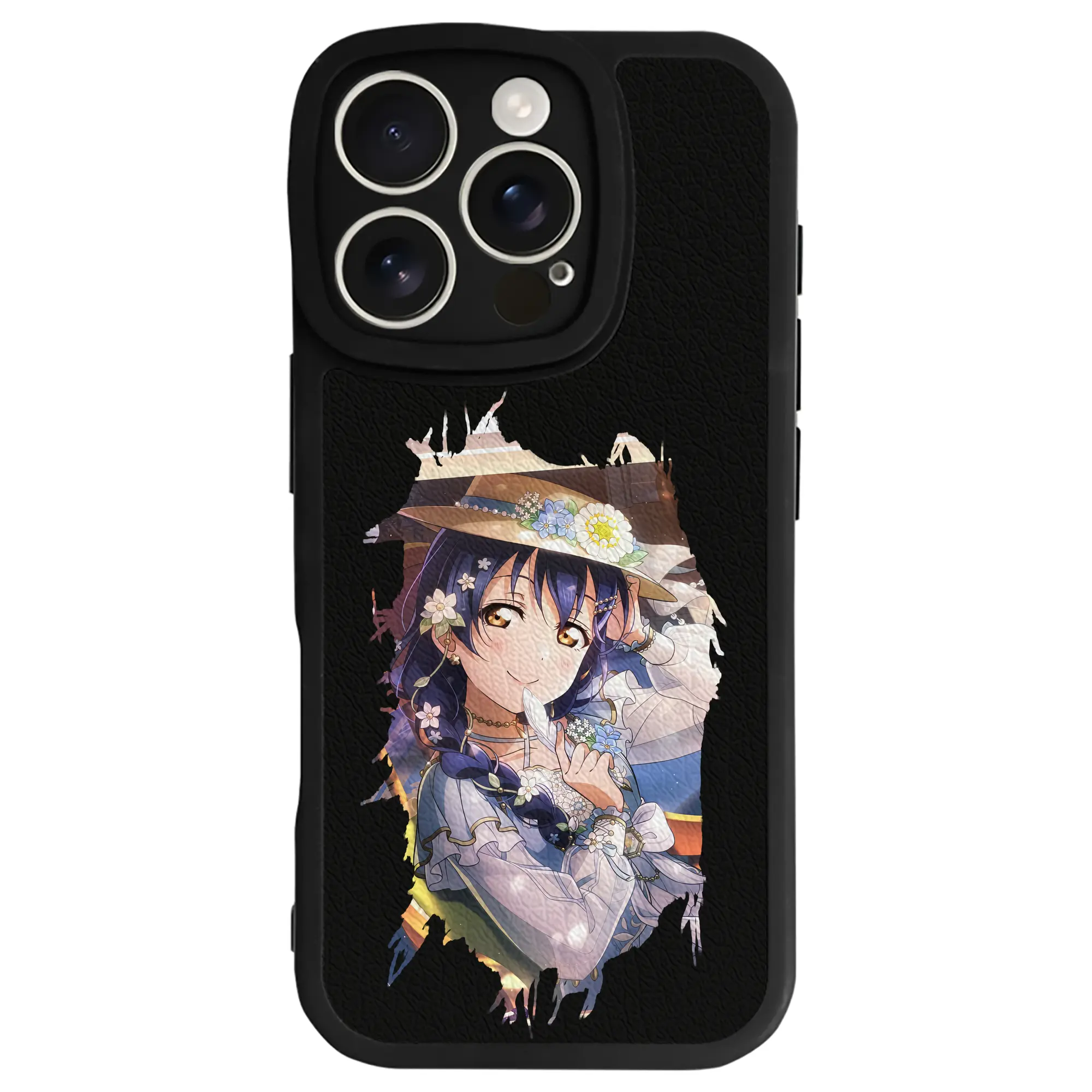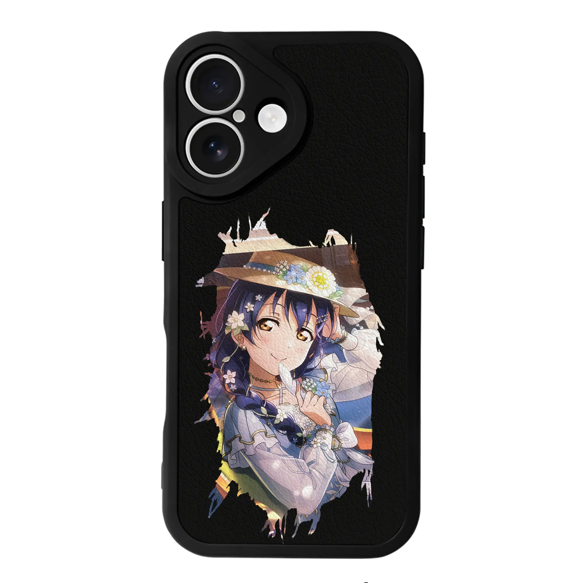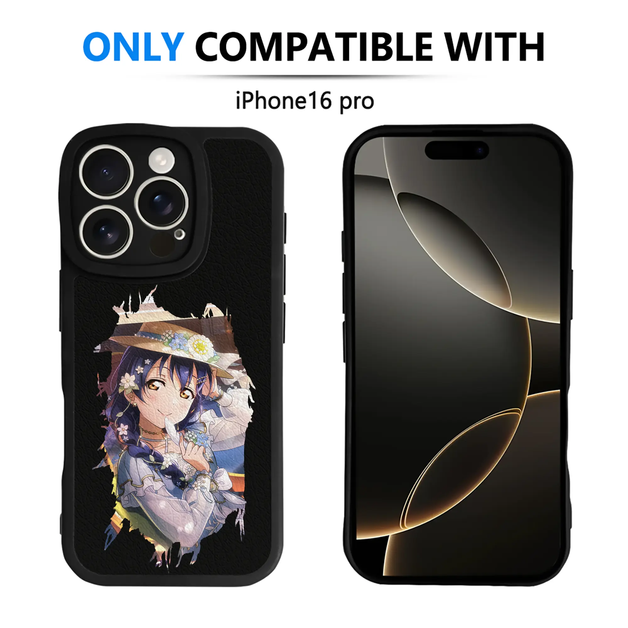 Love Live! グッズ,園田海未 - IPhone 16シリーズ対応 ・ シリコンスマホケース ・ レザー調 ・ 高精度フィット ・ 耐衝撃 ・ ワイヤレス充電対応 ・ 精密カット