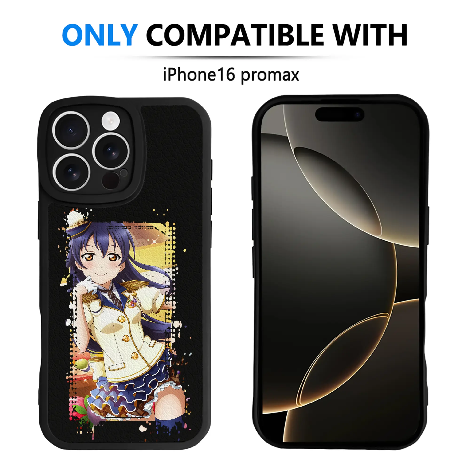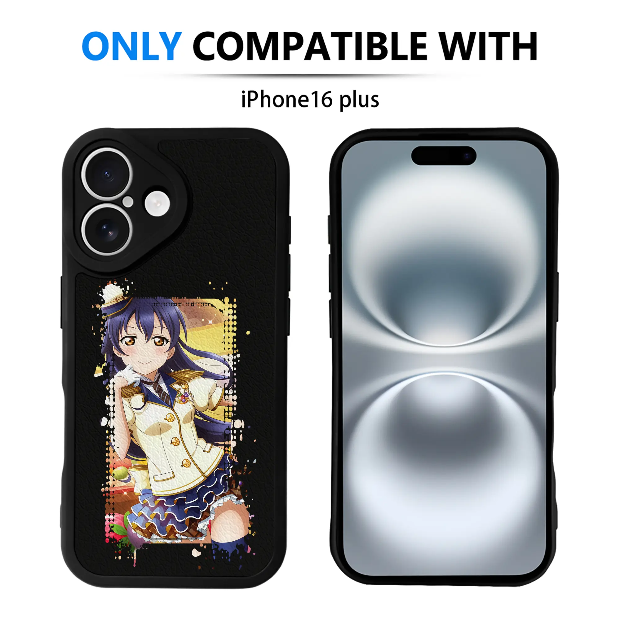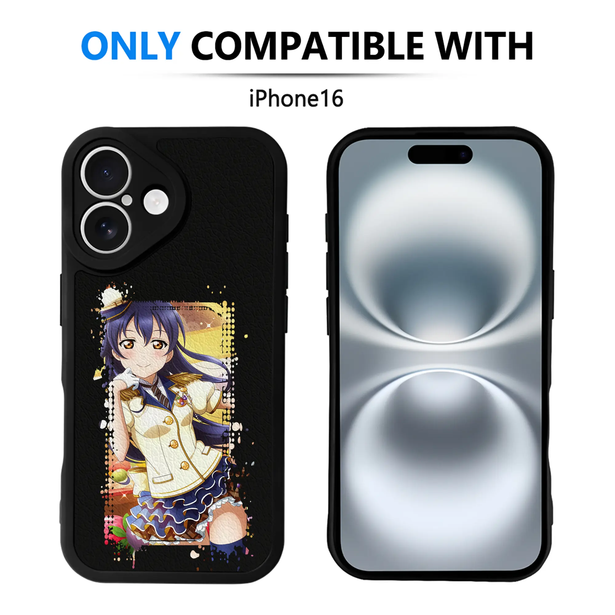 Love Live! グッズ,園田海未 - IPhone 16シリーズ対応 ・ シリコンスマホケース ・ レザー調 ・ 高精度フィット ・ 耐衝撃 ・ ワイヤレス充電対応 ・ 精密カット