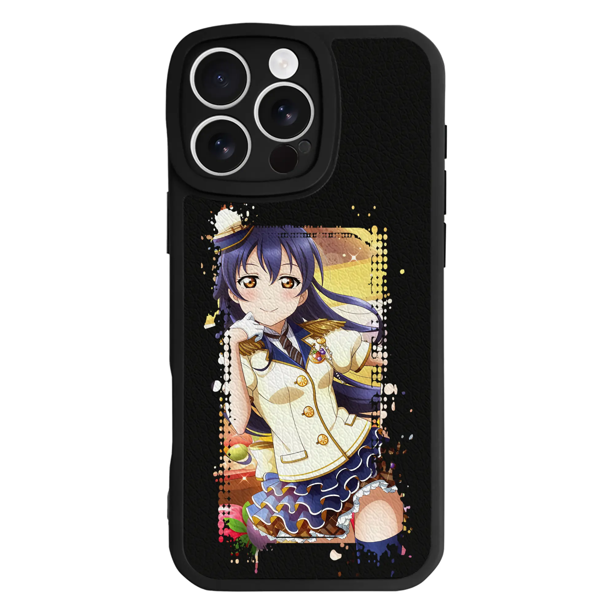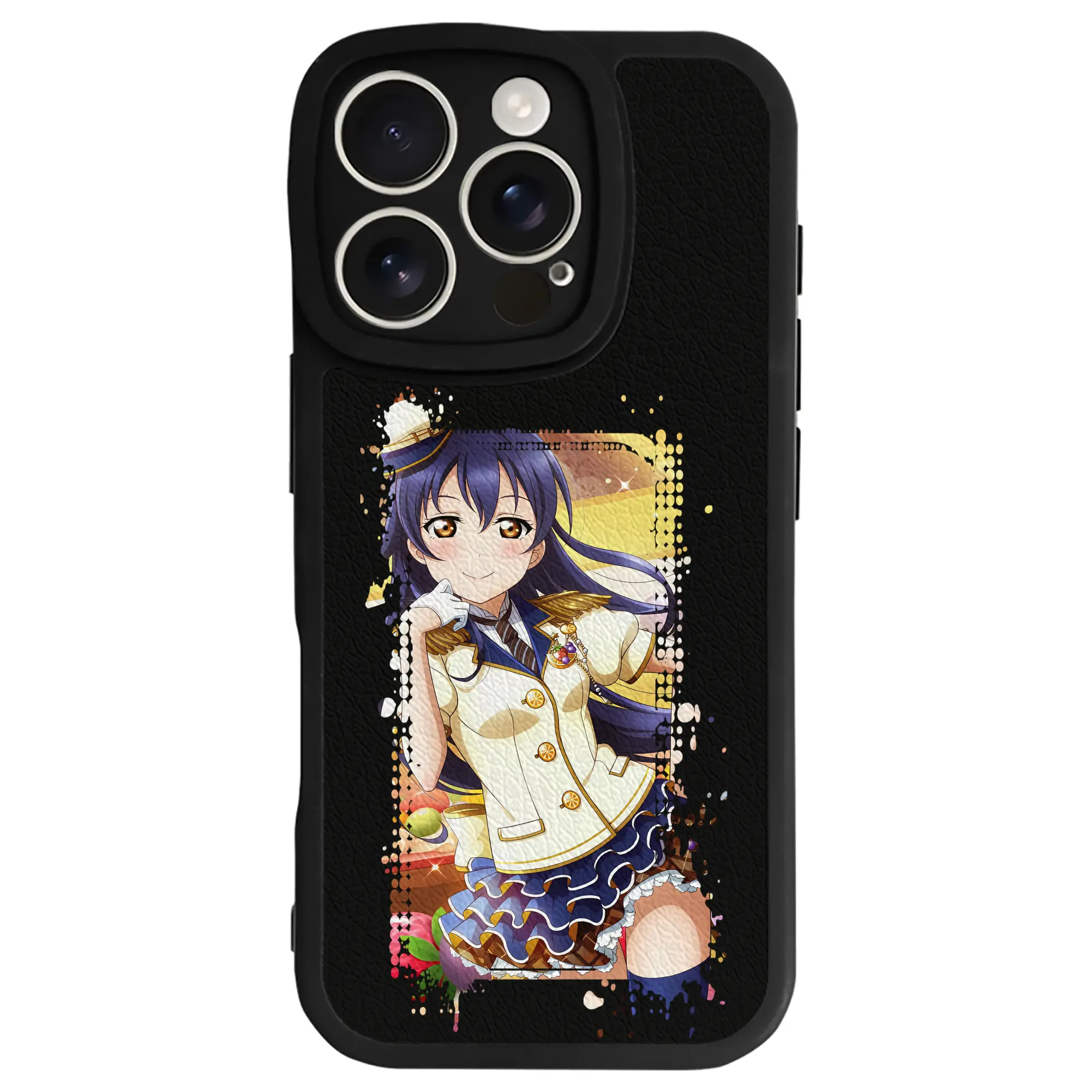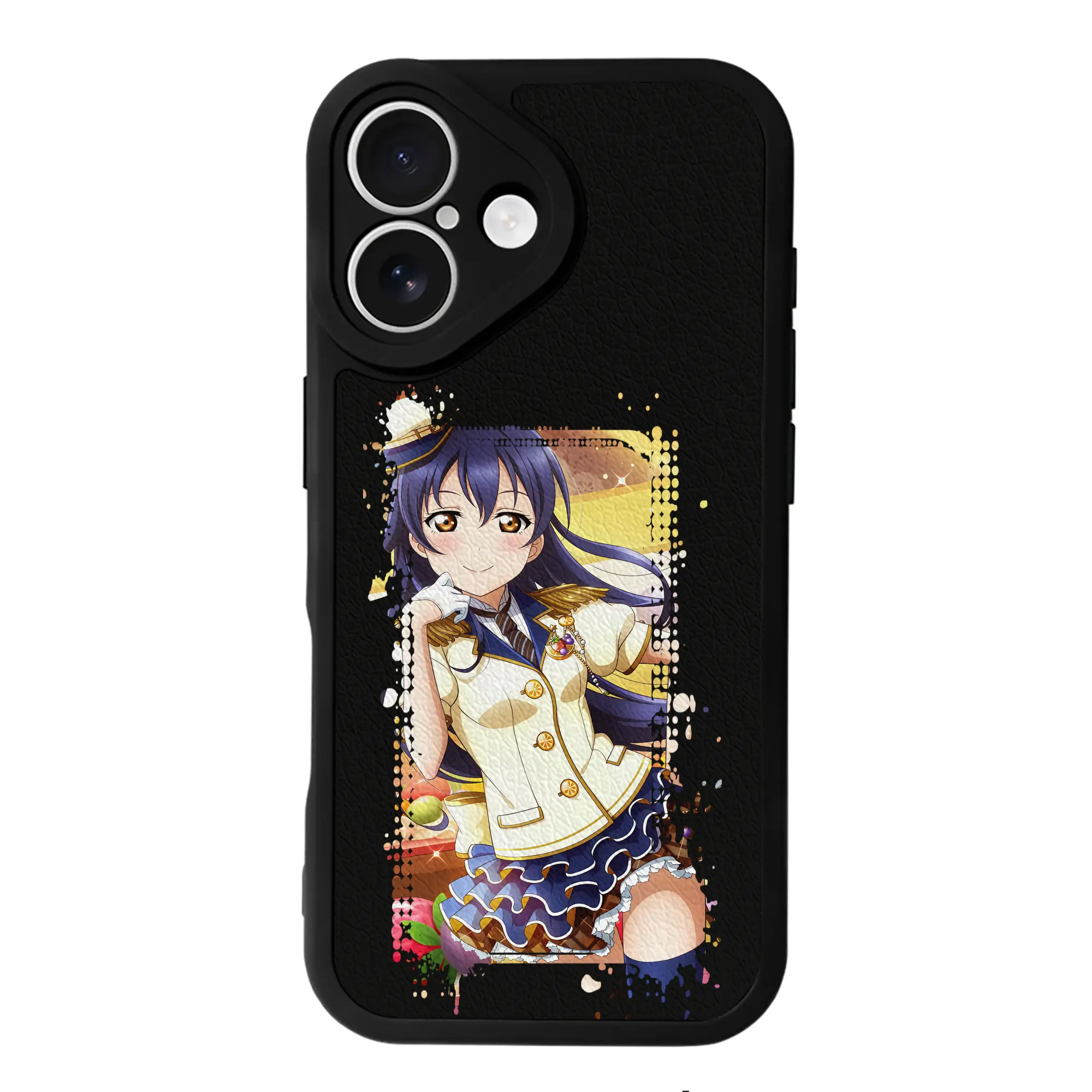 Love Live! グッズ,園田海未 - IPhone 16シリーズ対応 ・ シリコンスマホケース ・ レザー調 ・ 高精度フィット ・ 耐衝撃 ・ ワイヤレス充電対応 ・ 精密カット