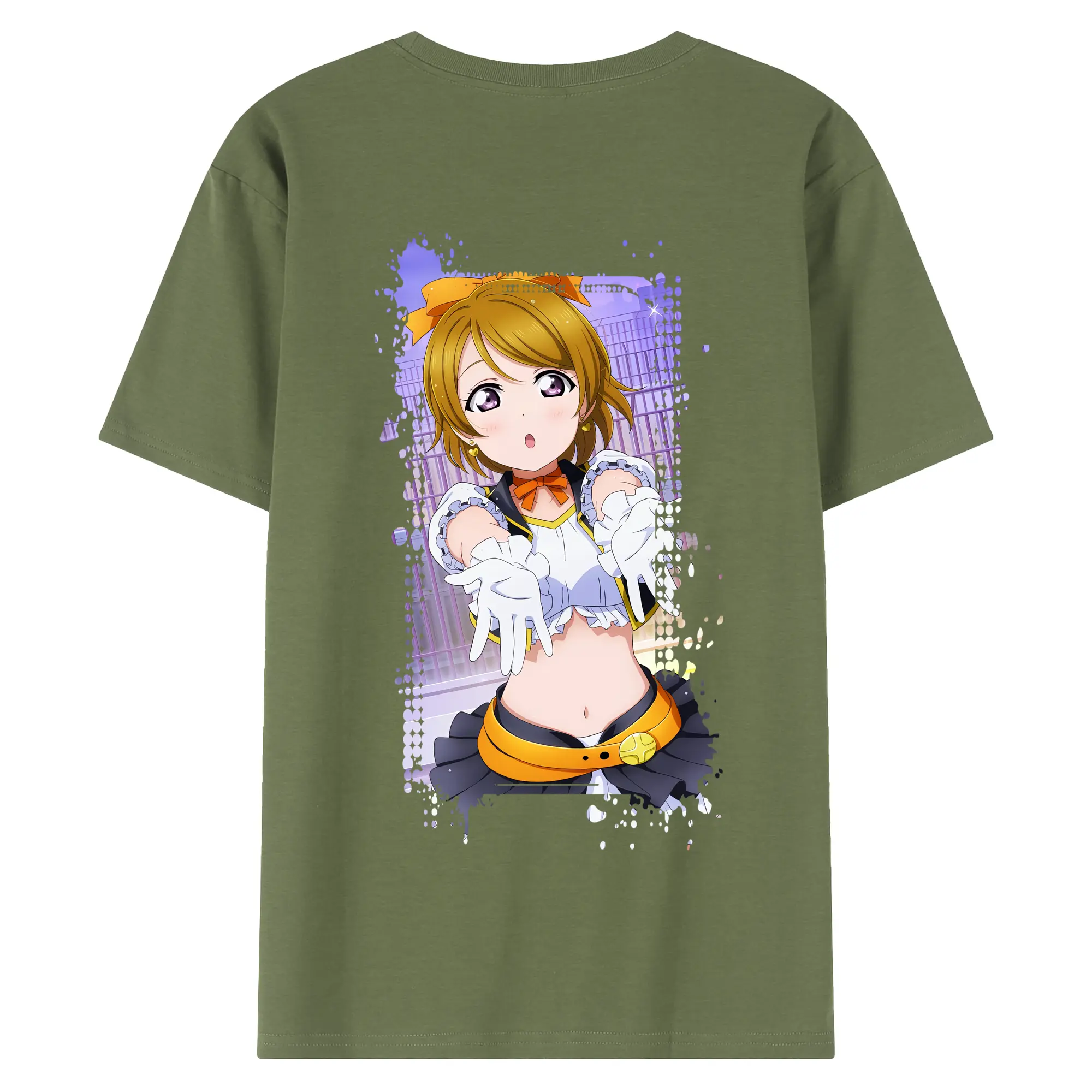 Love Live! グッズ,小泉花陽 - 綿100% ヴィンテージ風 半袖Tシャツ ・ 背面プリント ・ 柔らか肌触り ・ 通気性 快適 ・ スポーツ カジュアル 外出用