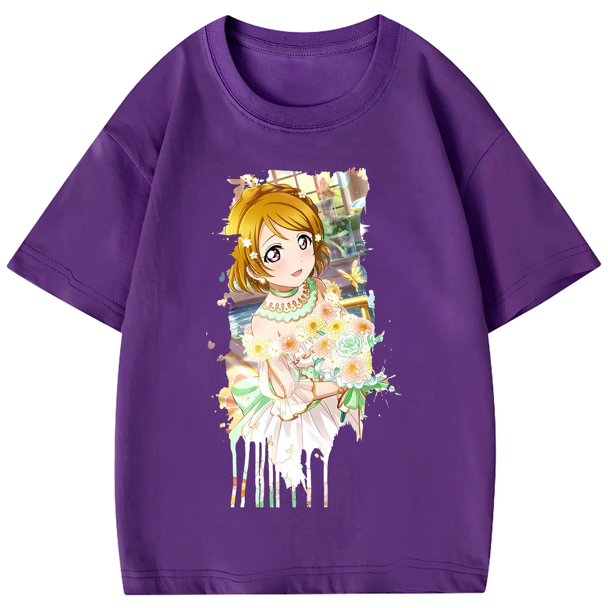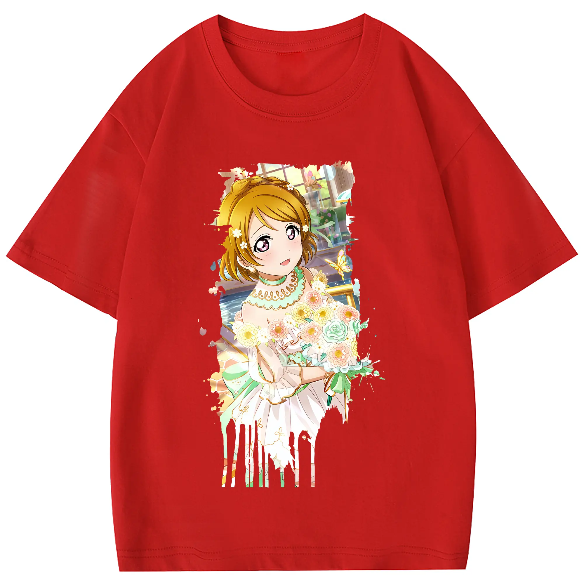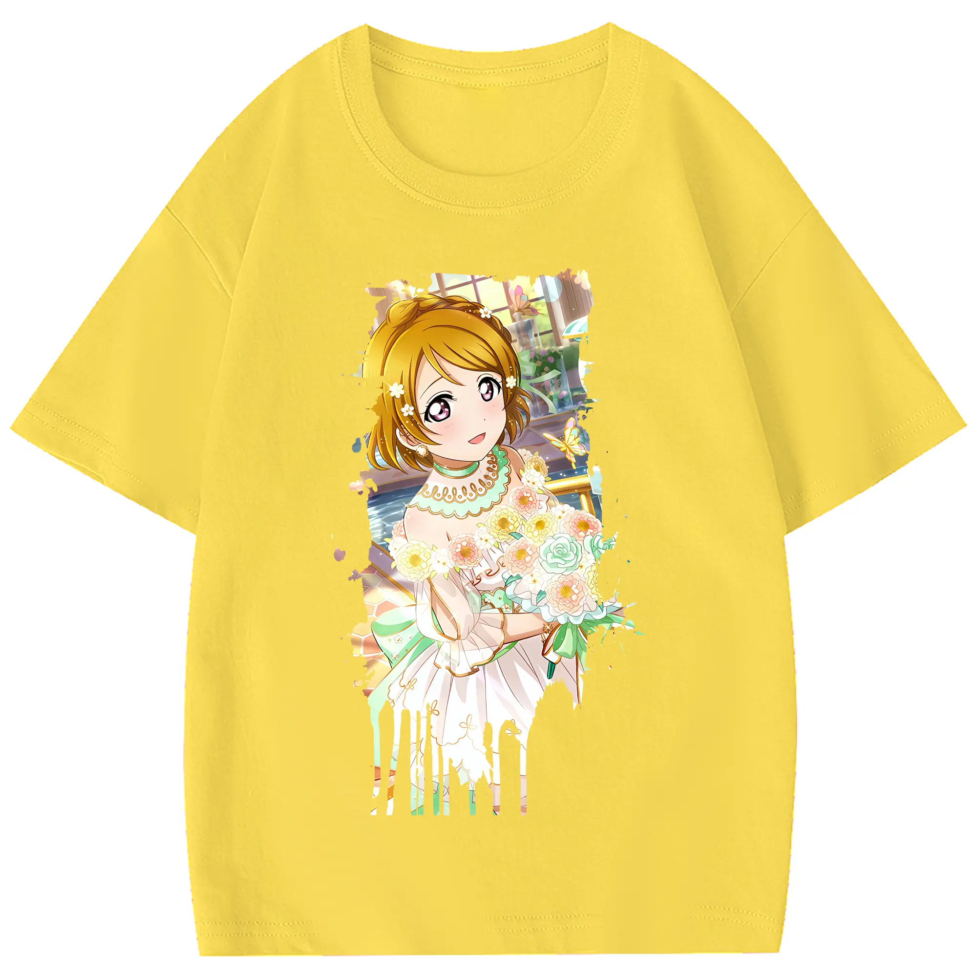 Love Live! グッズ,小泉花陽 - 綿100% ヴィンテージ風 半袖Tシャツ ・ フロントプリント ・ 柔らか肌触り ・ 通気性 快適 ・ スポーツ カジュアル 外出用