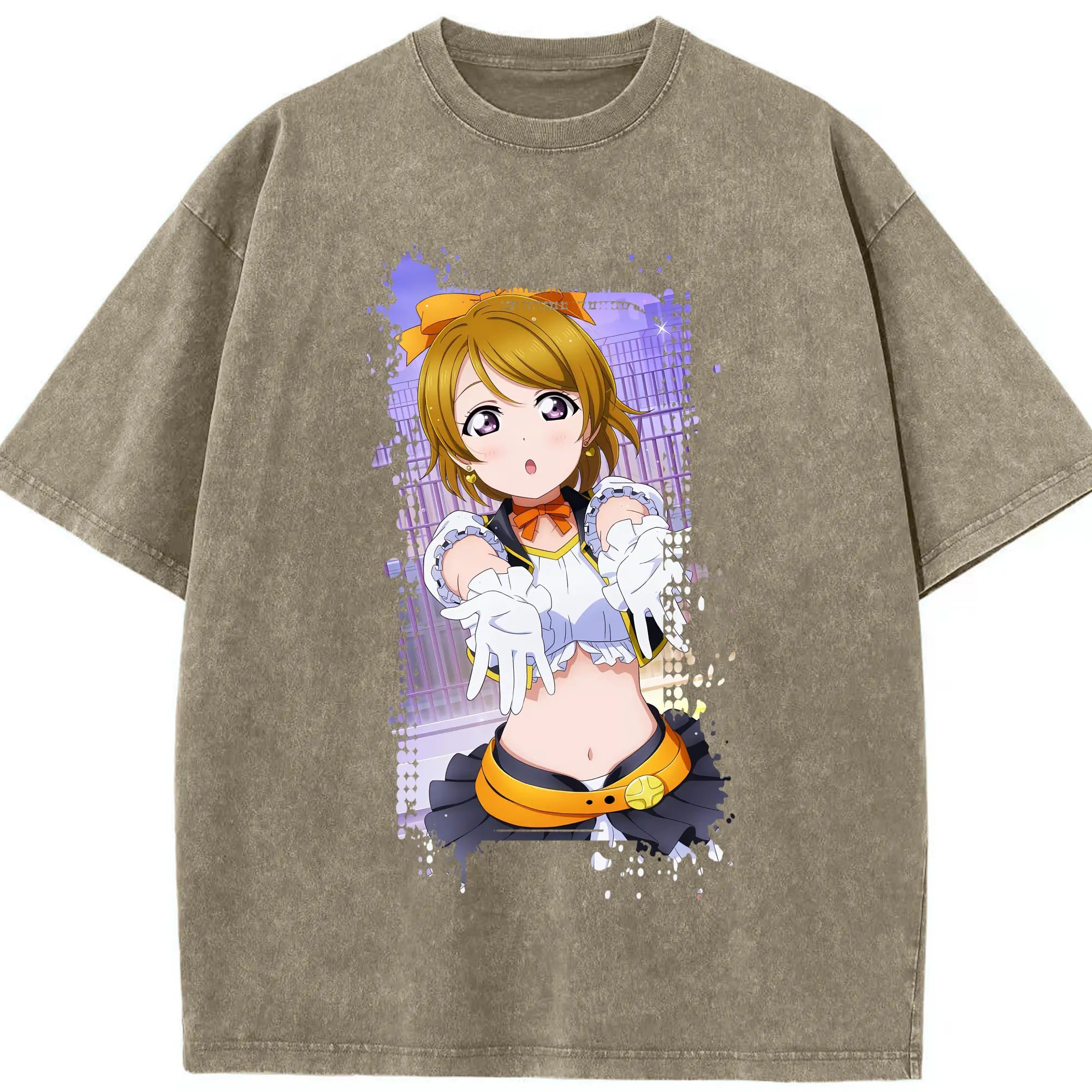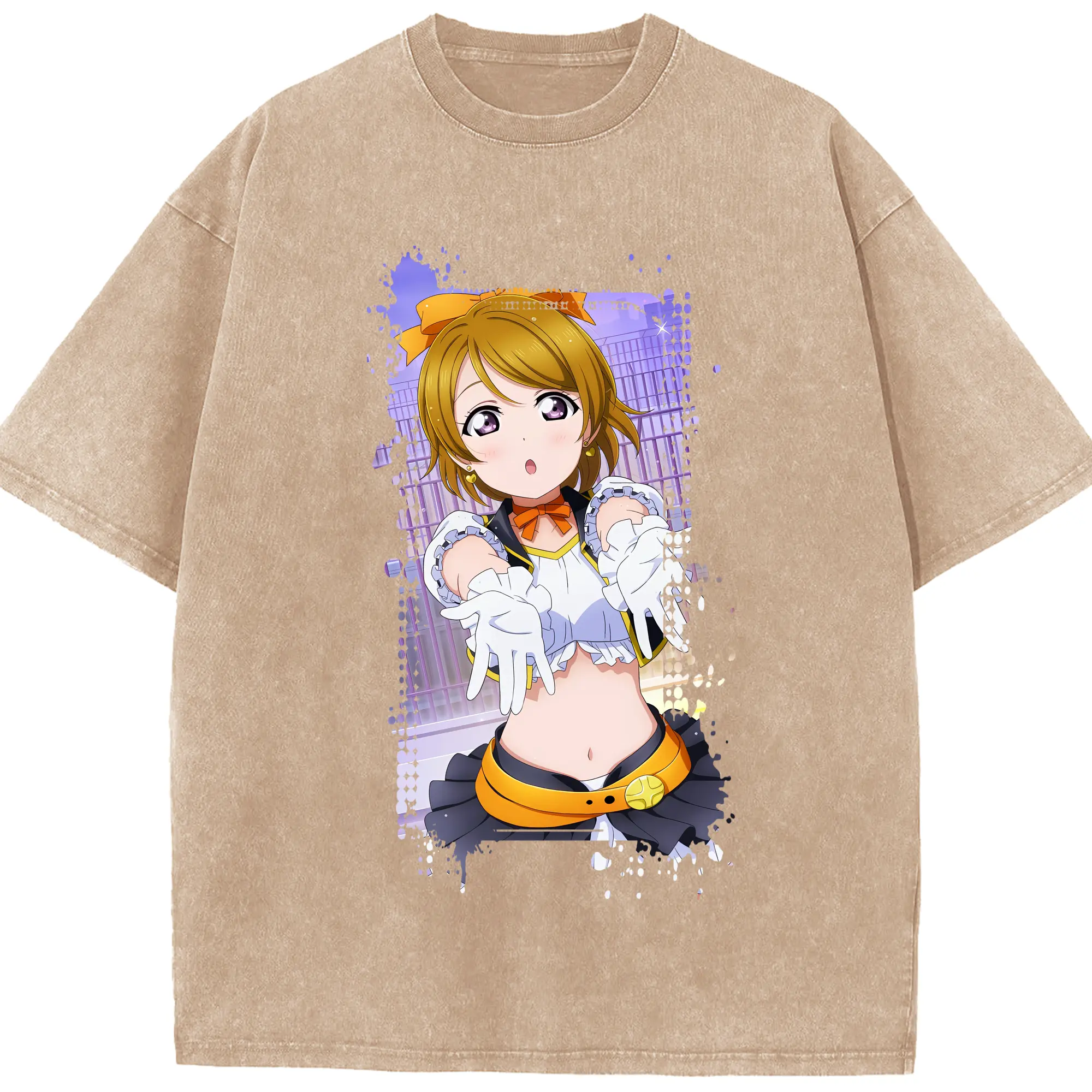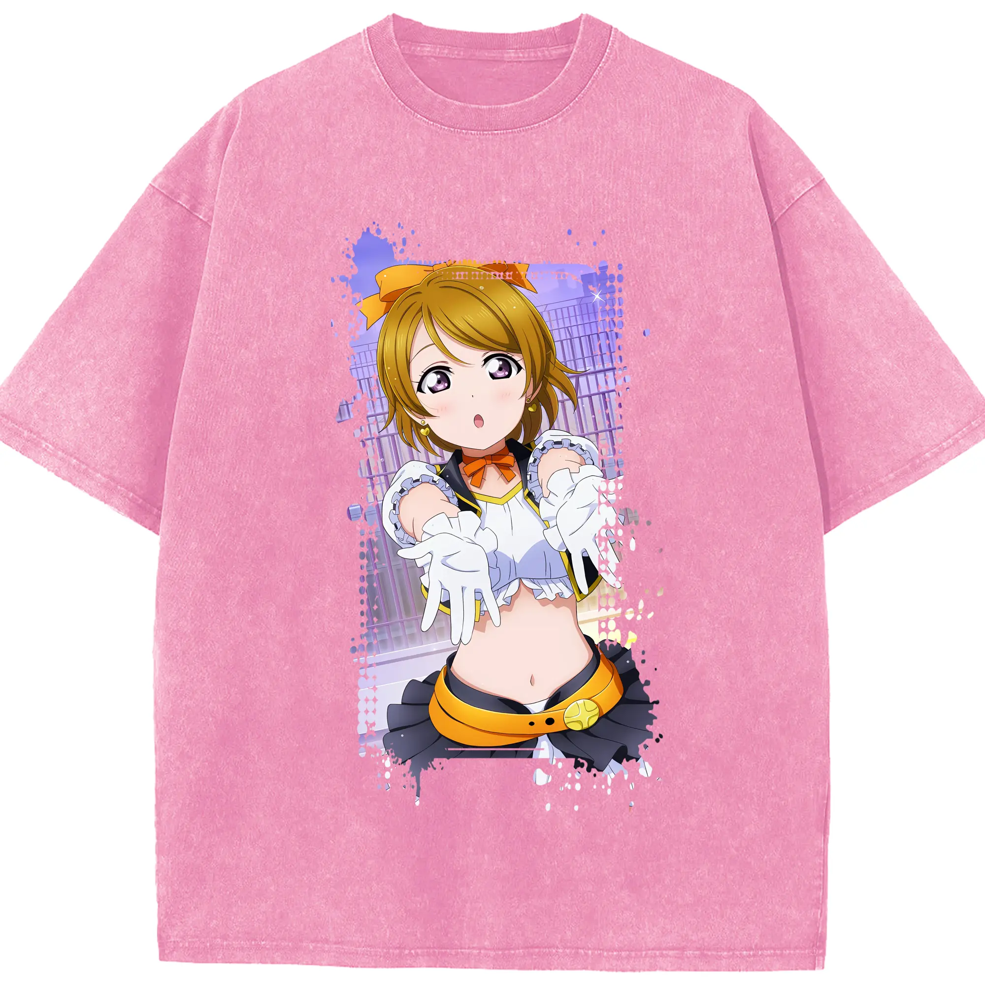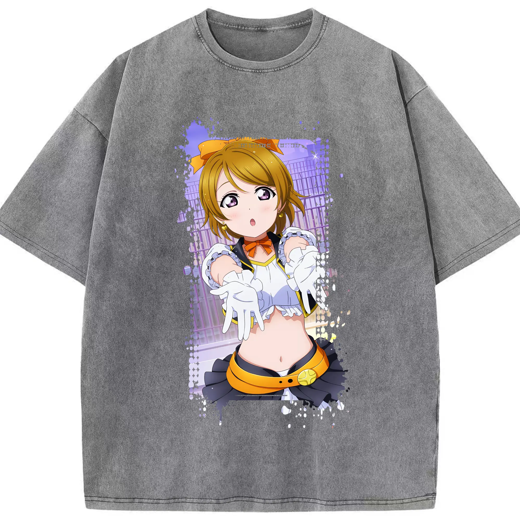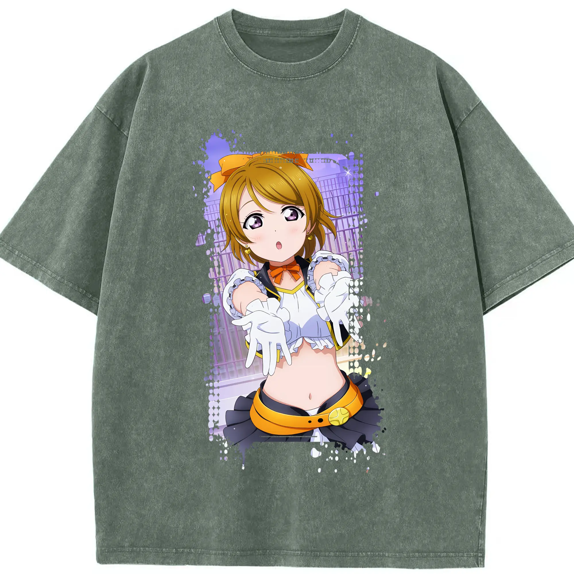 Love Live! グッズ,小泉花陽 - 綿100% ヴィンテージ風 半袖Tシャツ ・ 背面プリント ・ 柔らか肌触り ・ 通気性 快適 ・ スポーツ カジュアル 外出用