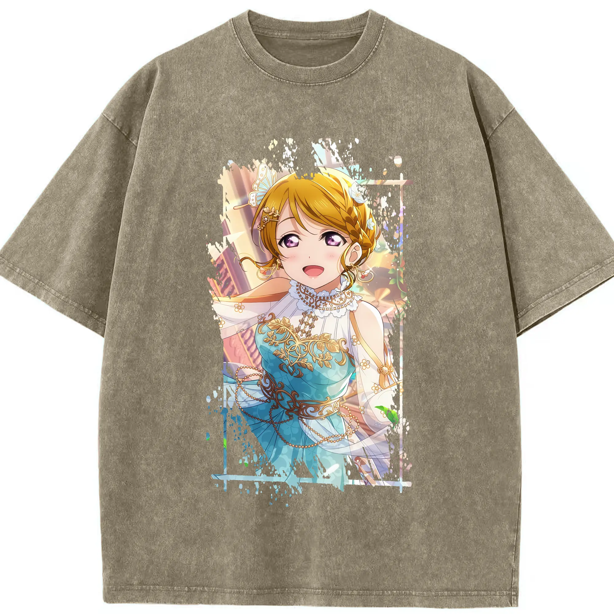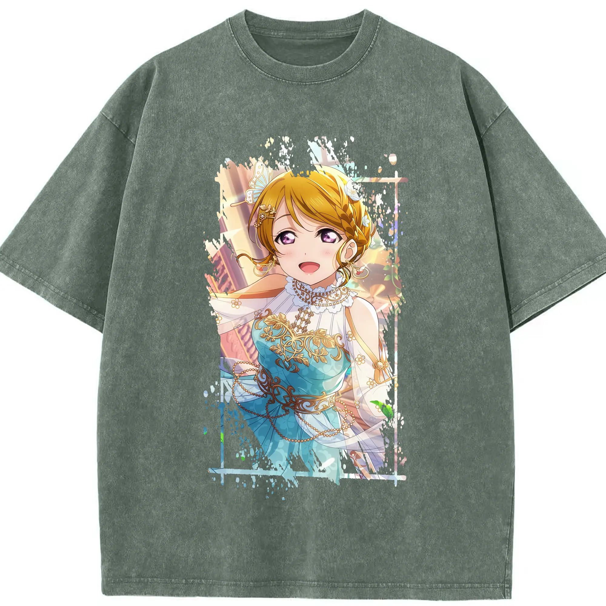 Love Live! グッズ,小泉花陽 - 綿100% ヴィンテージ風 半袖Tシャツ ・ 背面プリント ・ 柔らか肌触り ・ 通気性 快適 ・ スポーツ カジュアル 外出用