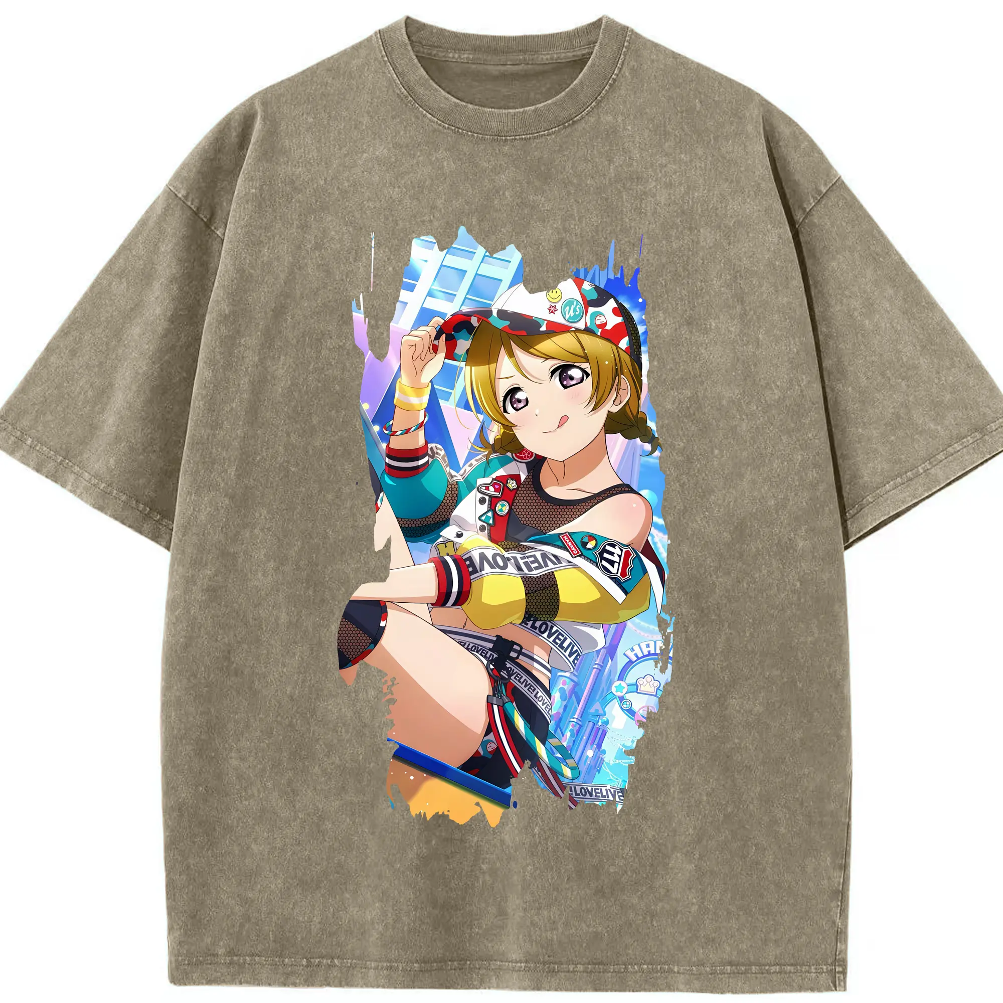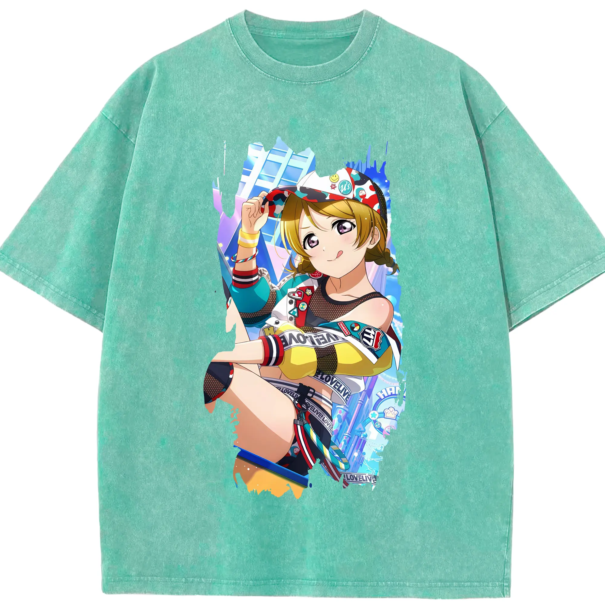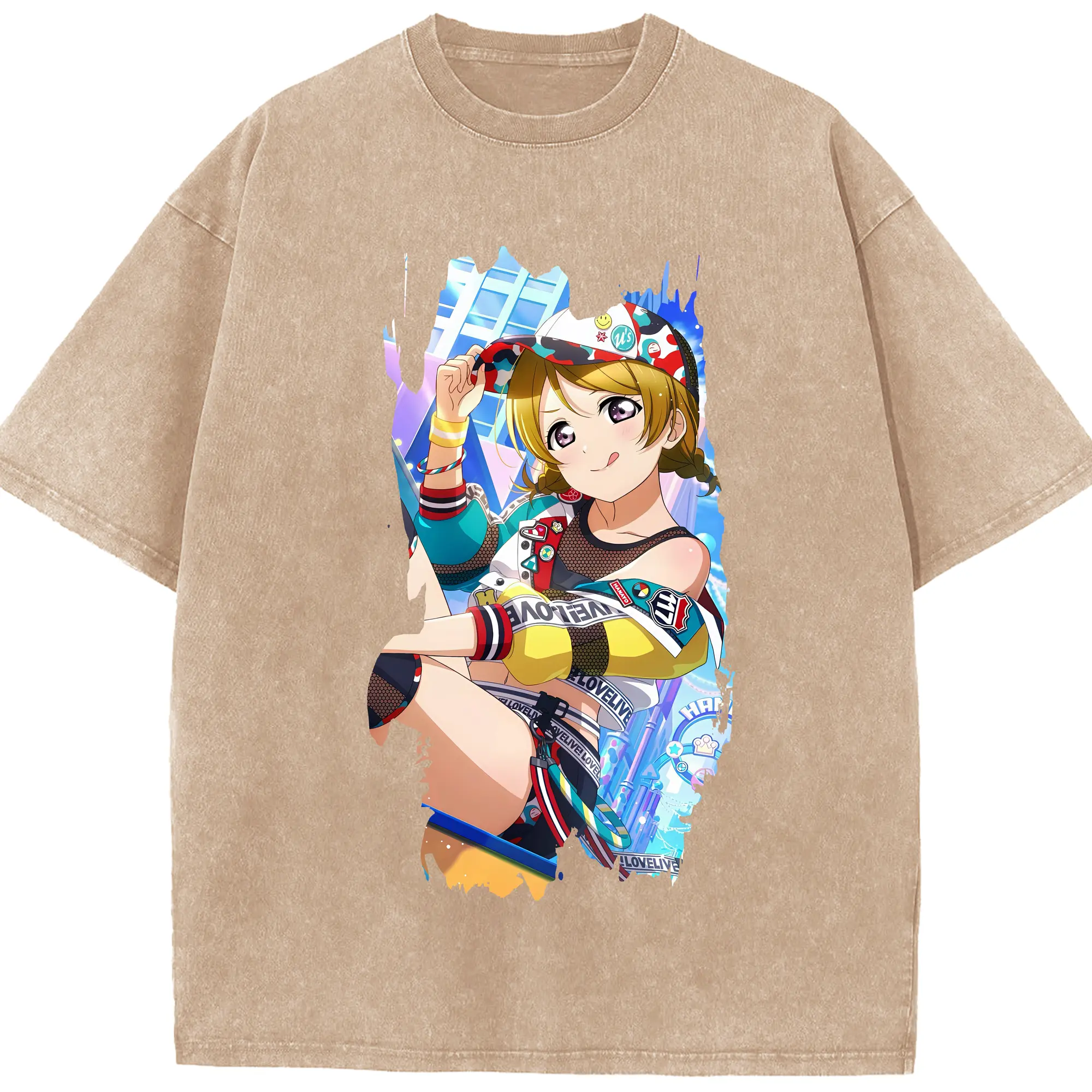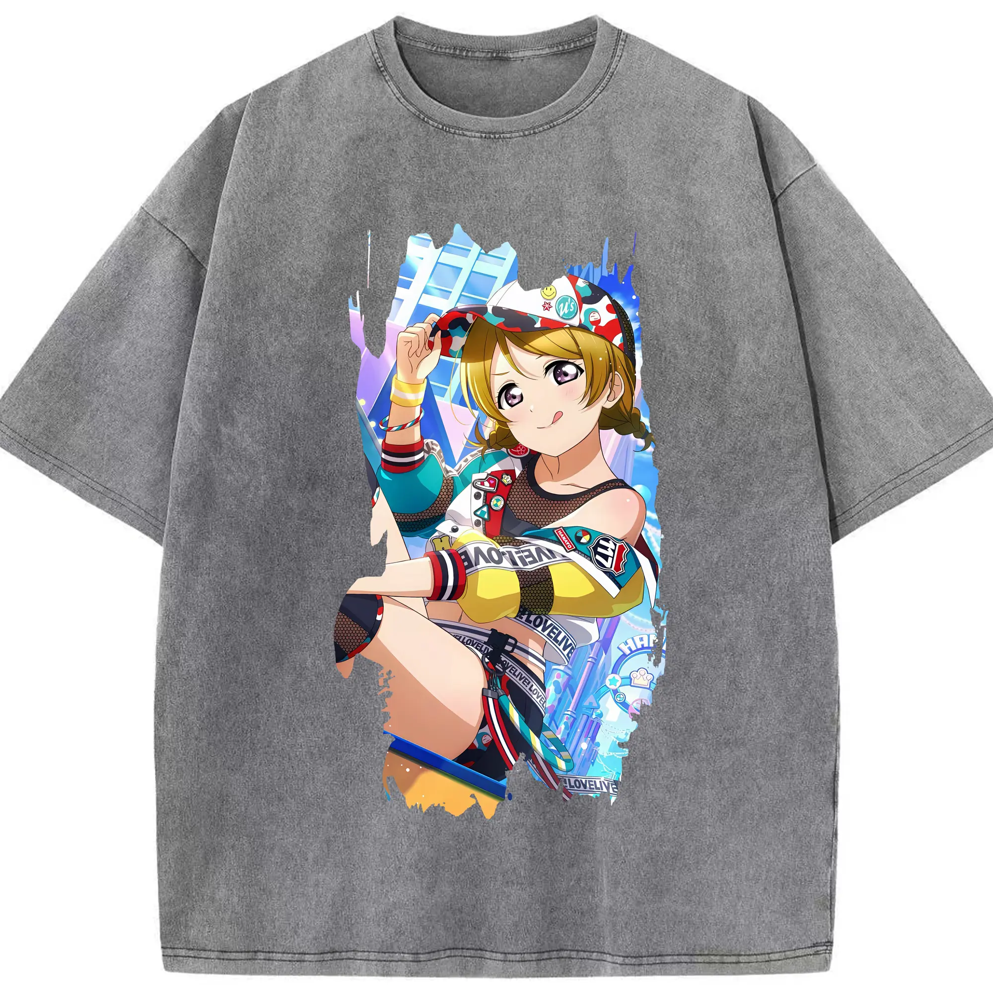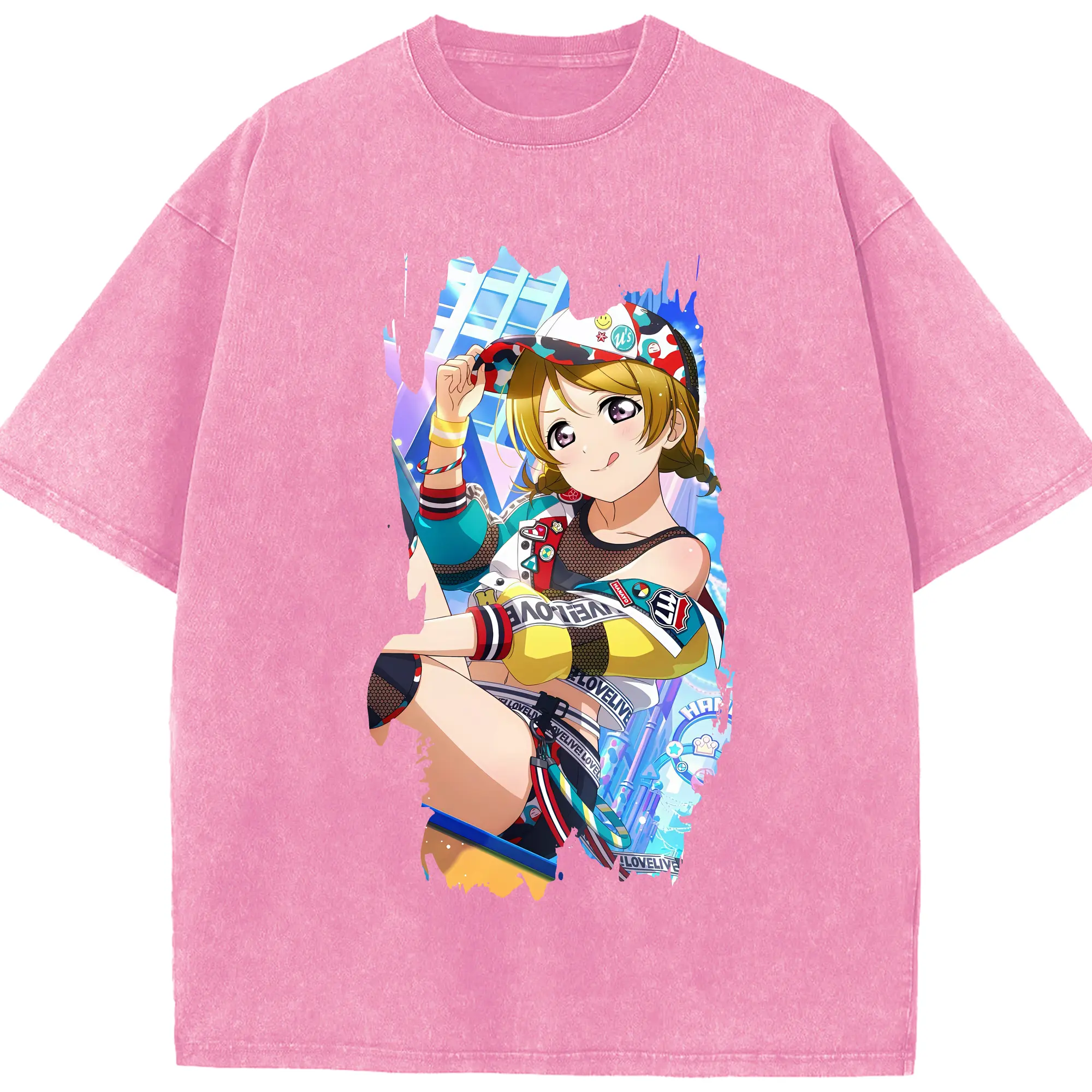 Love Live! グッズ,小泉花陽 - 綿100% ヴィンテージ風 半袖Tシャツ ・ 背面プリント ・ 柔らか肌触り ・ 通気性 快適 ・ スポーツ カジュアル 外出用