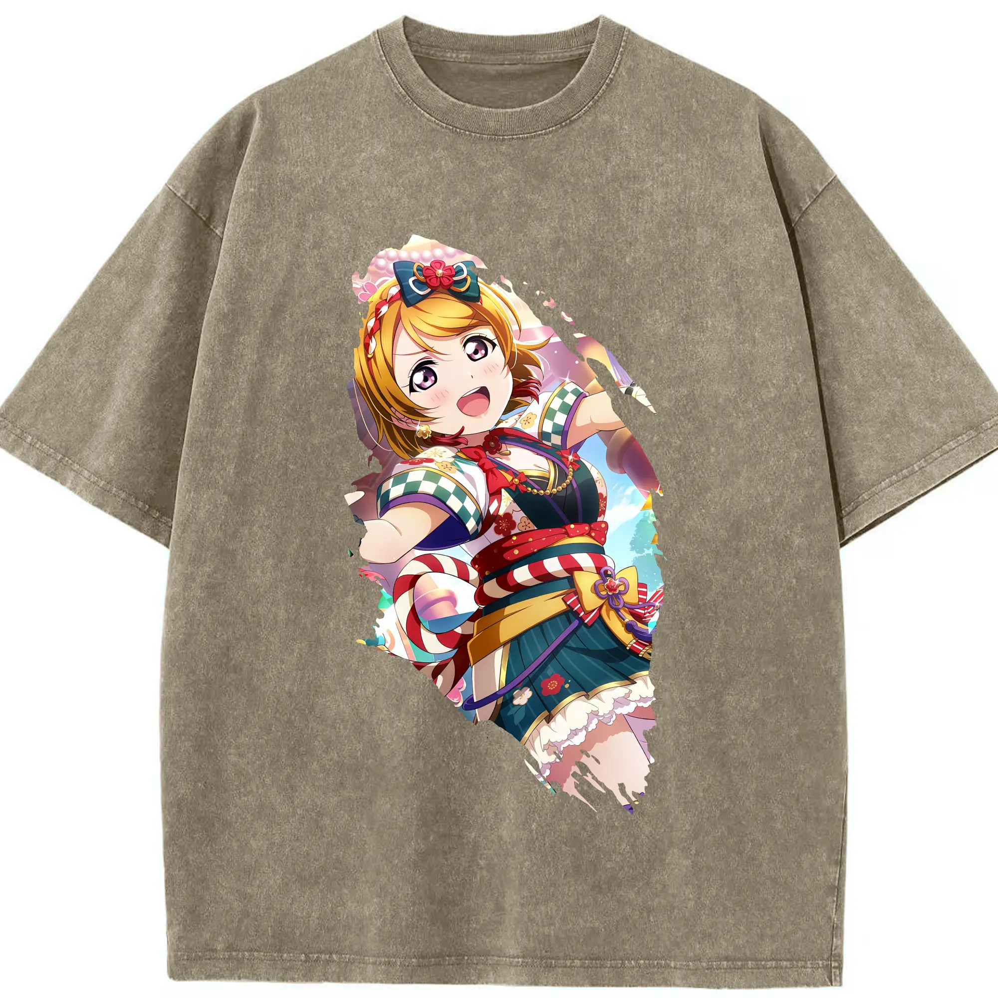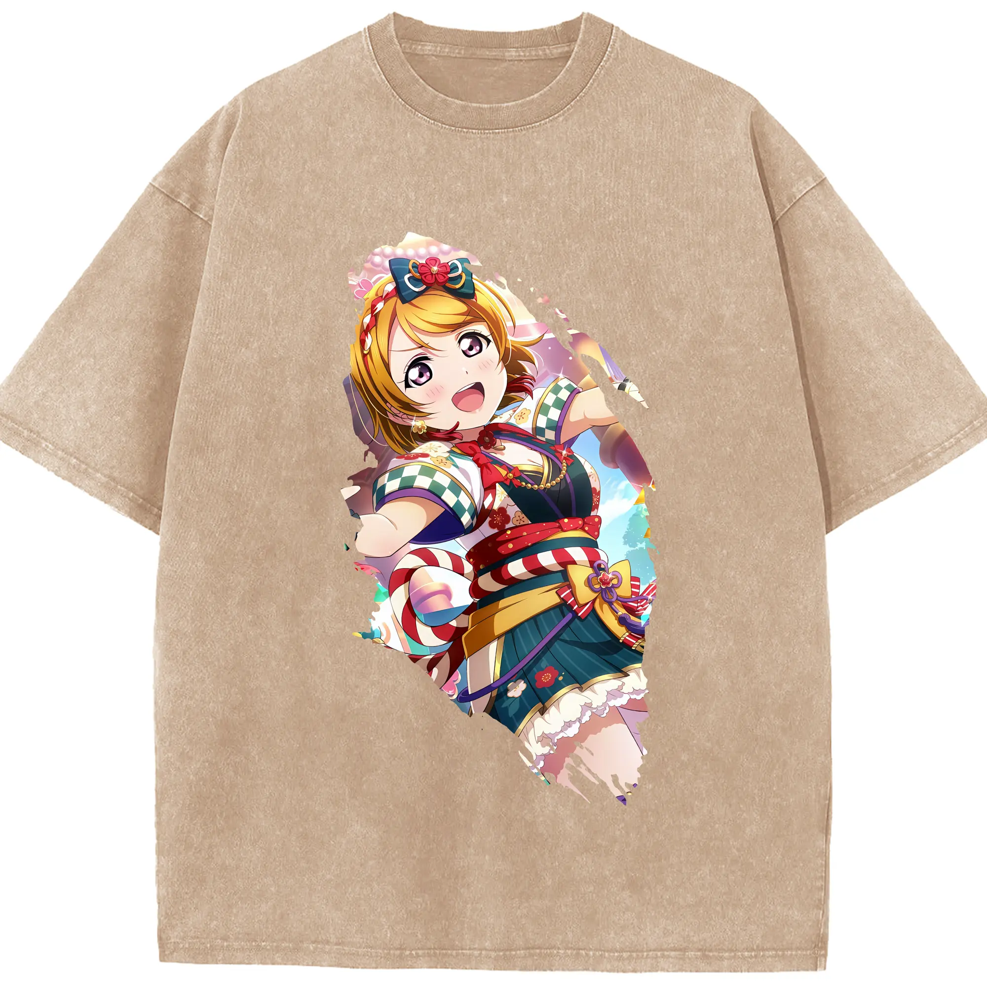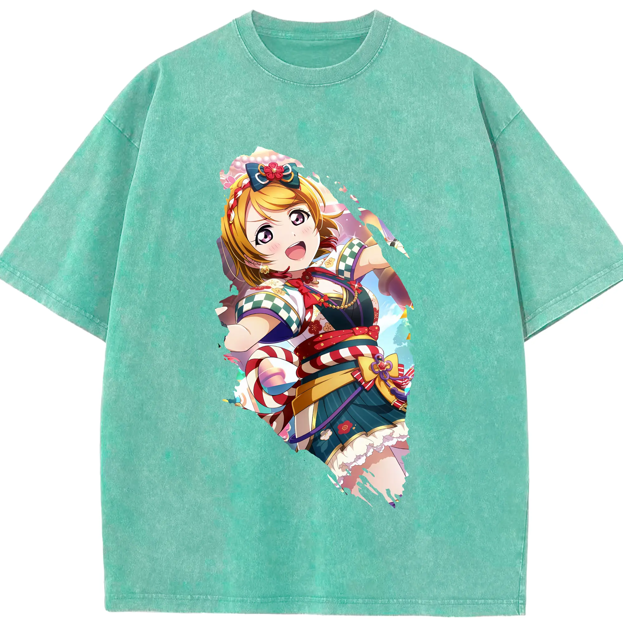 Love Live! グッズ,小泉花陽 - 綿100% ヴィンテージ風 半袖Tシャツ ・ 背面プリント ・ 柔らか肌触り ・ 通気性 快適 ・ スポーツ カジュアル 外出用