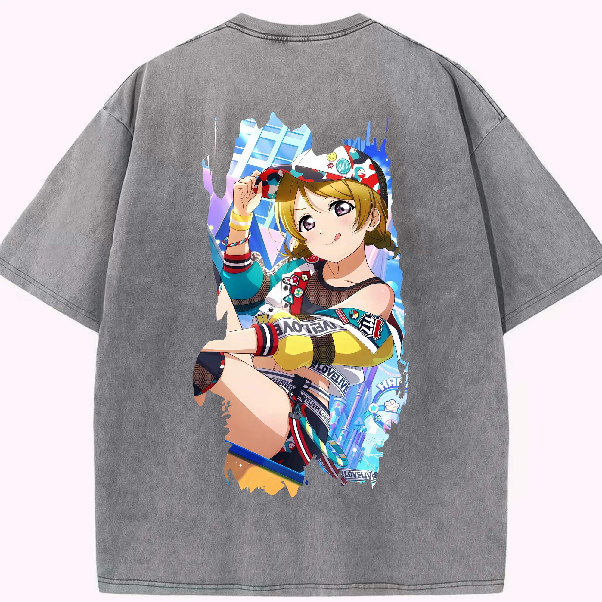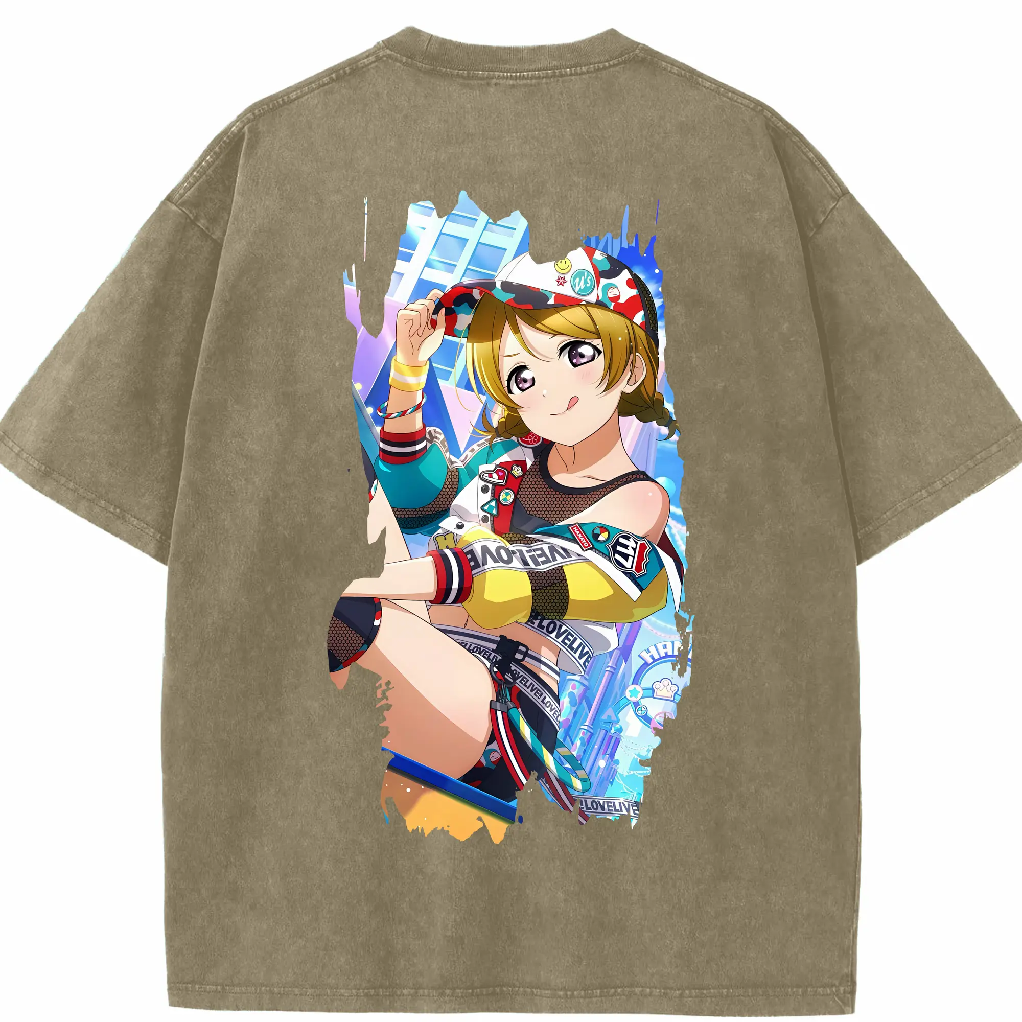 Love Live! グッズ,小泉花陽 - 綿100% ヴィンテージ風 半袖Tシャツ ・ フロントプリント ・ 柔らか肌触り ・ 通気性 快適 ・ スポーツ カジュアル 外出用