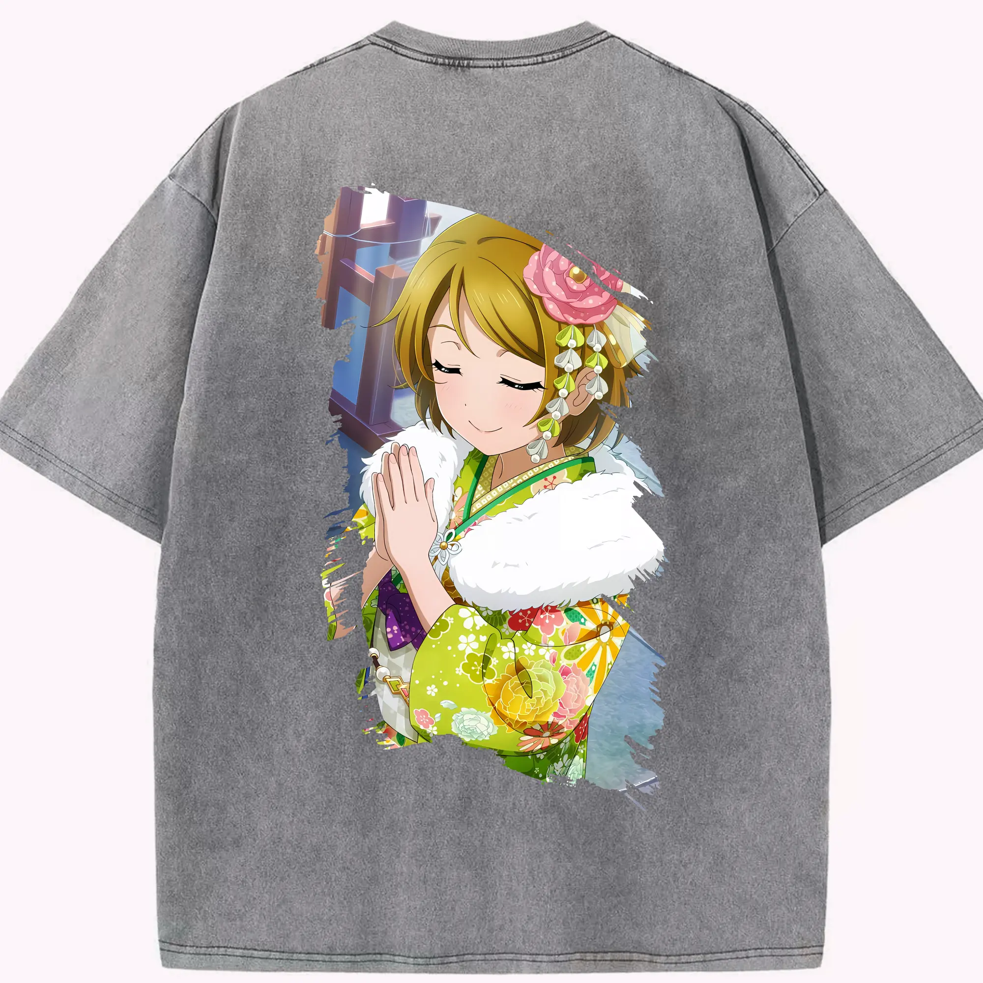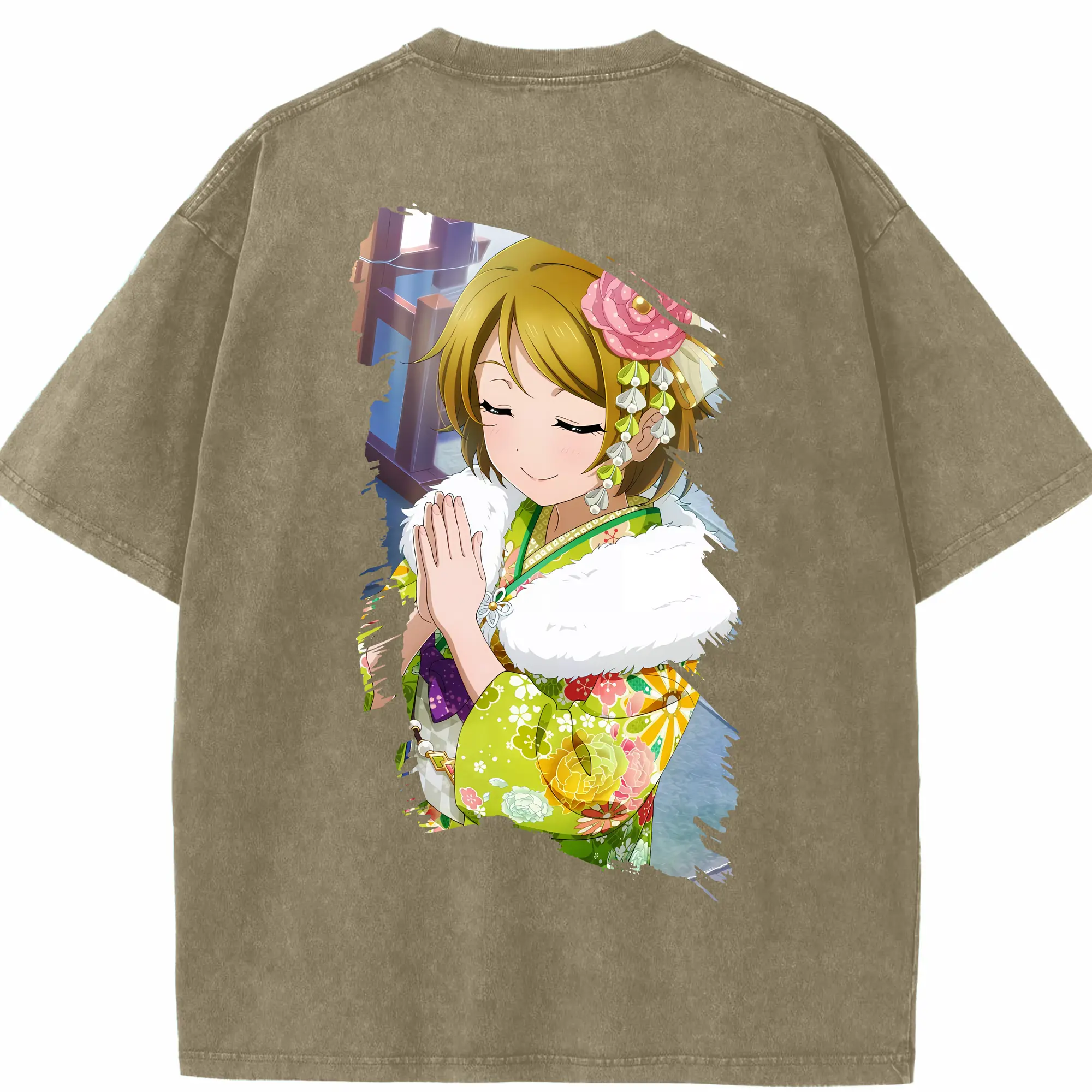 Love Live! グッズ,小泉花陽 - 綿100% ヴィンテージ風 半袖Tシャツ ・ フロントプリント ・ 柔らか肌触り ・ 通気性 快適 ・ スポーツ カジュアル 外出用