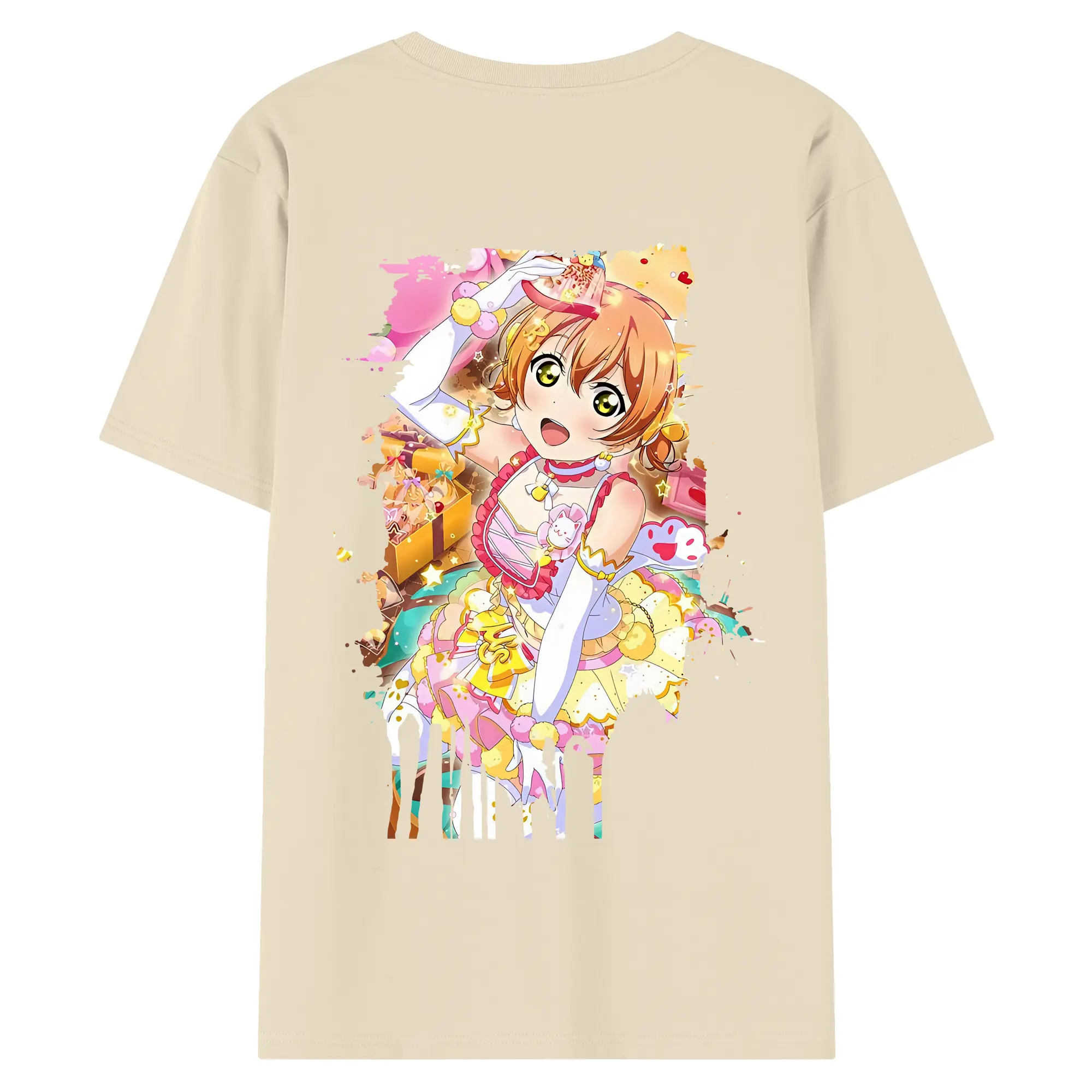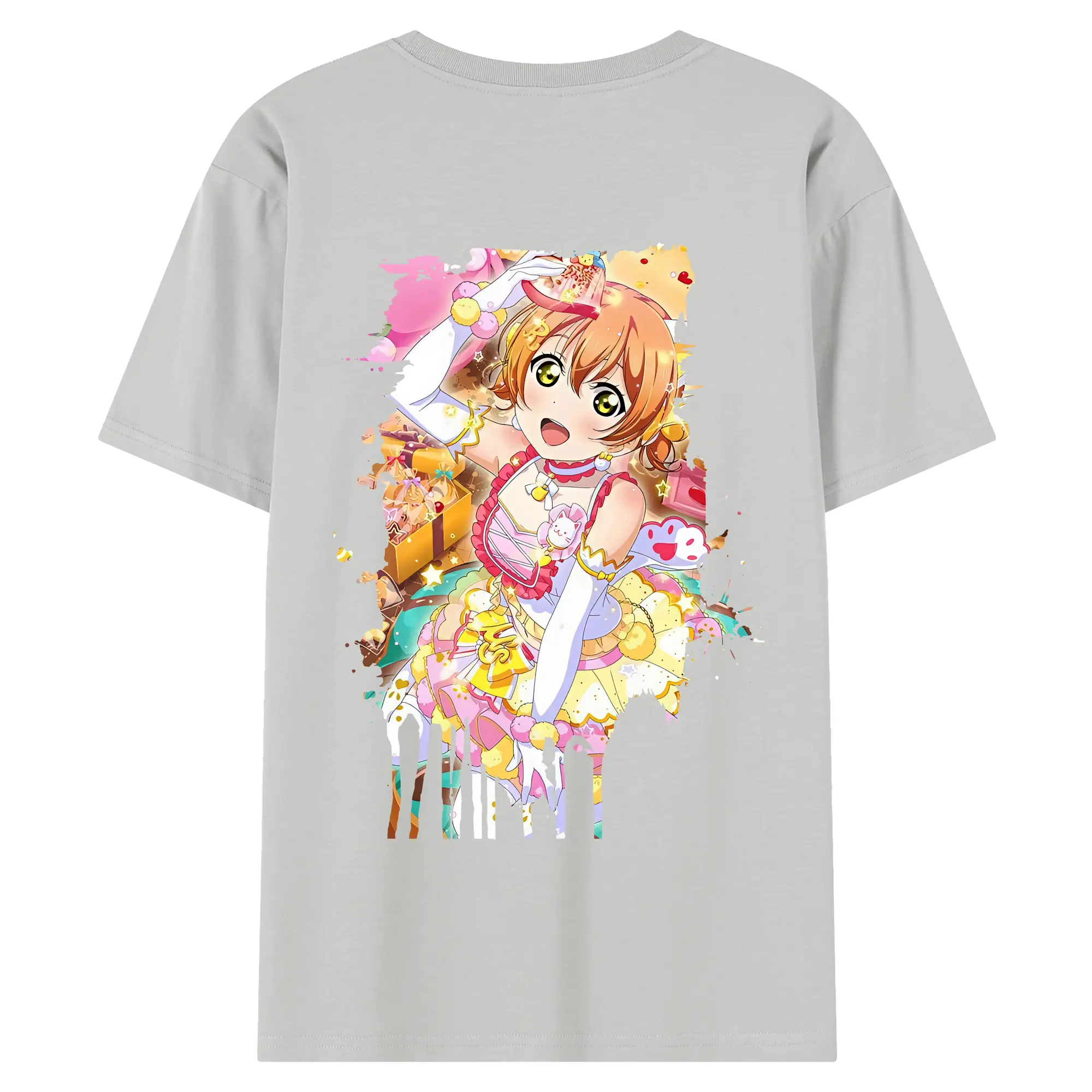 Love Live! グッズ,星空凛 - 綿100% ヴィンテージ風 半袖Tシャツ ・ 背面プリント ・ 柔らか肌触り ・ 通気性 快適 ・ スポーツ カジュアル 外出用