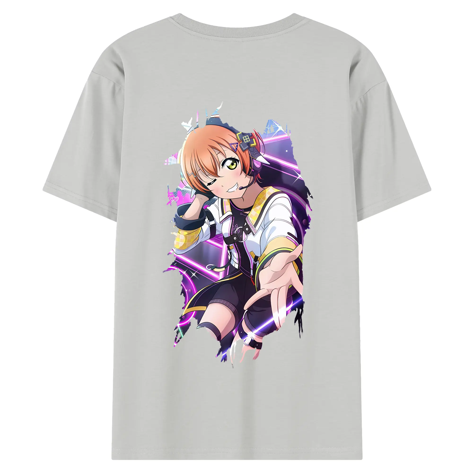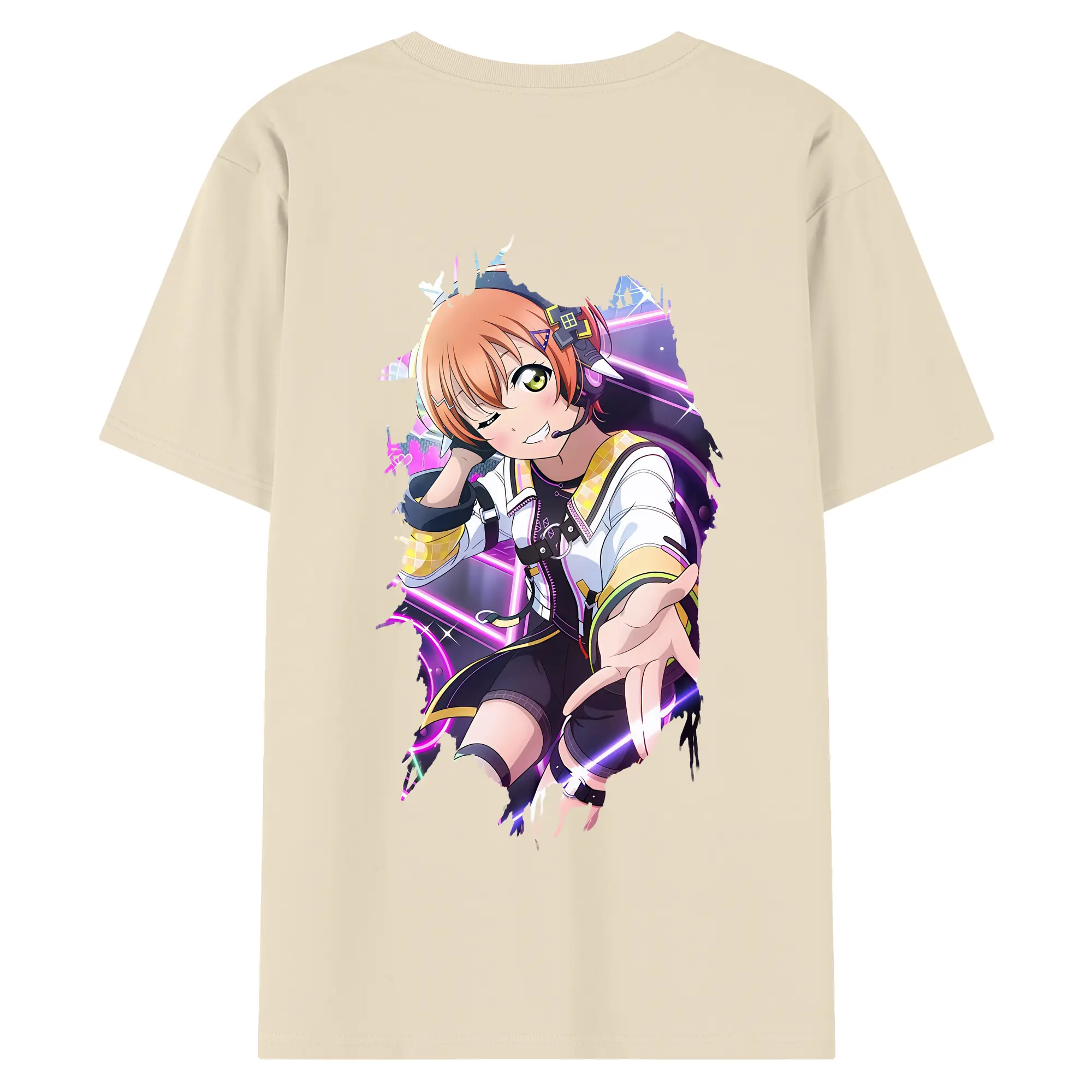 Love Live! グッズ,星空凛 - 綿100% ヴィンテージ風 半袖Tシャツ ・ 背面プリント ・ 柔らか肌触り ・ 通気性 快適 ・ スポーツ カジュアル 外出用