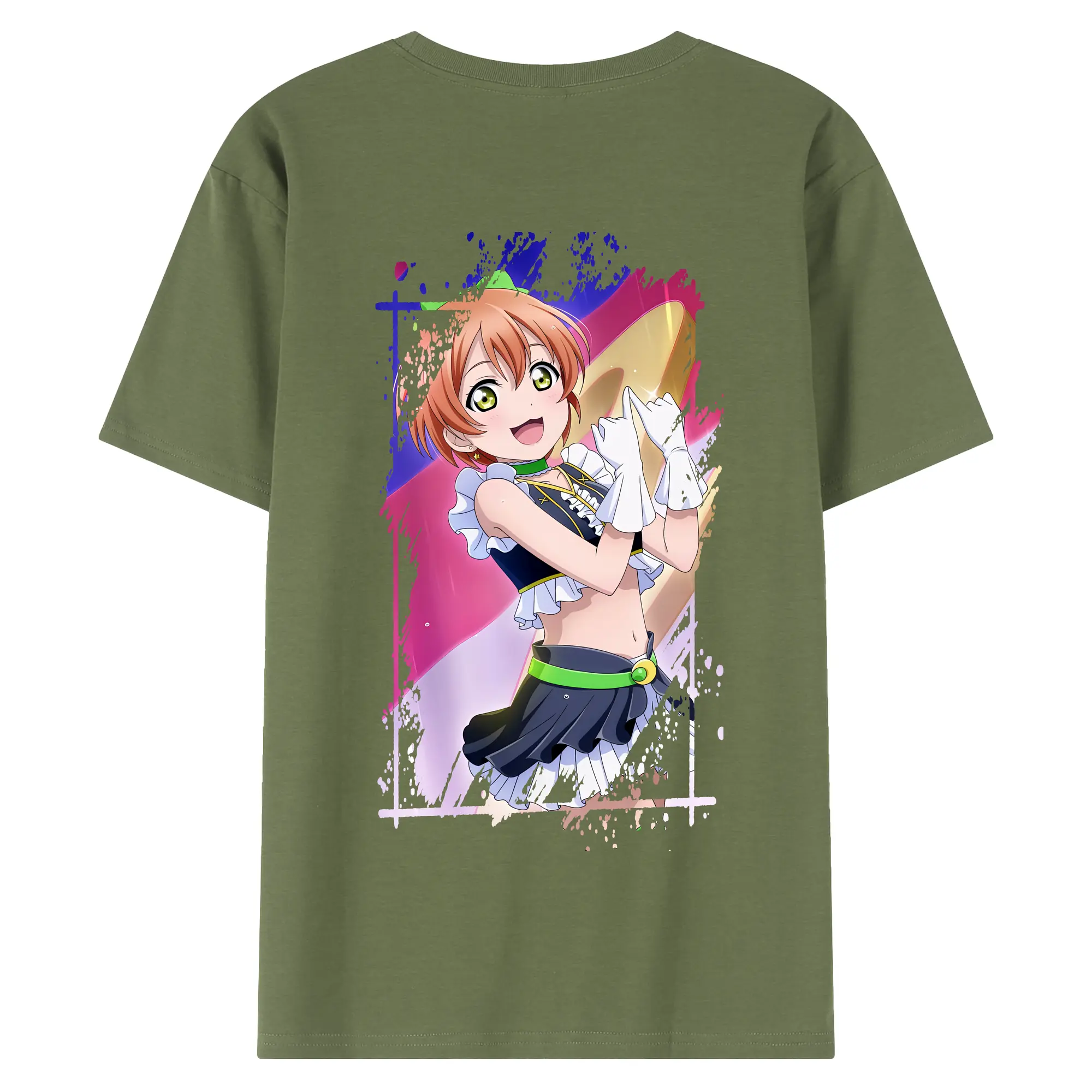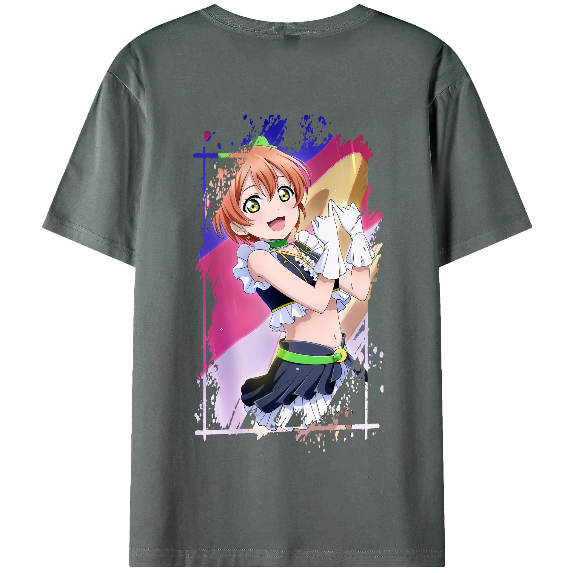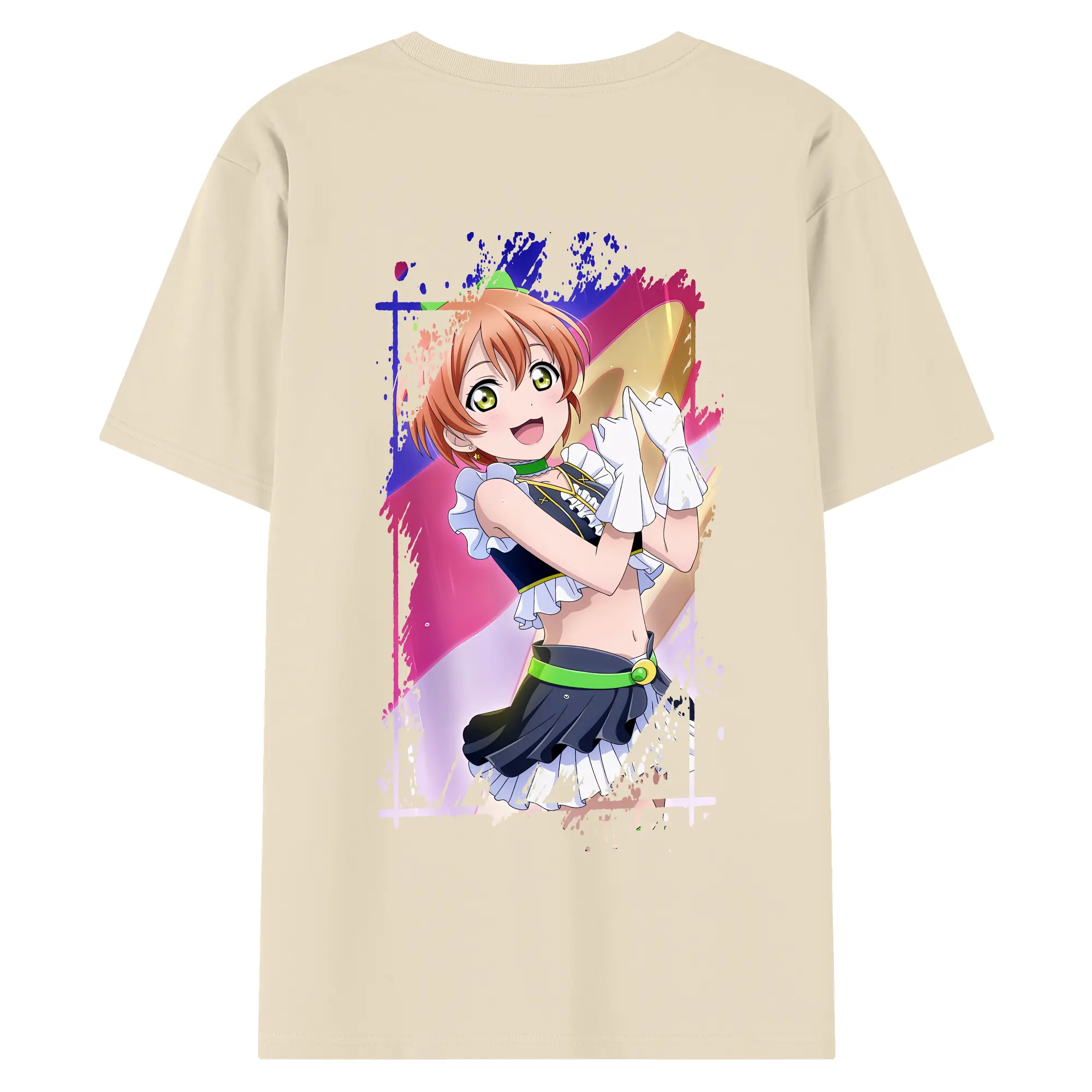 Love Live! グッズ,星空凛 - 綿100% ヴィンテージ風 半袖Tシャツ ・ 背面プリント ・ 柔らか肌触り ・ 通気性 快適 ・ スポーツ カジュアル 外出用